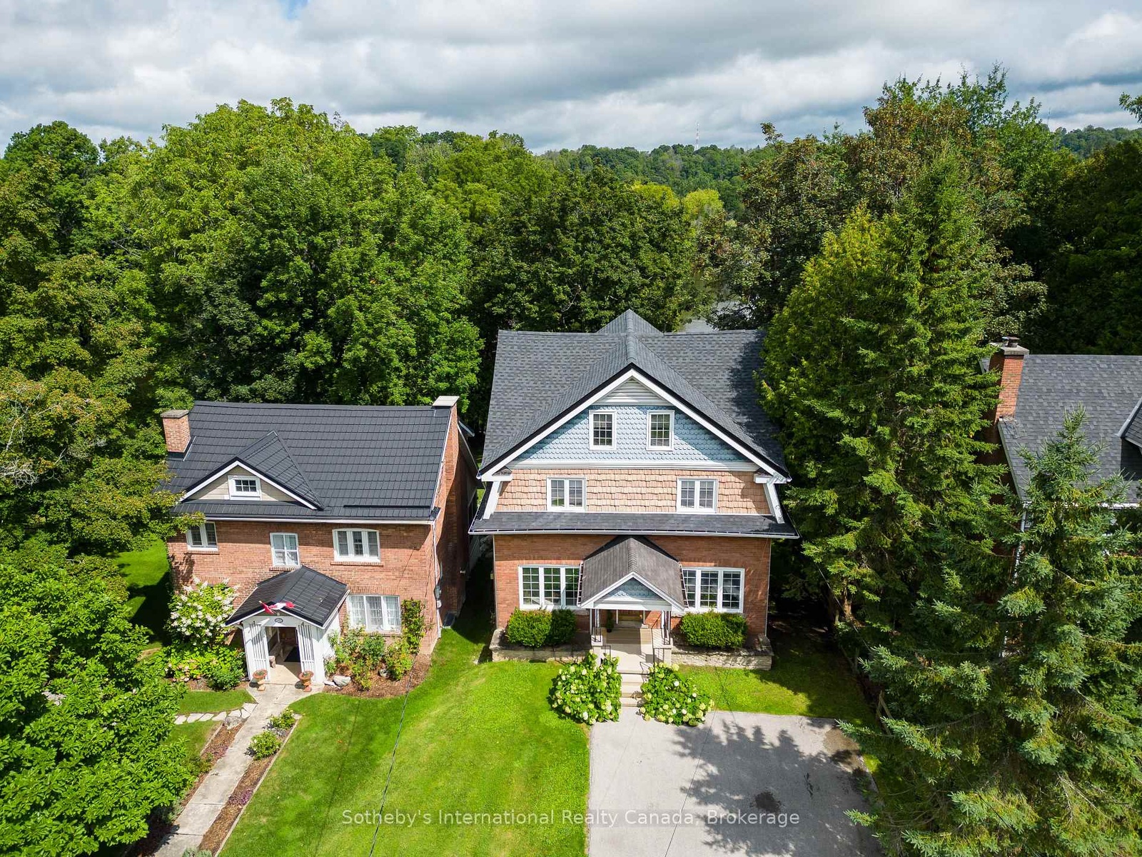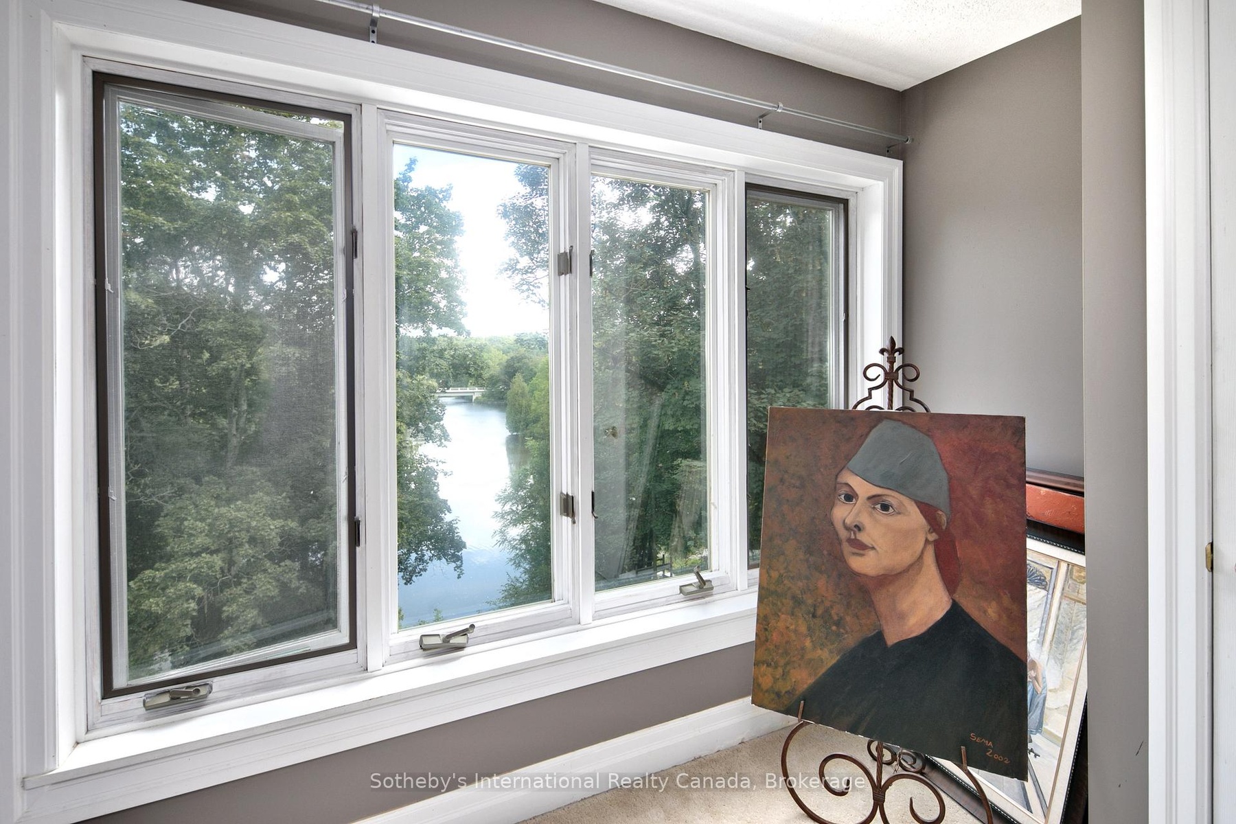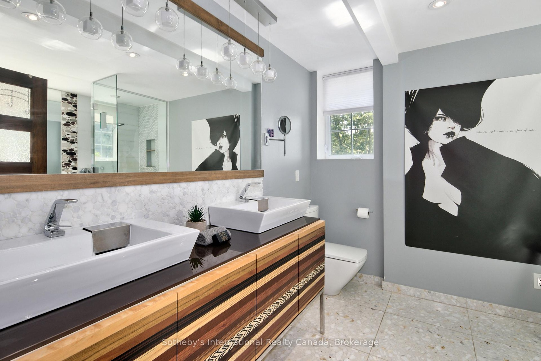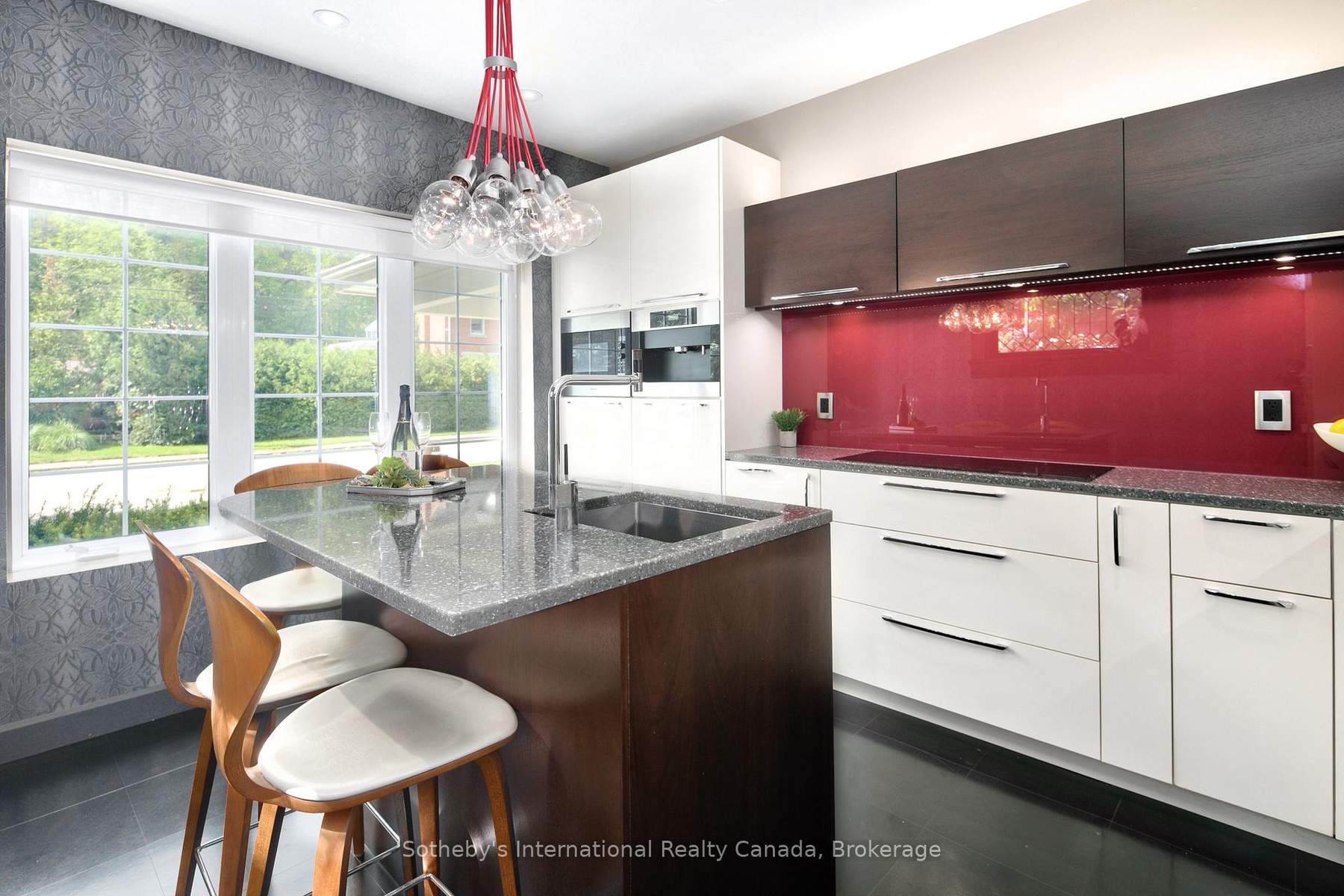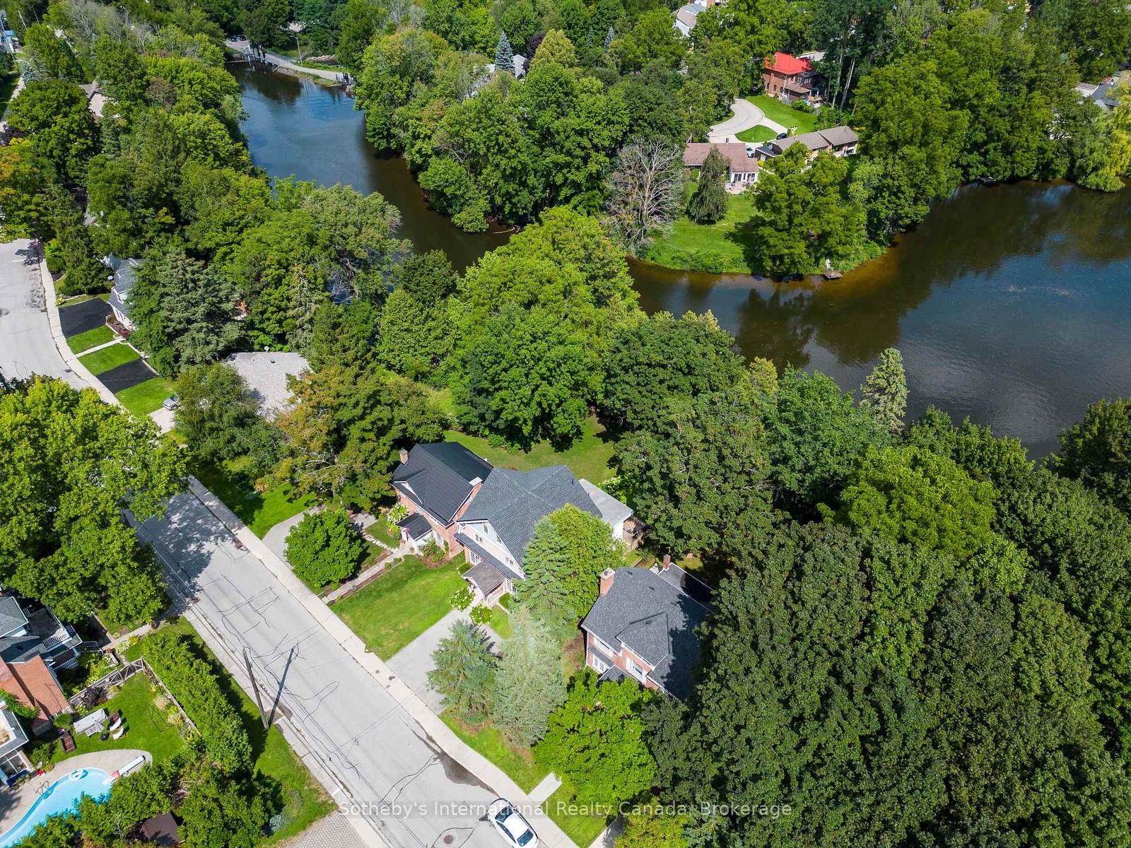 Nestled along the picturesque Sydenham River in the prestigious Millionaire Drive Waterfront neighborhood, this stunning 4 bedroom, 3-bathroom estate seamlessly combines timeless elegance with modern sophistication. The expansive living room serves as the centerpiece, featuring oversized windows that frame breathtaking river views and flood the space with natural light. Step out onto the balcony an ideal spot for relaxing or entertaining while soaking in the serene river scenery. The main floor boasts custom marble floors with in-floor heating in the dining area and hallways. The elegant dining room, accented by original hardwood built-in cabinets and a designer FLOS light fixture, sets the perfect mood for hosting memorable gatherings. Culinary enthusiasts will appreciate the gourmet kitchen, outfitted with top-of-the-line Miele appliances, including an induction cooktop, built-in coffee machine, and garburator, all illuminated by a luxurious designer light fixture. Upstairs, indulge in the spa-inspired bathroom featuring Italian faucets, in-floor heating, a large glass-enclosed shower with teak floors, and a deep soaker tub for ultimate relaxation. The master suite offers dual custom walk-in closets and elegant cabinetry, creating a tranquil retreat. The spacious basement walkout opens to the backyard, providing stunning river views and versatile space for family living, an in-law suite, or private sanctuary. Outside, nicely landscaped grounds lead directly to the river via a set of stairs perfect for outdoor pursuits and peaceful enjoyment. Additional highlights include ample parking for four vehicles, a Tesla charger, and recent upgrades such as a 2024 roof and new eavestrough 2025, blending historic charm with contemporary comfort. Located in one of Owen Sounds most sought-after neighborhoods, just moments from local amenities, this exceptional riverfront estate presents a rare opportunity to experience luxury living at its finest.