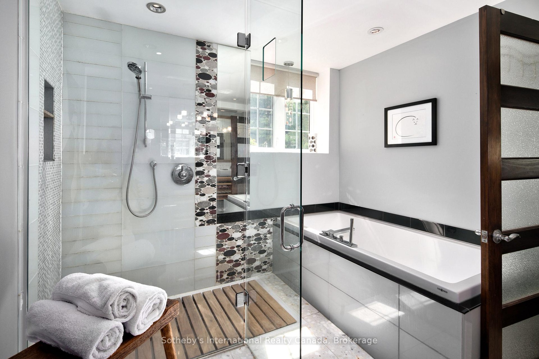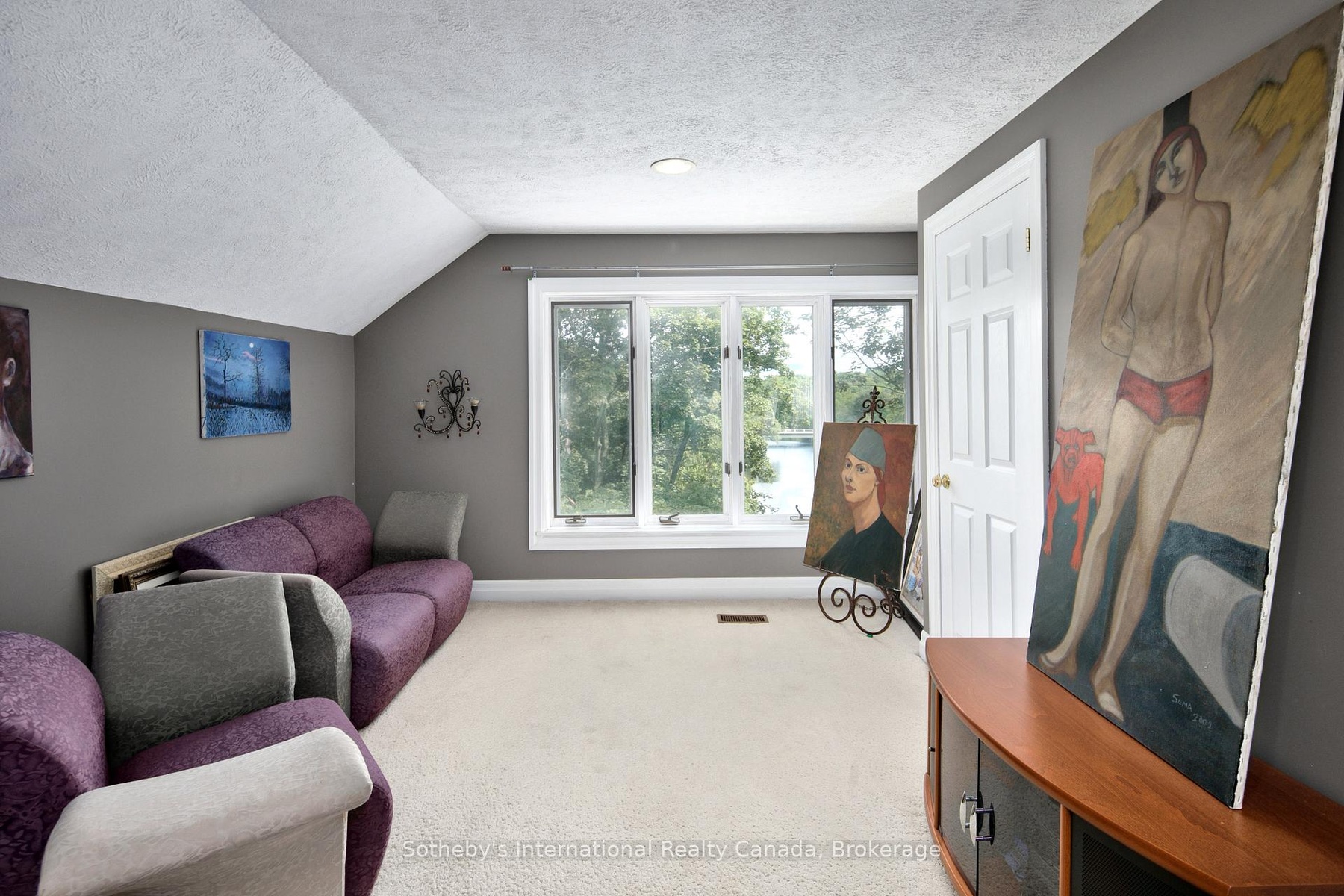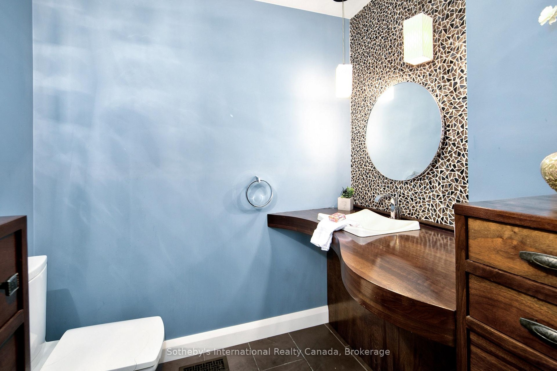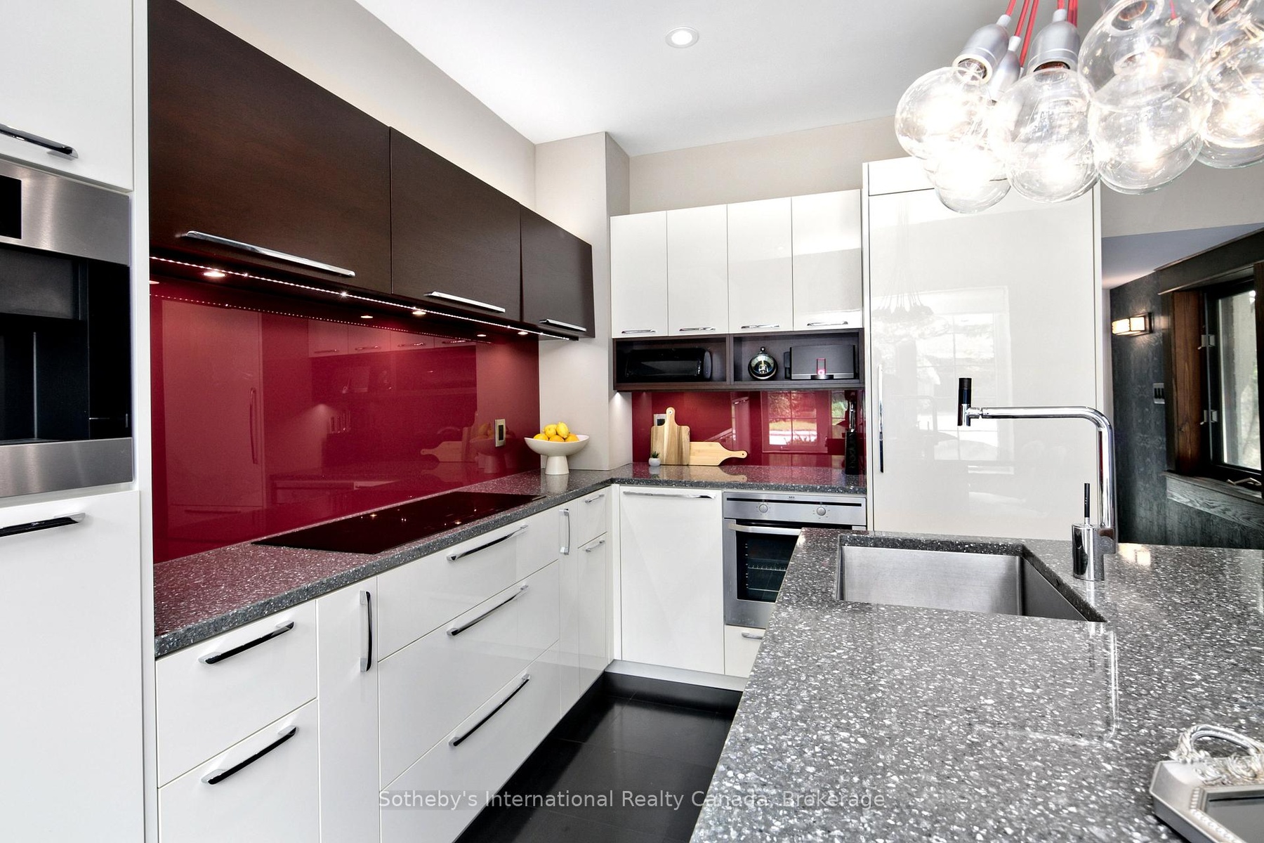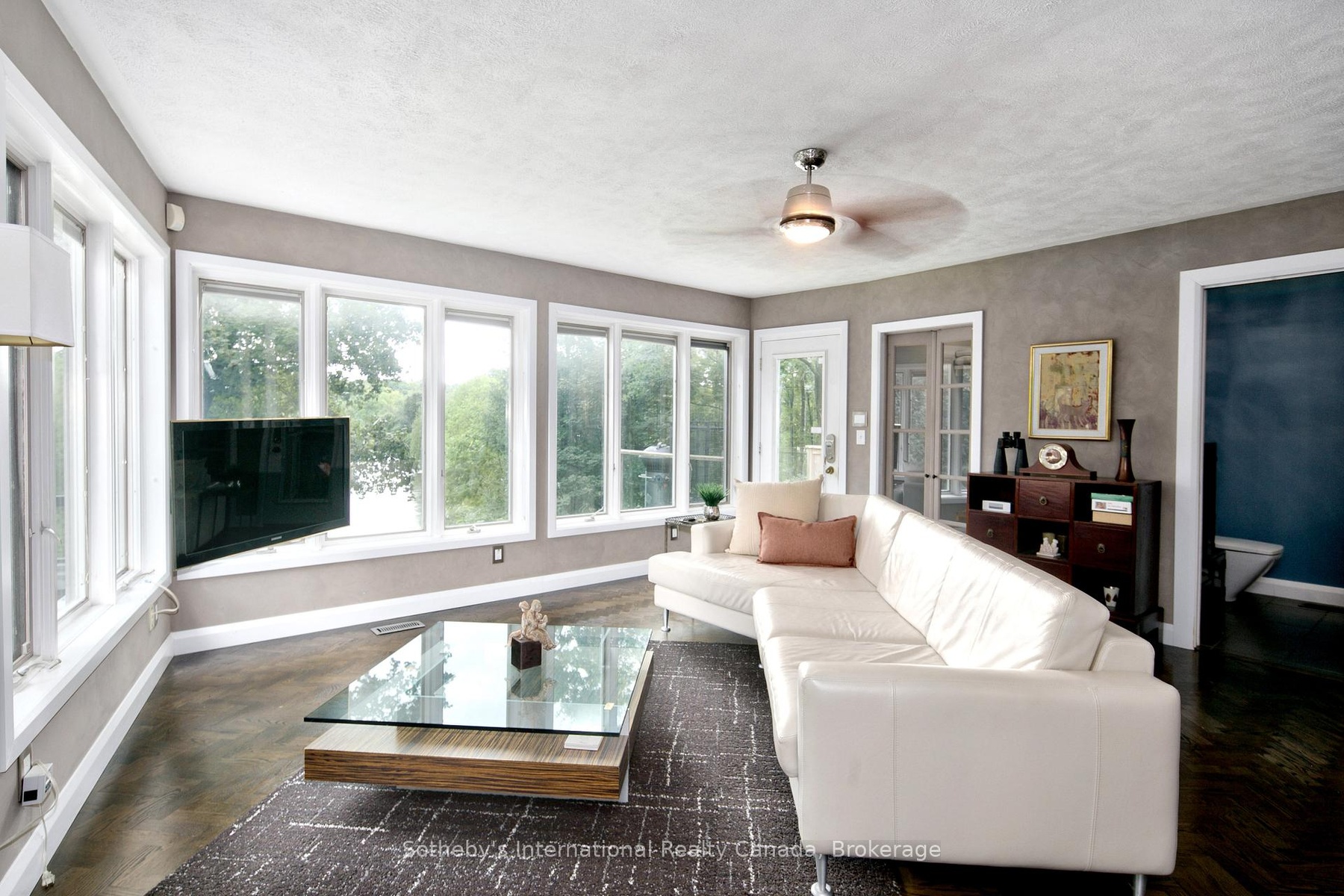 Nestled along the picturesque Sydenham River in the prestigious Millionaire Drive Waterfront neighborhood, this stunning 4 bedroom, 3-bathroom estate seamlessly combines timeless elegance with modern sophistication. The expansive living room serves as the centerpiece, featuring oversized windows that frame breathtaking river views and flood the space with natural light. Step out onto the balcony an ideal spot for relaxing or entertaining while soaking in the serene river scenery. The main floor boasts custom marble floors with in-floor heating in the dining area and hallways. The elegant dining room, accented by original hardwood built-in cabinets and a designer FLOS light fixture, sets the perfect mood for hosting memorable gatherings. Culinary enthusiasts will appreciate the gourmet kitchen, outfitted with top-of-the-line Miele appliances, including an induction cooktop, built-in coffee machine, and garburator, all illuminated by a luxurious designer light fixture. Upstairs, indulge in the spa-inspired bathroom featuring Italian faucets, in-floor heating, a large glass-enclosed shower with teak floors, and a deep soaker tub for ultimate relaxation. The master suite offers dual custom walk-in closets and elegant cabinetry, creating a tranquil retreat. The spacious basement walkout opens to the backyard, providing stunning river views and versatile space for family living, an in-law suite, or private sanctuary. Outside, nicely landscaped grounds lead directly to the river via a set of stairs perfect for outdoor pursuits and peaceful enjoyment. Additional highlights include ample parking for four vehicles, a Tesla charger, and recent upgrades such as a 2024 roof and new eavestrough 2025, blending historic charm with contemporary comfort. Located in one of Owen Sounds most sought-after neighborhoods, just moments from local amenities, this exceptional riverfront estate presents a rare opportunity to experience luxury living at its finest.