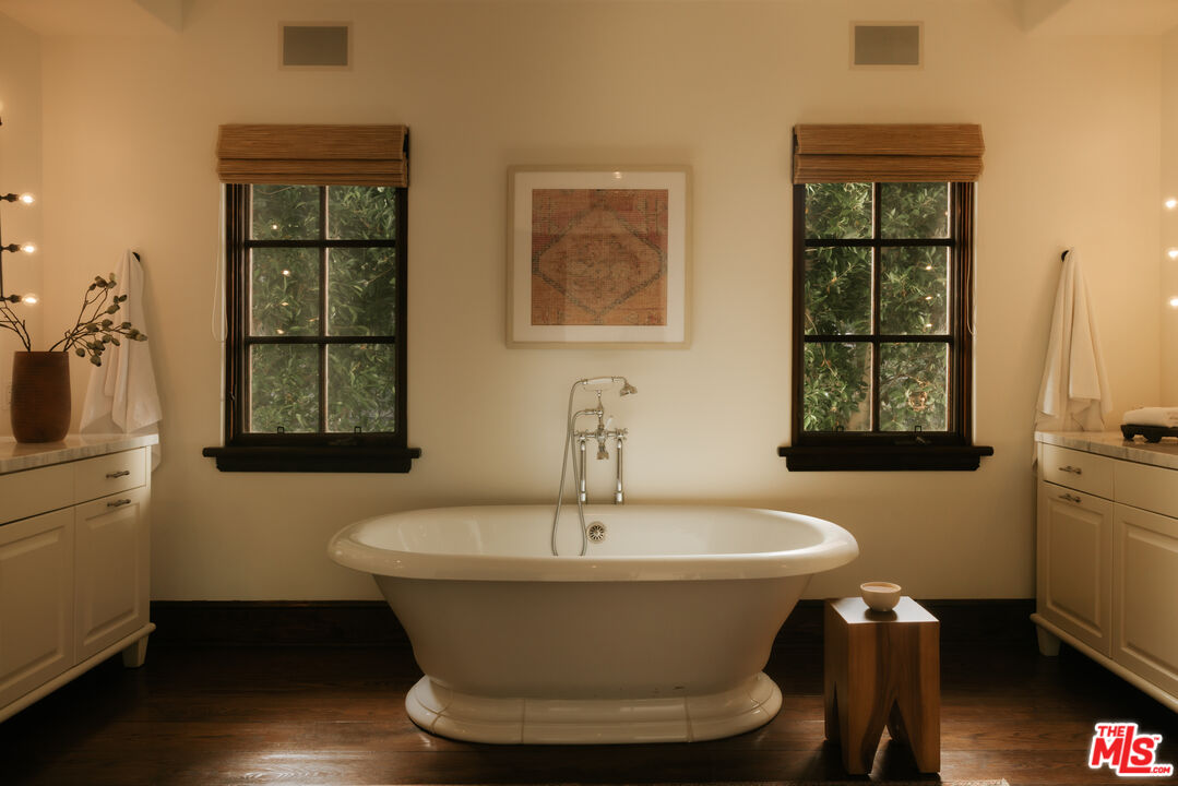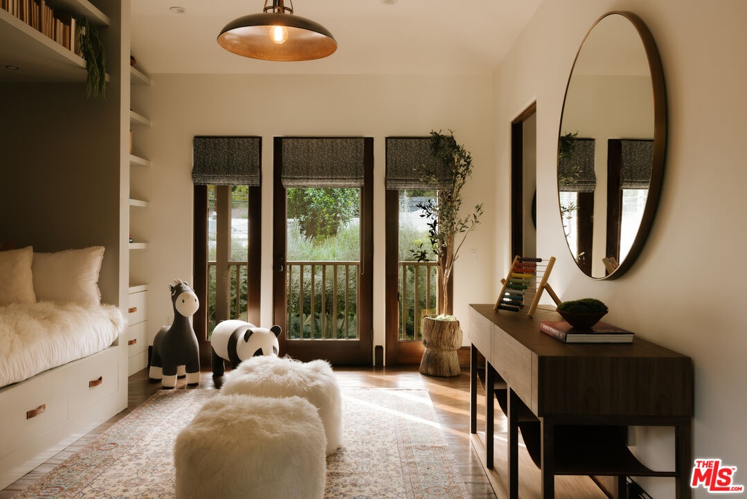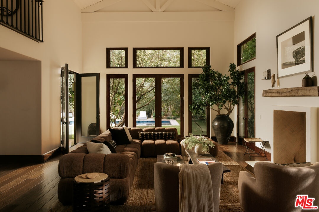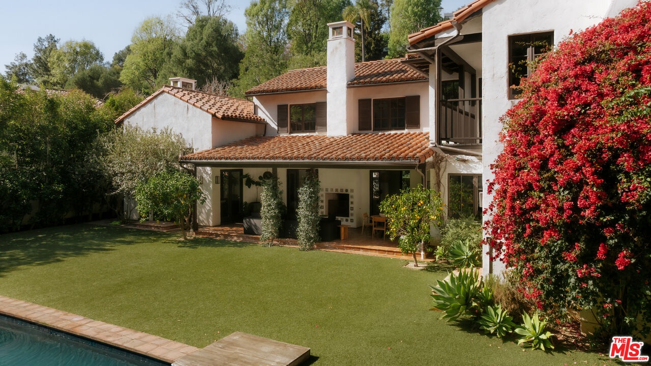 Gracefully set in the heart of Brentwood, this timeless Spanish estate is a masterclass in scale, elegance, and refined California living. Encompassing approximately 5,773 square feet, the residence offers five bedrooms and six bathrooms, thoughtfully curated to balance grand-scale entertaining with effortless everyday luxury. A dramatic entry introduces a series of beautifully proportioned interiors defined by soaring ceilings, rich architectural detail, and an abundance of natural light. Formal living and dining rooms unfold with quiet grandeur, seamlessly transitioning into inviting gathering spaces designed for both intimate evenings and vibrant celebrations. Expansive doors dissolve the boundary between indoors and out, embracing the quintessential Southern California lifestyle. At the center of the home, the chef's kitchen serves as both showpiece and sanctuary, appointed with premium appliances, generous preparation spaces, and a sun-drenched breakfast nook ideal for leisurely mornings or lively gatherings. Each bedroom suite is privately situated and luxuriously appointed, complete with walk-in closets and refined baths. The primary suite offers a serene retreat, defined by scale, privacy, and spa-inspired indulgence. The grounds evoke the ambiance of a private resort. Mature landscaping frames a sparkling pool, while multiple terraces and lounging areas provide an exquisite backdrop for alfresco dining, sophisticated entertaining, or tranquil repose. Additional amenities include a temperature-controlled wine cellar, integrated sound system, smart home technology, and a comprehensive security system, all enhancing the home's comfort and discretion. Located moments from Brentwood's most celebrated dining, boutiques, parks, and top-rated schools, 1046 N Norman Place represents a rare offering where architectural heritage, modern luxury, and enduring prestige converge.