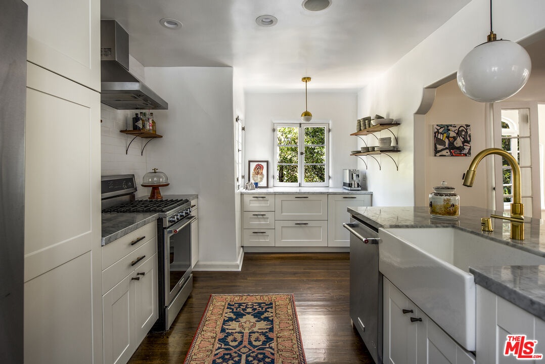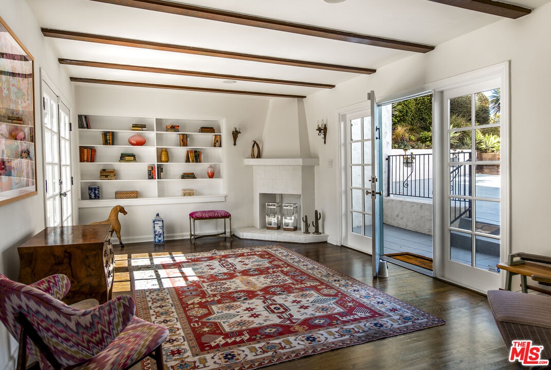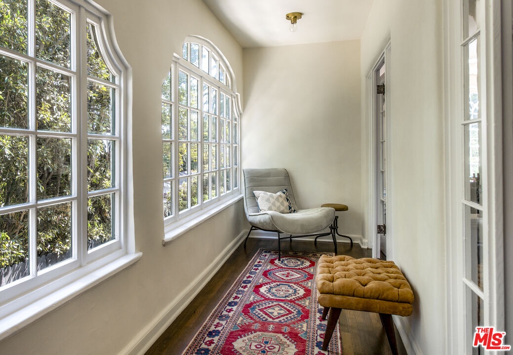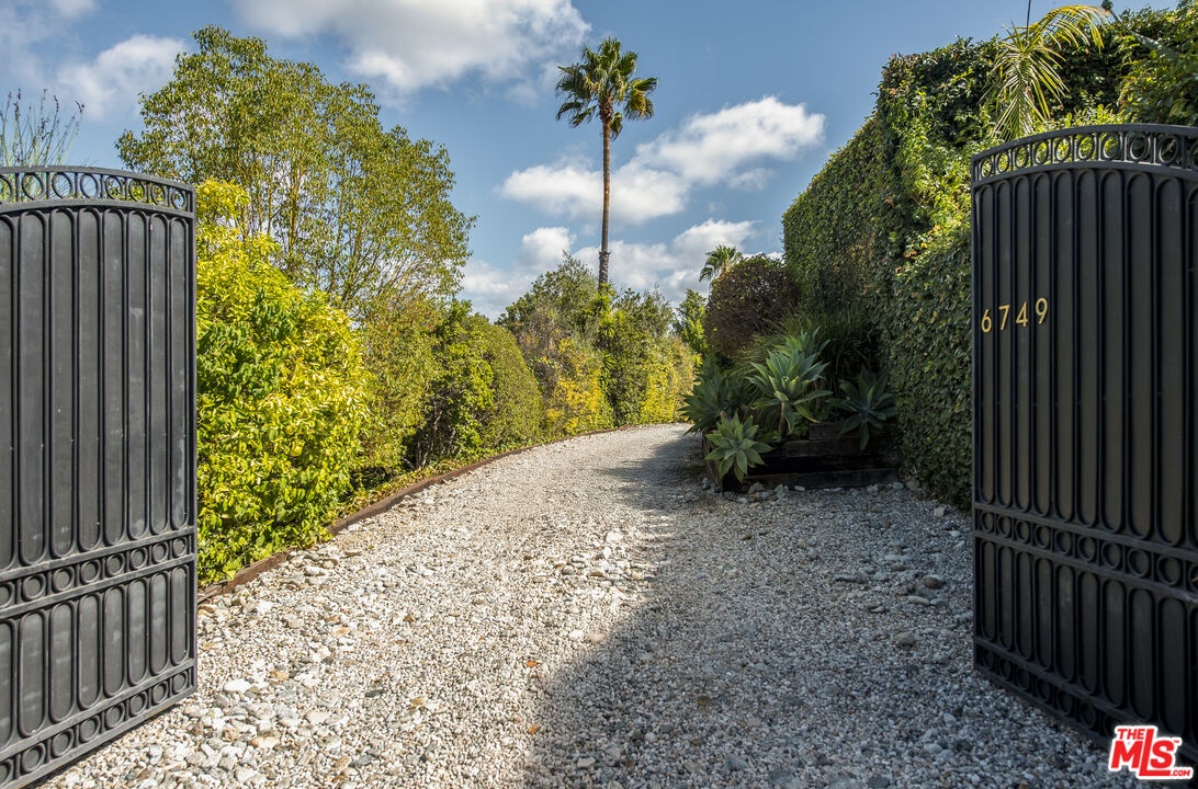As seen in the New York Times, and sited atop the historic enclave of Whitley Heights, this reimagined 1920s Spanish residence blends preserved character with thoughtful modern updates. Privately gated and set down a long driveway on an expansive 14,000-square-foot flag lot, the property offers exceptional privacy and scale rarely found in the Hollywood Hills. Beyond its classic facade, arched windows and warm wood floors set a timeless tone throughout. The living room, anchored by a wood-burning fireplace, opens to a dining area and a spacious terrace that offers views of the Hollywood Sign and glimpses of the surrounding city lights. The kitchen features a center island, custom cabinetry, marble countertops, and stainless-steel appliances. Upstairs, a rotunda stairwell leads to three bedrooms, including a serene primary suite with a walk-in closet and a spa-like bath with a soaking tub and hillside outlooks. A flexible bonus room offers options for a gym, screening room, or office. Outdoors, multiple patios with classic Spanish tile provide space for quiet relaxation or al fresco dining under the stars, surrounded by swaying palms and complete privacy. Additional features include a two-car garage, ample storage, electric car charger, fully upgraded HVAC, and filtered water system. All of this is just minutes from Franklin Village, the Hollywood Bowl, and Runyon Canyon.