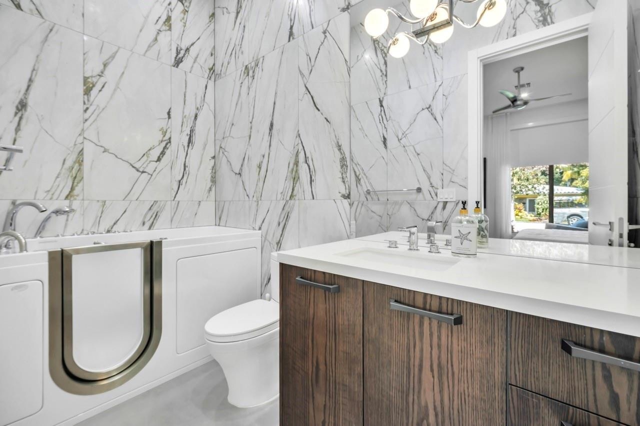 NOW AVAILABLE! Walk to Wilton Drive from this modern masterpiece on a corner lot in trendy Wilton Manors. No expense was spared when this home was built in 2023. Solid poured concrete exterior walls, 11 foot high ceilings, 10 foot high impact windows, exquisite stone finishes in the kitchen and bathrooms, 48 x 48 inch floor tile, custom exotic wood cabinets, huge closets, 3 car garage, expansive pool deck with privacy wall, the list goes on and on. This home is tastefully designed and furnished and located just one block from the all the dining, shopping and nightlife on Wilton Drive. Please call to schedule your appointment.