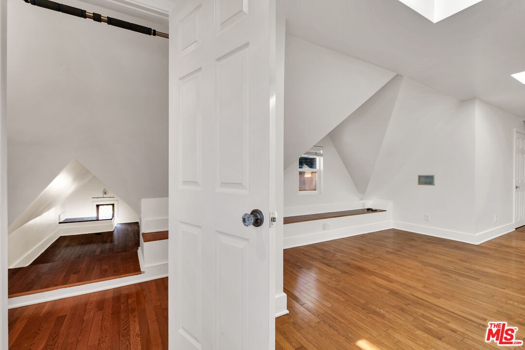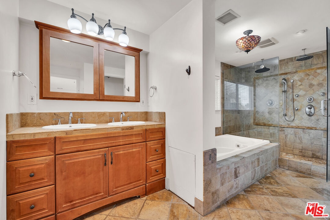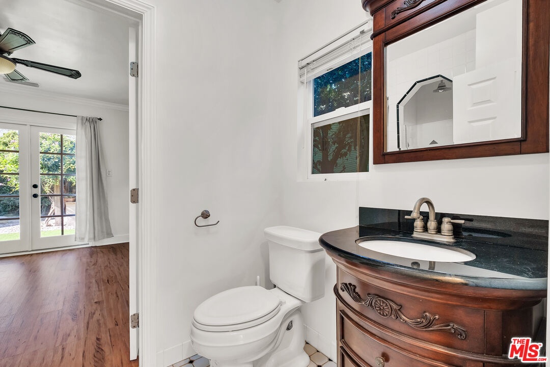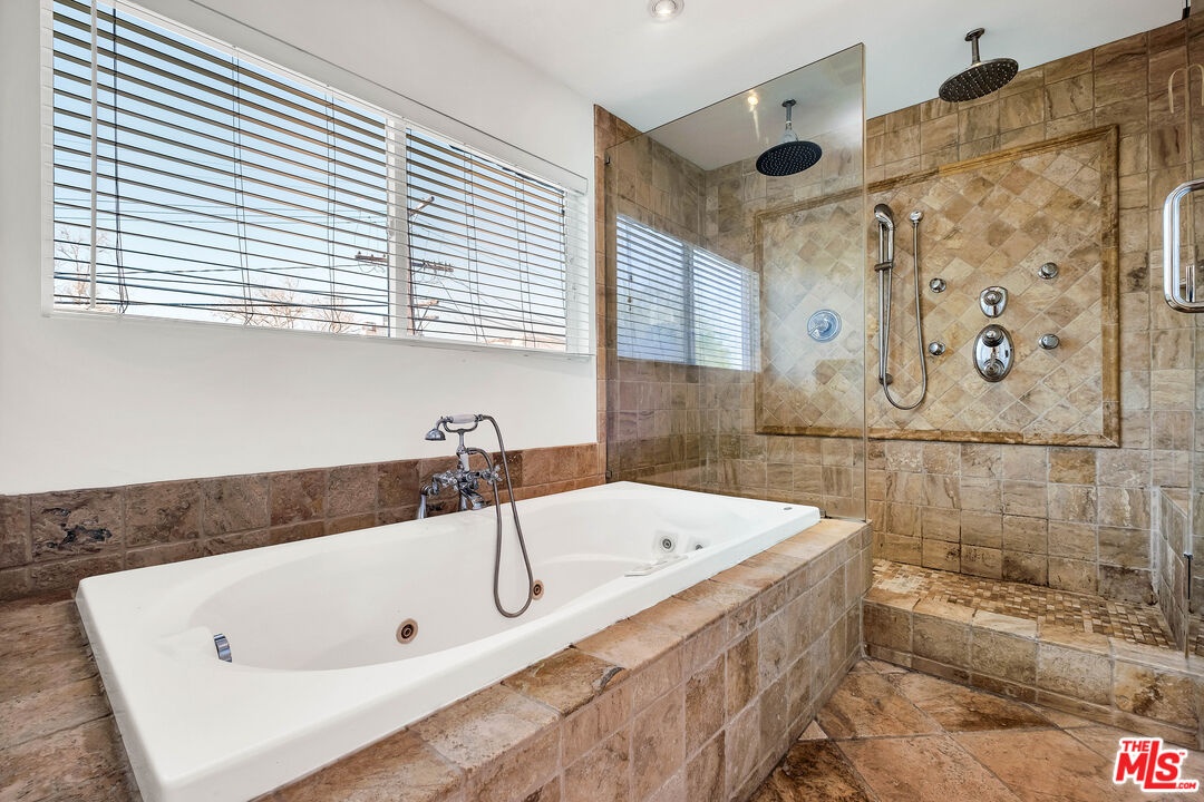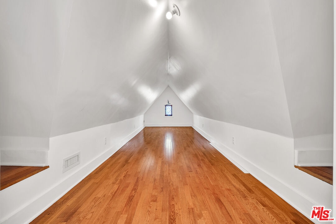 Kind of like a "Spa Day." New look and price for this Sycamore Square storybook charmer!! Bright and airy, 4 bedroom, 3 bath, English Tudor with surprise after surprise! Up the winding pathway from the lushly tree-lined street you enter in to a sun drenched living room with an elegant coved ceiling, leaded glass windows and a wood burning fireplace. The dining room features an enormous mult-paned arched window set in it's own cove and a beautiful Tiffany style ceiling fixture. The updated kitchen includes a cozy, east facing breakfast area with a set of french doors that open out to the herb garden. 3 bedrooms down stairs including 2 that open through french doors directly out to the rear yard and one with it's own, en-suite bath and direct access to the laundry room, perfect as a maids room. Generous and varied options for storage in the hall linen closet and laundry. And speaking of storage, how about a secret wine cellar accessed beneath the remote controlled lifting stairway (!) to the second floor. Upstairs an enormous primary bedroom suite is it's own world and includes a large fitted walk-in closet, areas for an office, TV watching, reading and tons more easily accessible storage options. The sumptuous primary bath features, dual vanity, a sexy oversized spa tub and separate 2-person shower stall with dual rainfall shower heads and shower wand. An enormous 2nd story balcony across the rear is perfect for morning coffee, a little yoga or an end of the day cocktail. Outside a combination of gravel and nicely done artificial turf make for easy maintenance and great place for kids and adults. A natural gas firepit cuts the evening chill and invites conversation while a delightful vine covered pergola with built-in barbeque, sink and mini fridge offers shaded comfort. A detached 2 car garage with high pitched ceiling/roof teases options for any number of alternate uses. Copper plumbing, upgraded electrical with 220-amp service. Sycamore Square is a wonderful neighborhood so named for the classic sycamore trees that line the streets of this pocket of beautiful Miracle Mile homes south of Wilshire. World class museums, performance venues, restaurants and shopping are all within easy walking distance and a new subway station opening at Wilshire and LaBrea, just blocks away, present an auto-free way to engage with our fair city