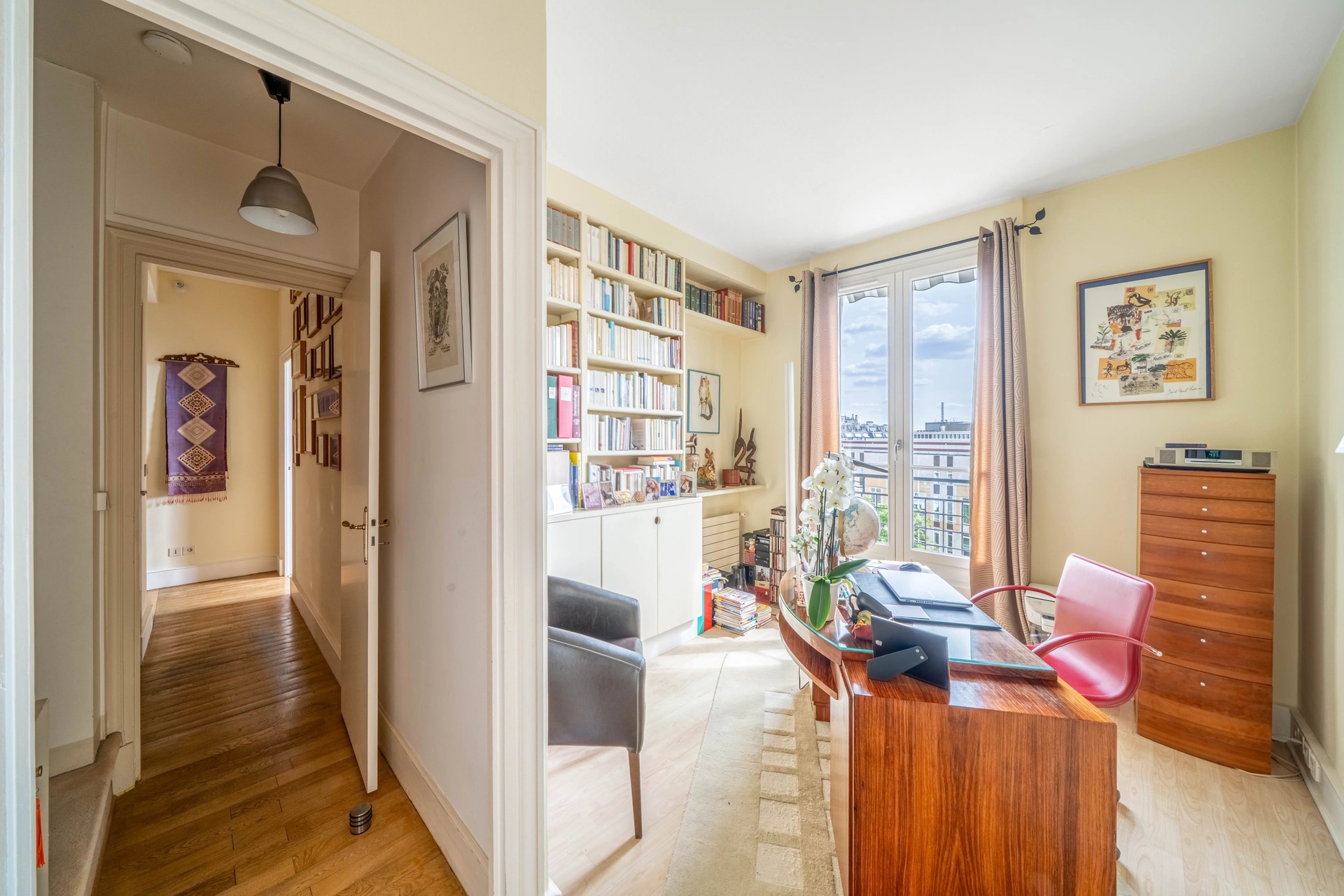 Bathed in light, it boasts meticulous finishing touches: custom-made bookcases, elegant dressing room, armored door and refined paintwork. An intercom with camera ensures optimal access control. Its 2.91-meter ceiling height enhances the feeling of space and comfort. Materials, paintwork and finishes: every detail of this property has been meticulously thought through.