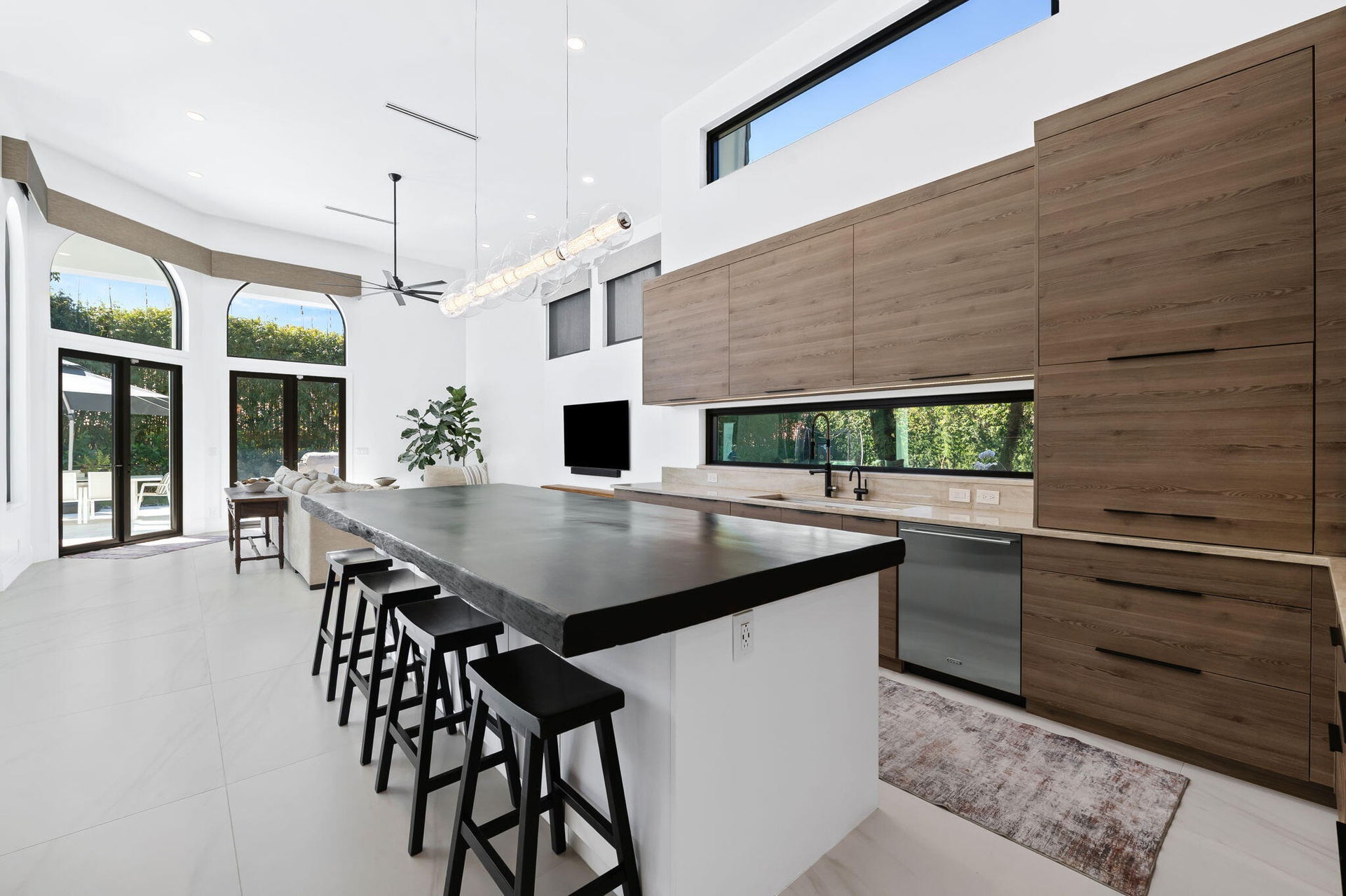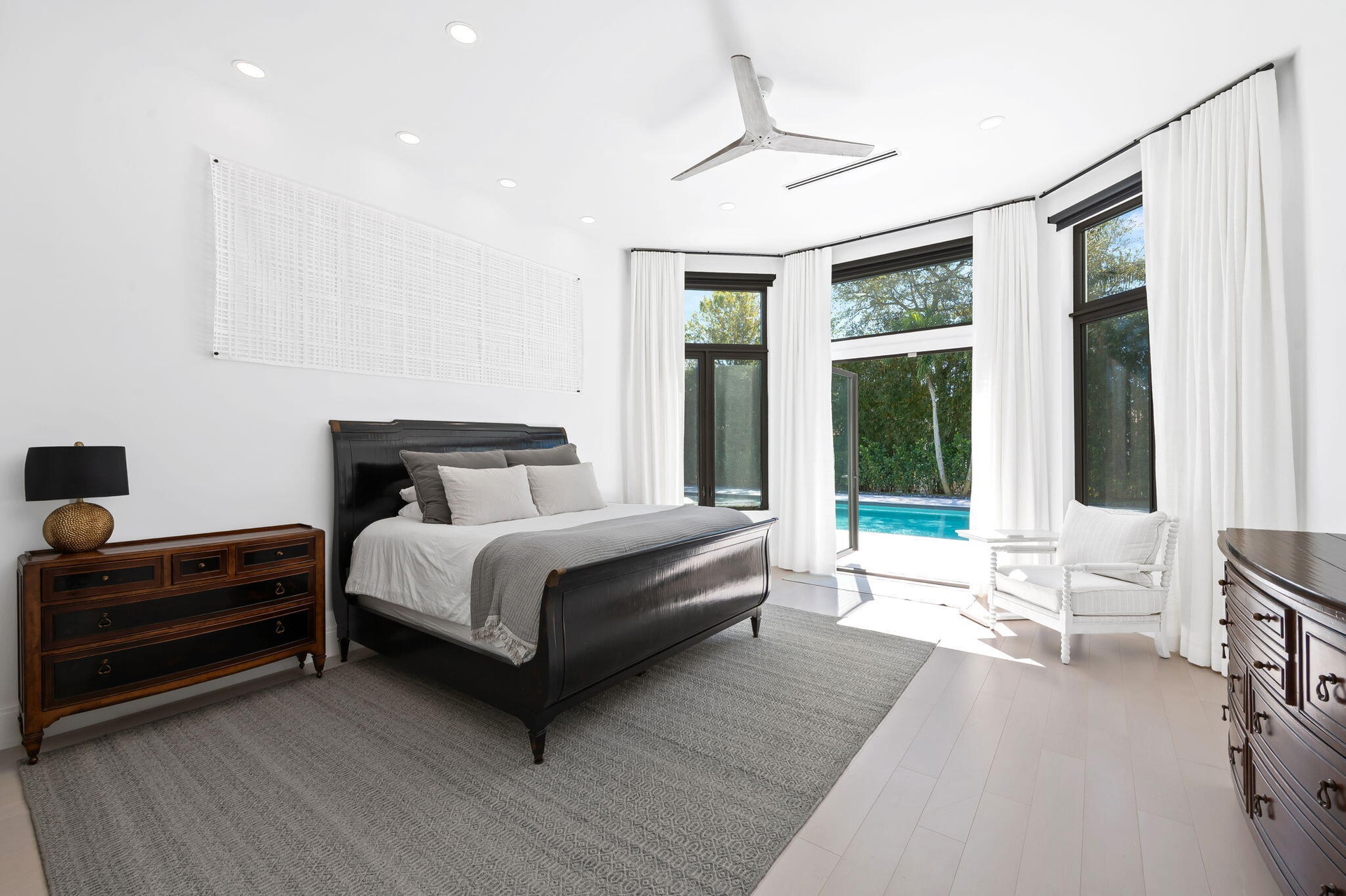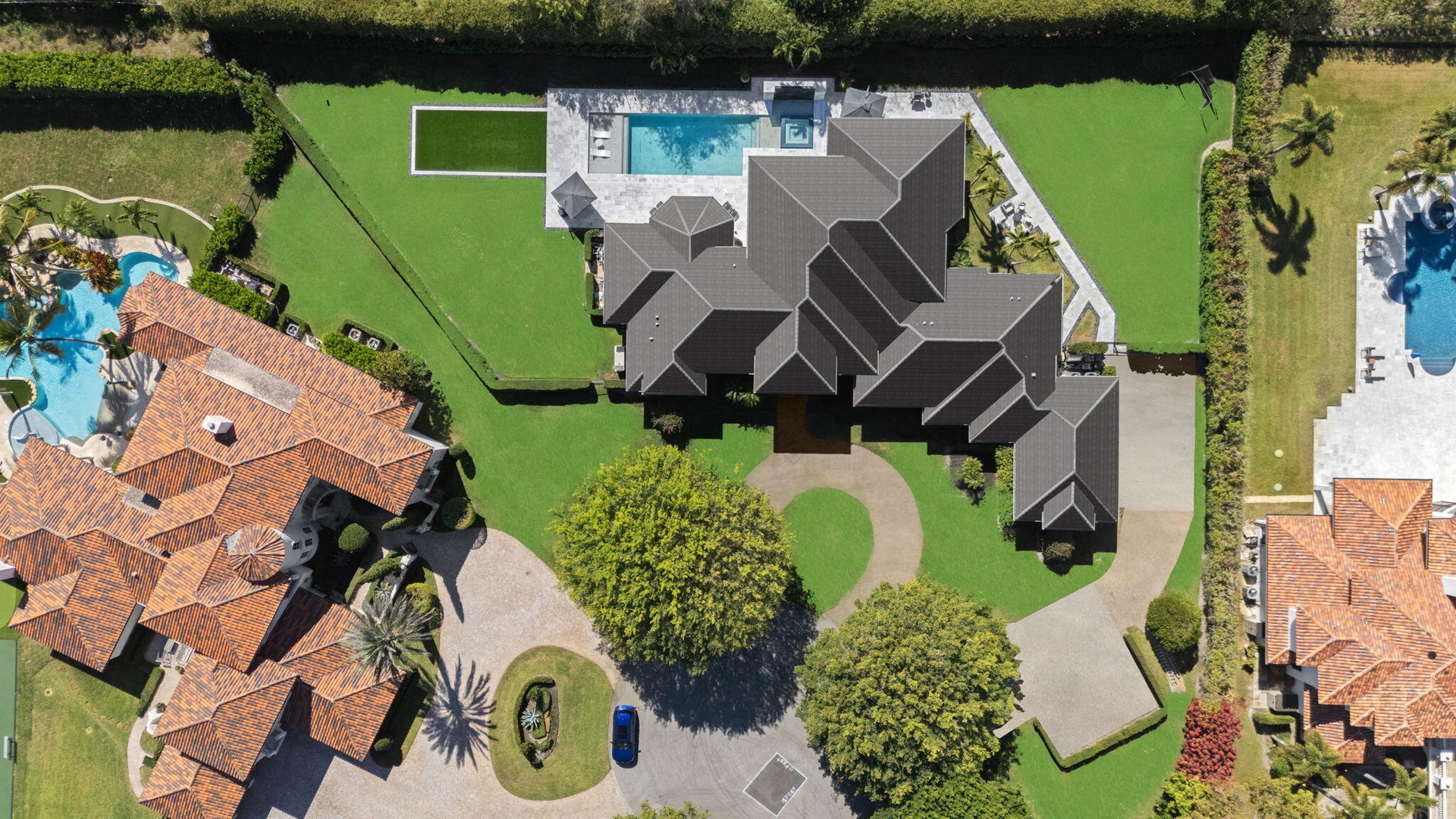 Set on a quiet cul-de-sac within the prestigious enclave of Long Lake Estates, 18338 Guardiann Circle offers a rare opportunity to own a fully renovated estate set on an acre of beautifully landscaped grounds. This exceptional residence blends refined design with privacy and tranquility, all in one of Boca Raton's most sought-after gated communities. The home features 5 bedrooms plus a dedicated gym and a versatile multipurpose room, 5.5 bathrooms, and a 3-car garage. Soaring ceilings and expansive windows throughout flood the interiors with natural light, highlighting the home's elegant finishes and seamless indoor-outdoor flow. Four of the five bedrooms are en suite, while the spacious primary suite serves as a true retreat, complete with large walk-in closets and spa-inspired ambiance. At the center of the home, the show-stopping chef's kitchen commands attention with an oversized island, top-of-the-line appliances, and effortless connectivity to the main living spaces perfect for both entertaining and everyday living. Step outside to a private resort-style oasis featuring a custom waterfall, pool and spa, outdoor shower, and a generous covered patio ideal for hosting or unwinding in total serenity. Expansive grassy areas and lush tropical landscaping enhance the sense of seclusion, with no road noise and unmatched privacy throughout the property. Additional highlights include impact windows and doors, a newer roof, and thoughtful renovations completed throughout. Known for its estate-sized lots and peaceful setting, Long Lake Estates offers a rare blend of luxury, space, and quiet, just minutes from Boca Raton's finest dining, shopping, and amenities.