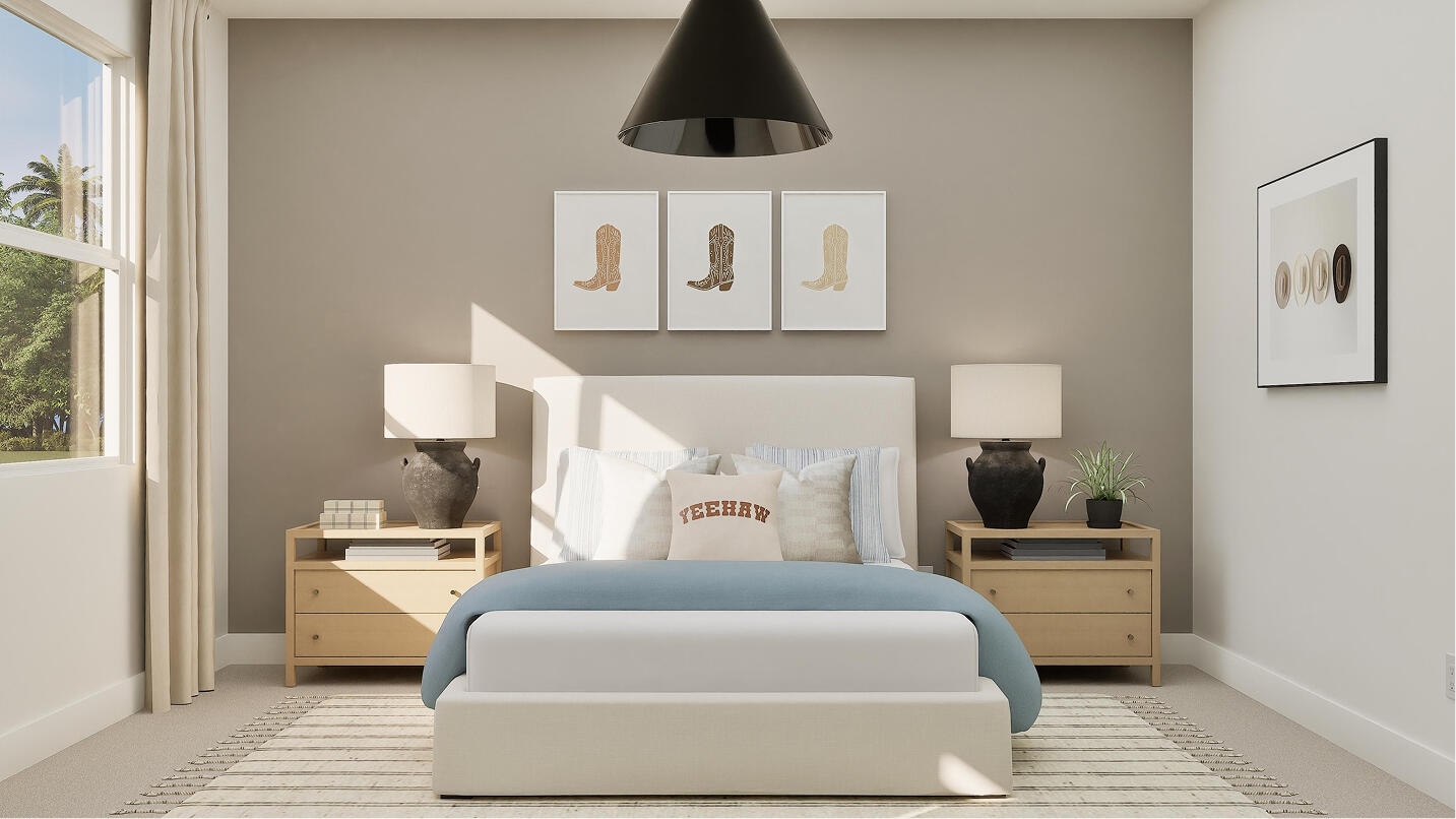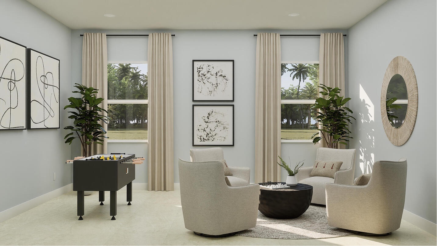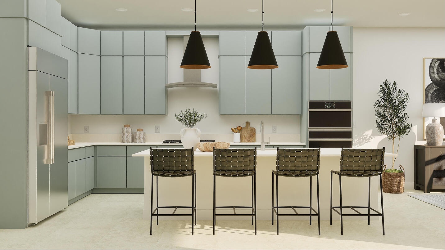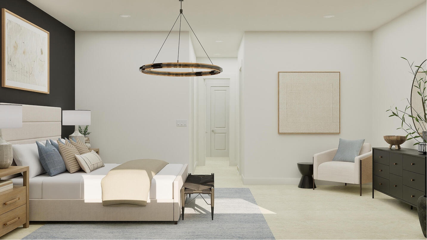 The largest plan in this collection is a sophisticated two-story home. Off the double-height foyer is a secluded flex space. Down the hallway is a free-flowing layout shared among the kitchen, dining room and a sprawling Great Room with a lanai . On the same level is a lavish owner's suite with a spa-style bathroom. Upstairs are the remaining four bedrooms, each with a private en-suite bathroom, along with a spacious media room and loft