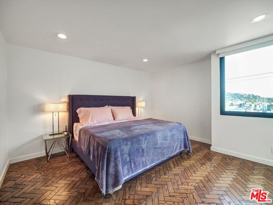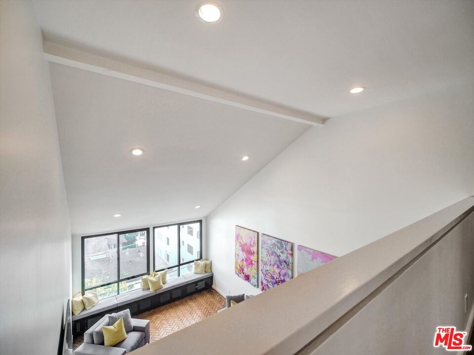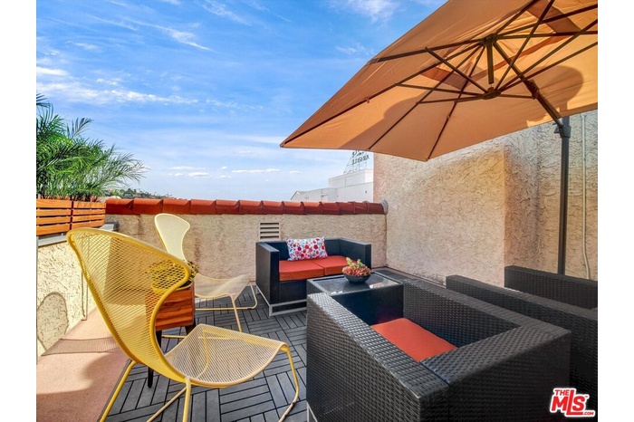 Nestled in the historic Hollywood Dell is this rare top floor 2 Bedroom, 2 Bath with loft, and private rooftop terrace, featuring uninterrupted views to the Hollywood Hills, Griffith Observatory and Hollywood skyline. Perfect space for evening sunsets and cocktails! The light-filled open living area features soaring cathedral ceilings, a generously proportioned kitchen, stunning herringbone wood floors, and wood burning fireplace. Sip your morning coffee here, sitting on the built-in window seat spanning the broad expanse of windows. A perfect place for planning your day or daydreaming! The open 2nd floor loft overlooks the living area with French doors to the terrace. This is a flexible space currently being used as a gym/office and also has hardwood floors. Each bedroom has a bathroom and is positioned to provide maximum privacy ideal for sharing/roommates. This well maintained home has an intelligent layout with generous storage throughout, including front hall closet, linen closet with luggage storage, side-by-side laundry area with storage shelves, large walk-in closet in the primary bedroom and dressing area. The building boasts landscaped public areas with a 2nd level pool and hot tub. The secure indoor parking structure provides this unit with 2 practical side-by-side parking spaces. The location is divine. You can walk to the Hollywood Bowl and Hollywood hot spots! Bronson and Beachwood Canyons are 5 minutes away so you can get your steps in and visit the Batman Caves! The immediate neighborhood flows uphill to serenity, with the Vedanta Center minutes away. If you lived here, you would be home now!