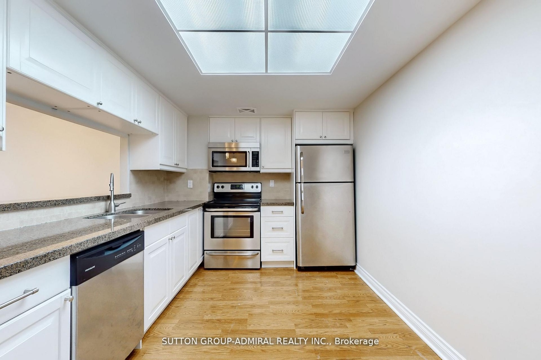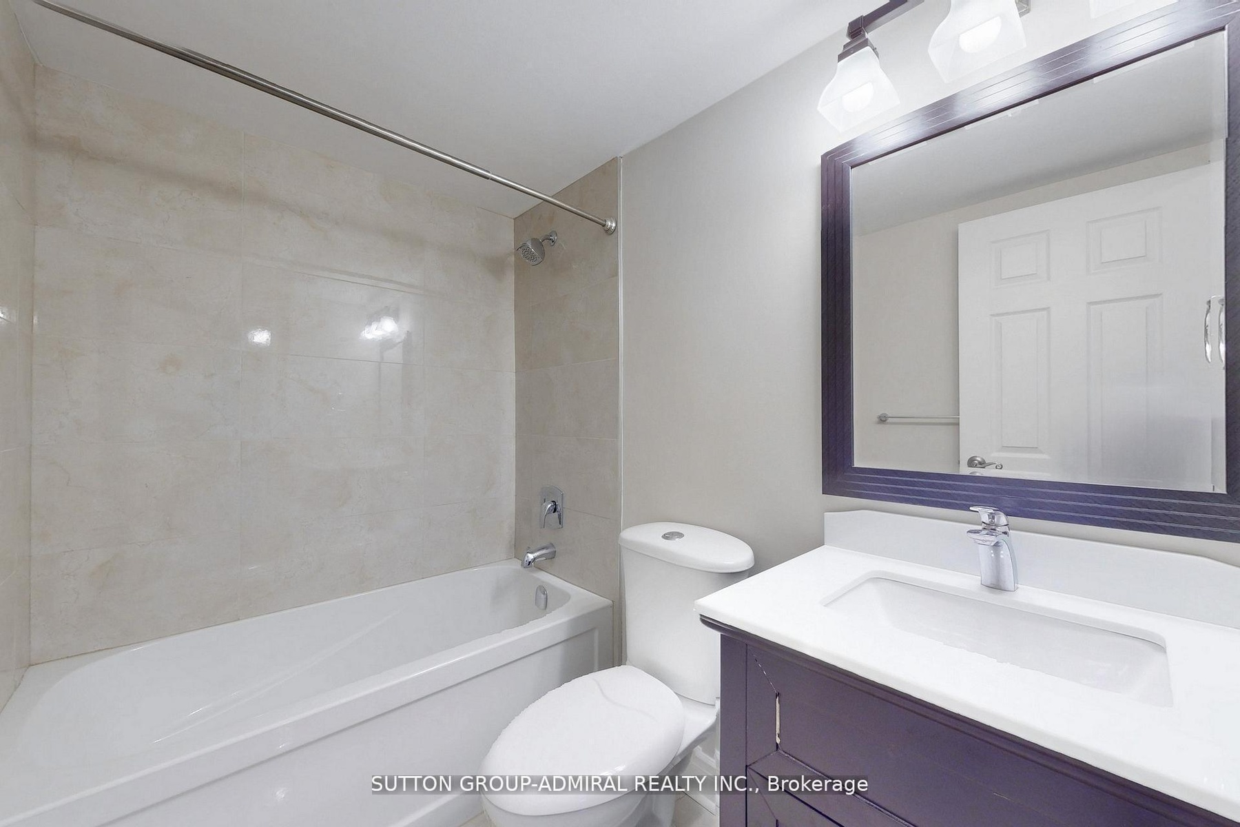 Large oversized renovated condo in the heart of Thornhill within walking distance to Promenade Mall, Walmart, No Frills, restaurants, library, community centre and much more. Easy access to transit. This bright open concept design has a sunny West facing view allowing in an immense amount of natural sunlight. Large ENSUITE Laundry Room with washer& dryer and EXTRA storage. Bonus of owned large STORAGE LOCKER and PARKING spot. Fresh designer paint throughout, white kitchen with stone countertops, generous size principle rooms, large closets, upgraded porcelain tiles in washrooms, glass shower door and too much to list. 5-star hotel amenities contain an outdoor swimming pool, tennis courts, squash courts, party room, sabbath elevator and rare indoor basketball! This condo has been maintained to perfection and move-in condition with nothing to do. Move in and enjoy! Won't last long!