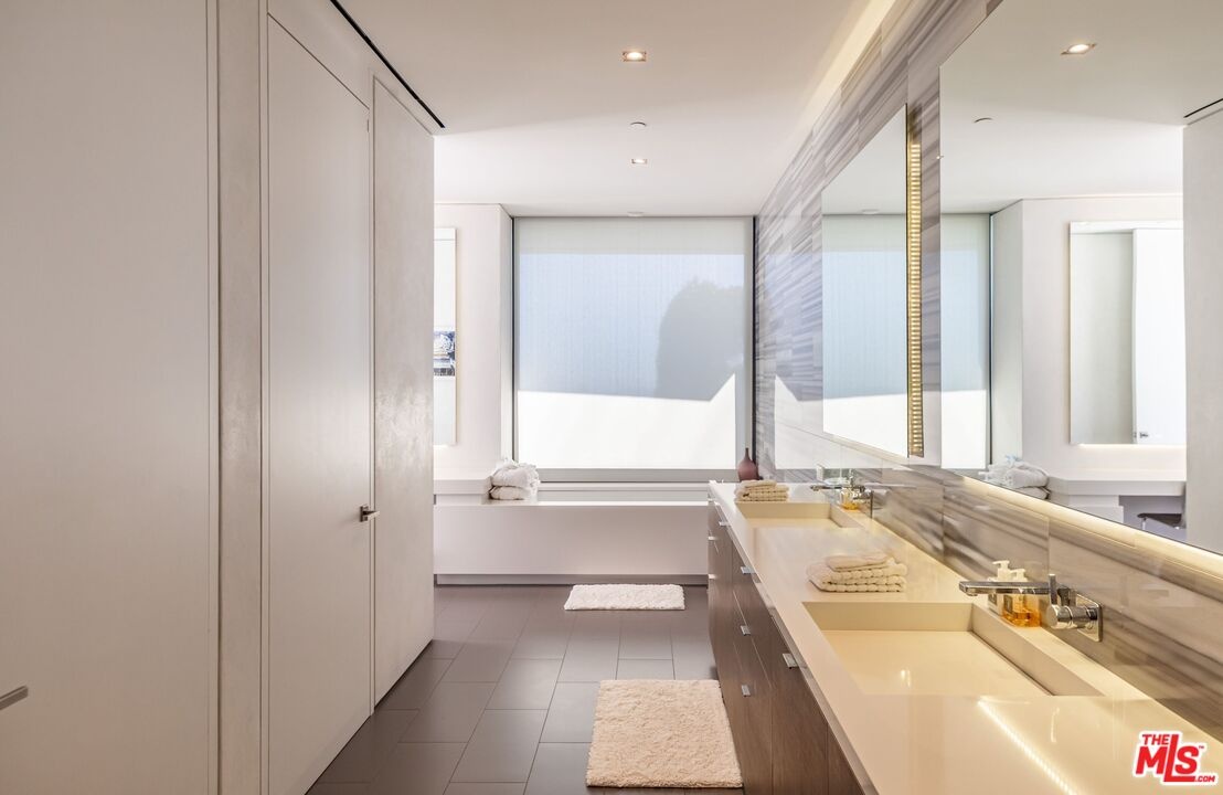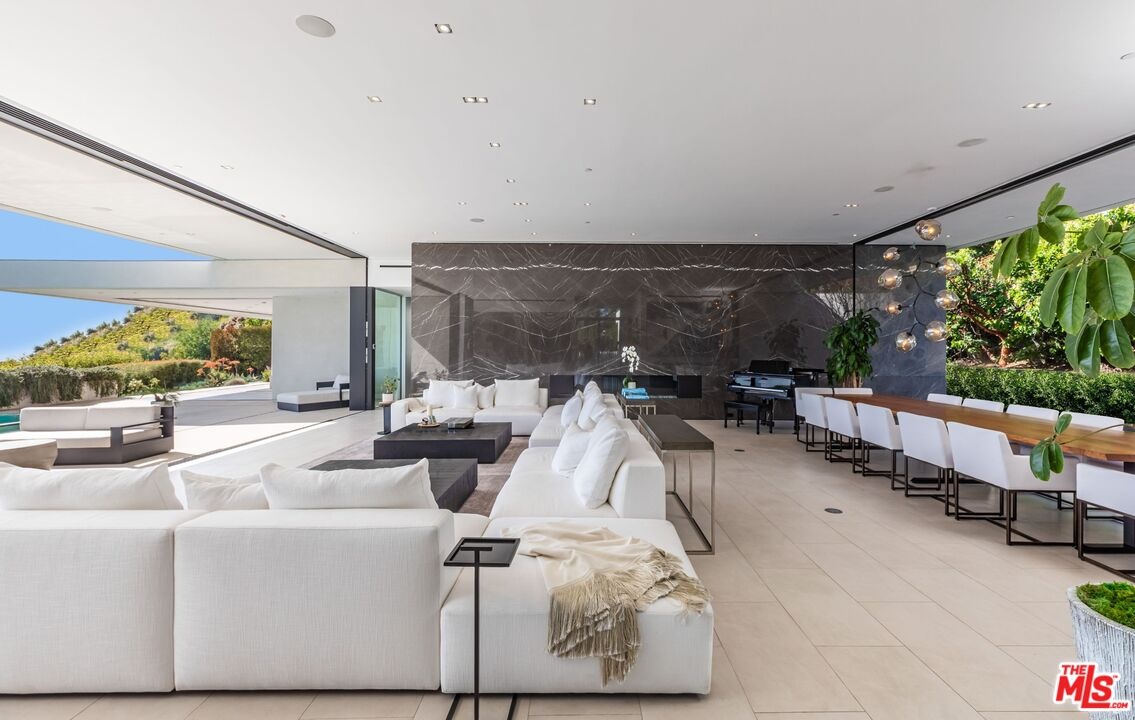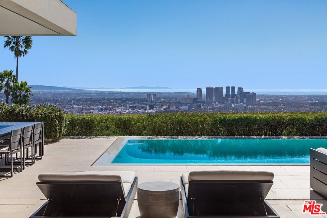 Set on one of Trousdale's most coveted streets, this striking one-story contemporary by renowned firm XTEN commands breathtaking, unobstructed views from Downtown Los Angeles to the Pacific Ocean. Nearly 7,000 square feet of single-level living is designed for seamless indoor-outdoor entertaining, with disappearing Fleetwood glass walls opening to panoramic vistas at the touch of a button. Finished with the finest materials, the home features five bedrooms and six bathrooms, each executed with exceptional craftsmanship. A gated motor court and custom water feature create a dramatic arrival, leading to a stunning glass entry and light-filled open floor plan with soaring ceilings and bespoke nine-foot hardwood doors. Amenities include a state-of-the-art home theater, secondary prep kitchen, Control4 smart home system, and a temperature-controlled 1,000-bottle glass wine cellar. The private, landscaped backyard offers a fireplace lounge and sweeping views, redefining elevated entertaining. A rare opportunity to own a world-class architectural estate at an exceptional value. Shown to pre-qualified clients only.
