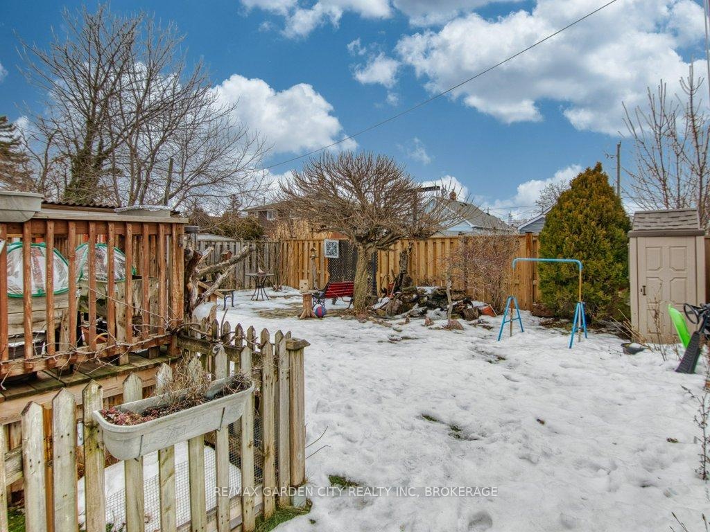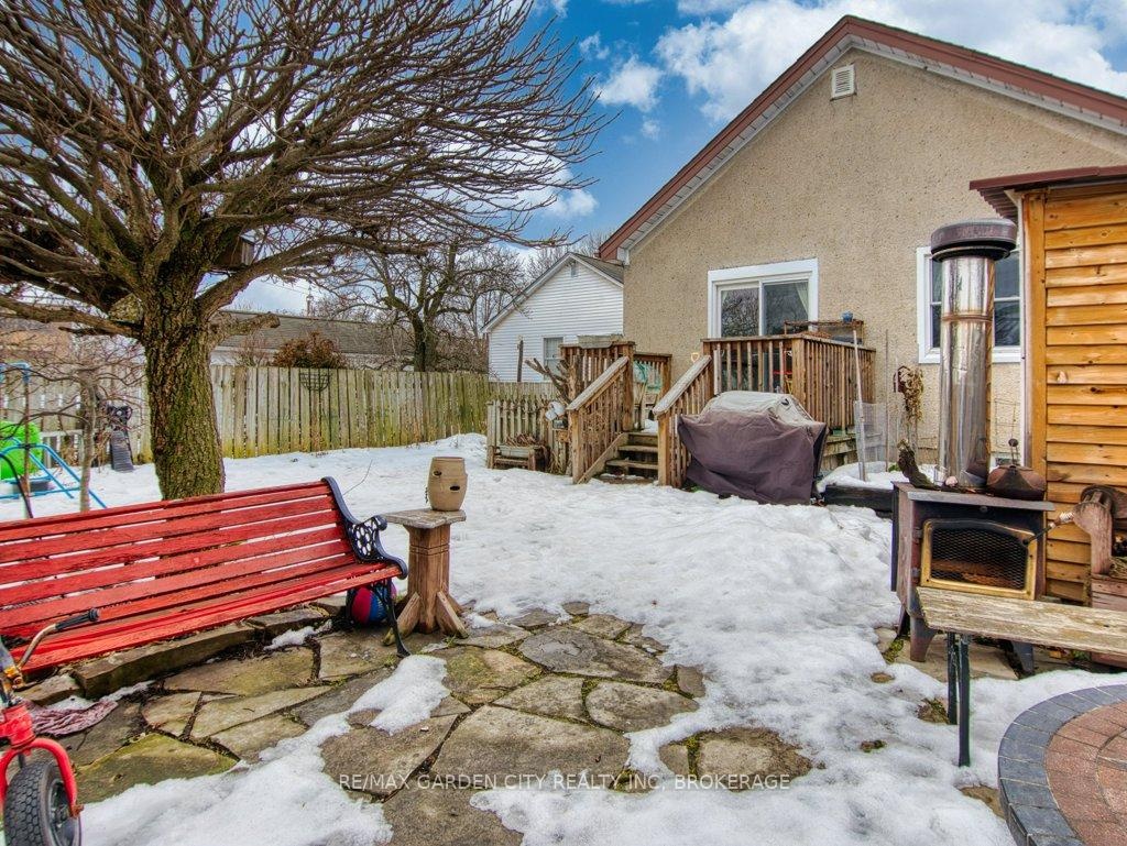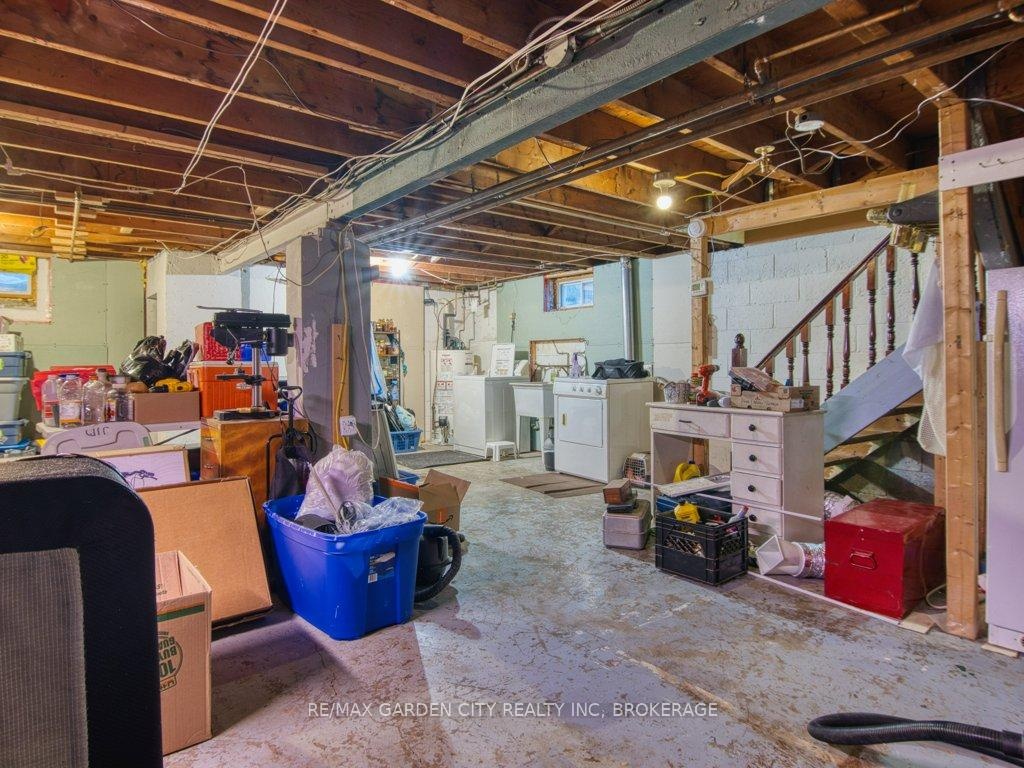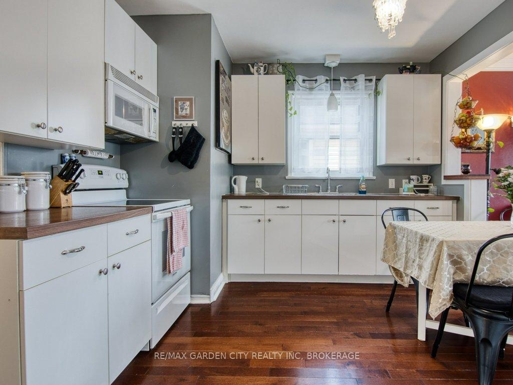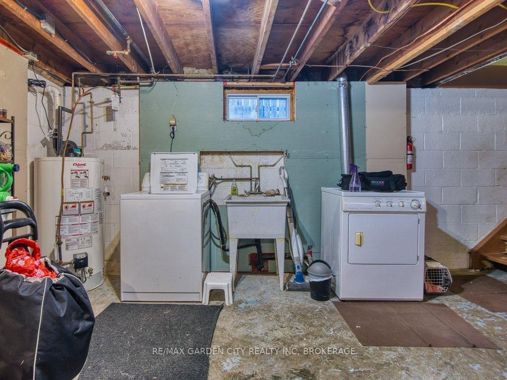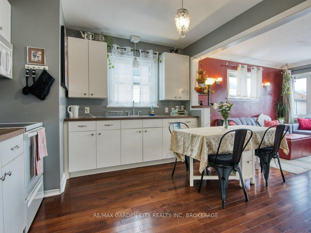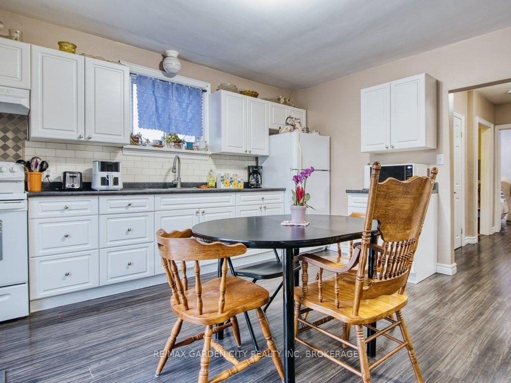 Owner occupied bungalow. Legal inlaw/duplex. Two homes in one. Well maintained clean living space. Many recent upgrades from shingles to kitchen, windows to bathroom. Must be seen to be appreciated. One side has an open concept kitchen, dining and living room, 4 piece bathroom, 2 bedrooms on the main floor plus a high dry basement with a legal 3rd bedroom, rec room, laundry, storage and workshop. Second side has a separate entrance, main floor open concept eat in kitchen with pantry and living room with patio doors to backyard wood deck, 4 piece bathroom plus 2 main floor bedrooms. Lower level has a laundry room plus a large open area with insulated walls and heat, ready to be finished into that rec room, bedrooms, gym, etc. 2 Separate hydro meters, 2 separate hot water tanks, natural gas boiler with 2 heat zones. Private paved 2 car driveway, flag stone walkway, raised gardens, fishpond with water garden, shed. Great neighbours and quiet area. Walk to school, churches, many amenities and only a few minutes to the QEW. Value for your dollar.