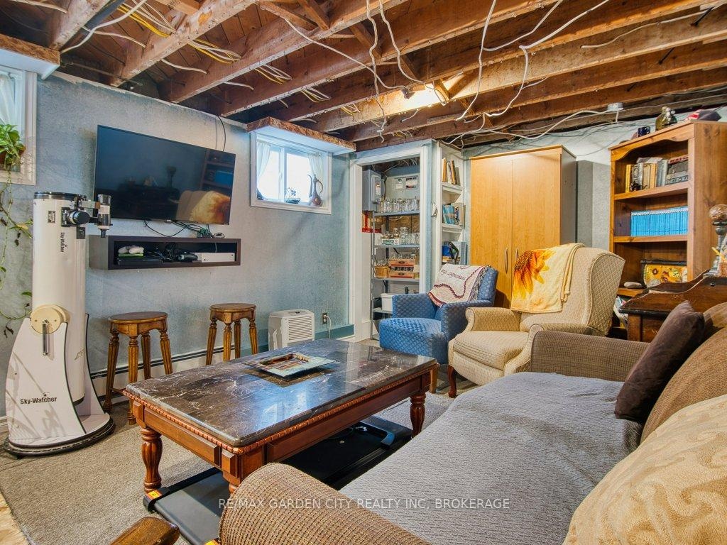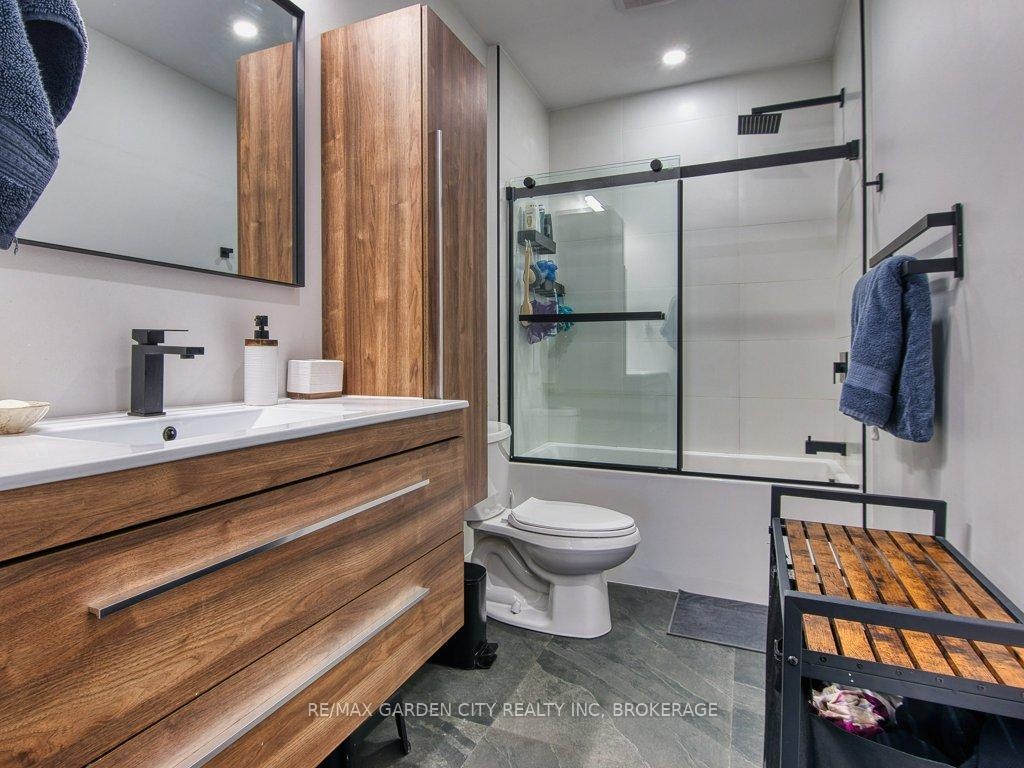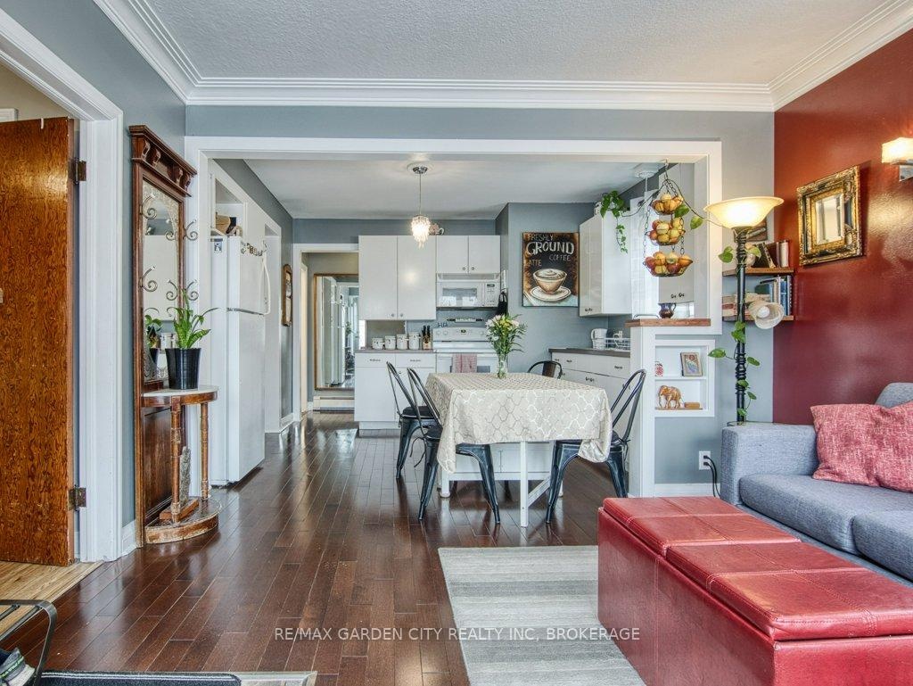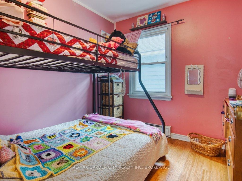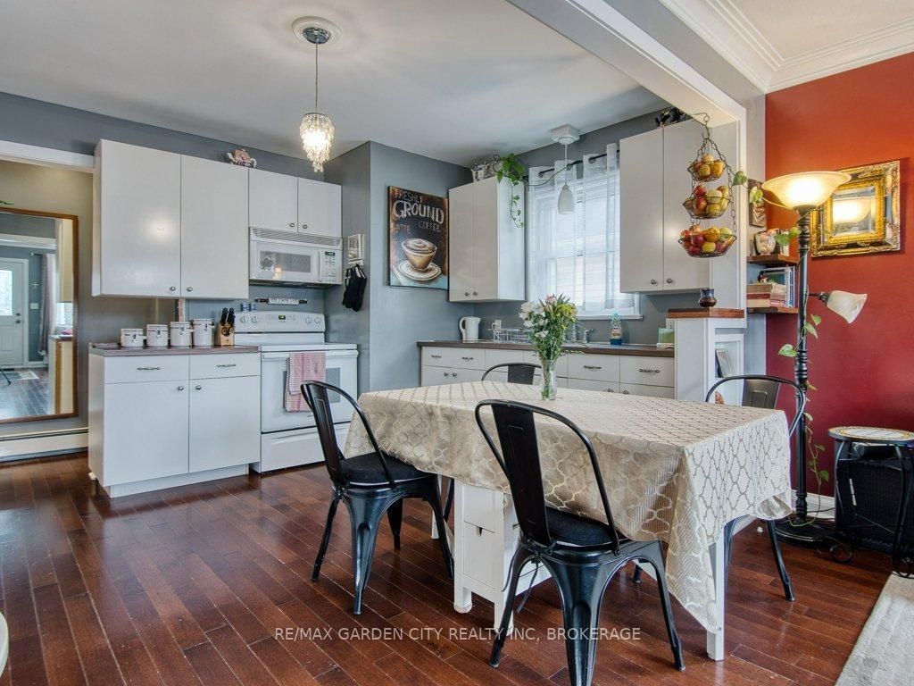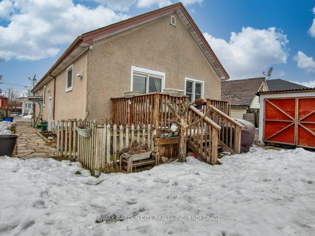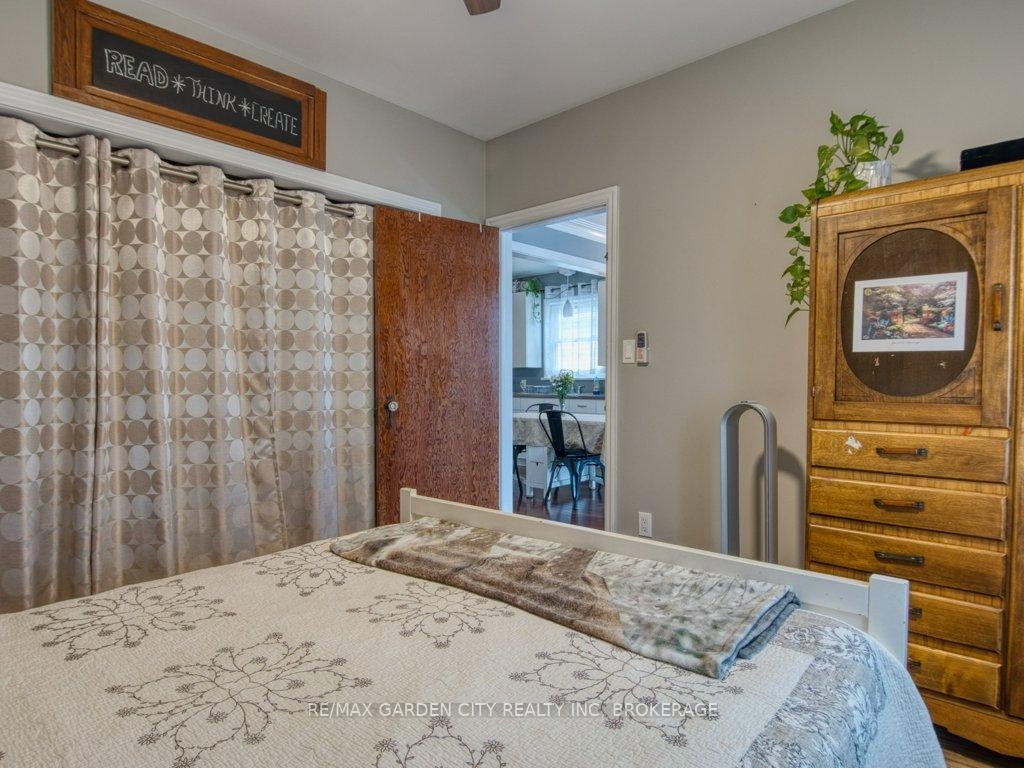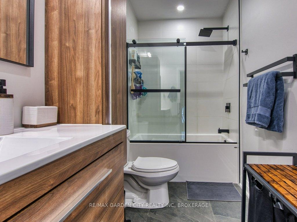 Owner occupied bungalow. Legal inlaw/duplex. Two homes in one. Well maintained clean living space. Many recent upgrades from shingles to kitchen, windows to bathroom. Must be seen to be appreciated. One side has an open concept kitchen, dining and living room, 4 piece bathroom, 2 bedrooms on the main floor plus a high dry basement with a legal 3rd bedroom, rec room, laundry, storage and workshop. Second side has a separate entrance, main floor open concept eat in kitchen with pantry and living room with patio doors to backyard wood deck, 4 piece bathroom plus 2 main floor bedrooms. Lower level has a laundry room plus a large open area with insulated walls and heat, ready to be finished into that rec room, bedrooms, gym, etc. 2 Separate hydro meters, 2 separate hot water tanks, natural gas boiler with 2 heat zones. Private paved 2 car driveway, flag stone walkway, raised gardens, fishpond with water garden, shed. Great neighbours and quiet area. Walk to school, churches, many amenities and only a few minutes to the QEW. Value for your dollar.