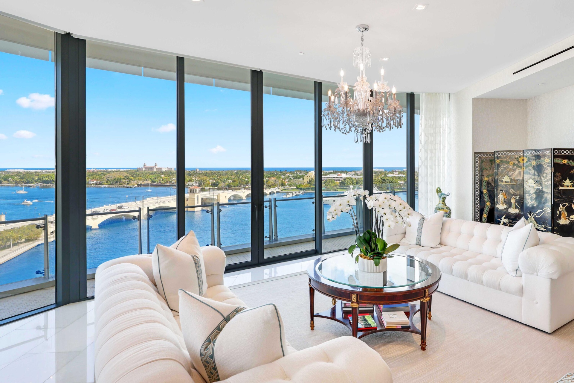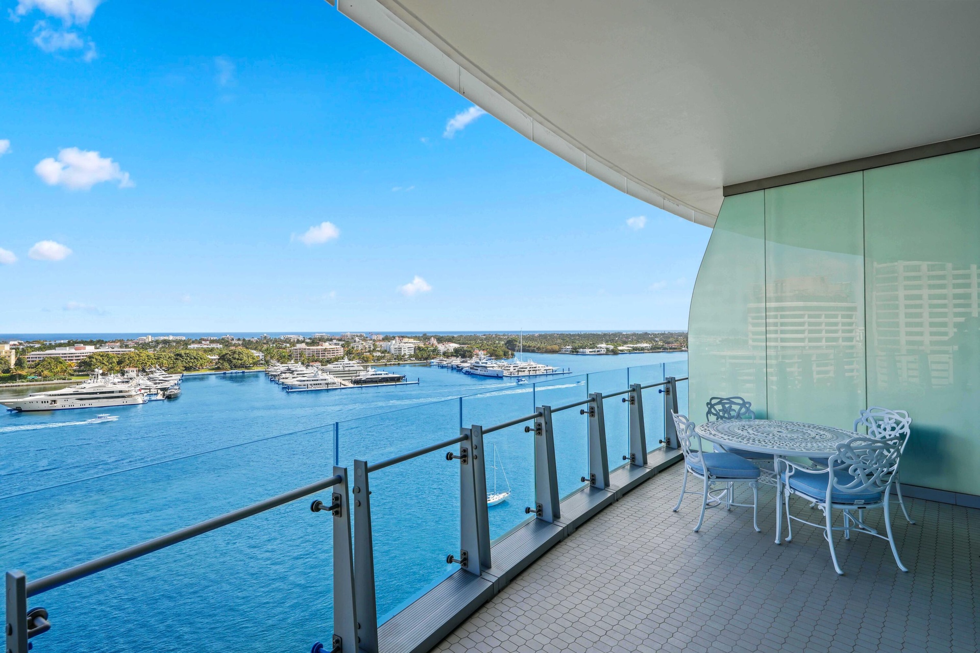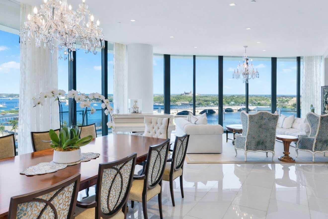 RARE OPPORTUNITY TO OWN THE ONLY AVAILABLE NE CORNER RESIDENCE IN THE BRISTOL!! Panoramic views of the Atlantic Ocean, Direct Intracoastal, Marina, Palm Beach Island, and sparkling city lights unfold from the main living areas, primary suite, and primary sitting area. This 4-Bed/5.1 bath layout is enhanced by an expansive wraparound terrace ideal for seamless indoor-outdoor living. Parking for 4 vehicles. Additional Private 2-Car Garage (creating a total of parking for 6 vehicles) is available for purchase separately. Floor-to-ceiling 11-foot impact glass doors and windows flood the home with natural light, complemented by automated window treatments, custom-built closets, and striking marble flooring throughout. A state-of-the art kitchen features top-of-the-line Gaggenau appliances, gas stove, induction cooktop, 2 dishwashers, 2 ovens, wine fridge & more. The Bristol delivers an exceptional level of luxury service, featuring a waterfront fitness center, full-service salon, dual spa facilities with steam and sauna, treatment rooms, a 75-foot resort-style pool, indoor and outdoor whirlpools, beautifully appointed entertaining terraces, resident lounge, private dining space, card room, and a private dog park. A full-building backup generator, gated entrance, attended lobby, concierge, three chauffeured house vehicles, and 24-hour valet ensure privacy and convenience.