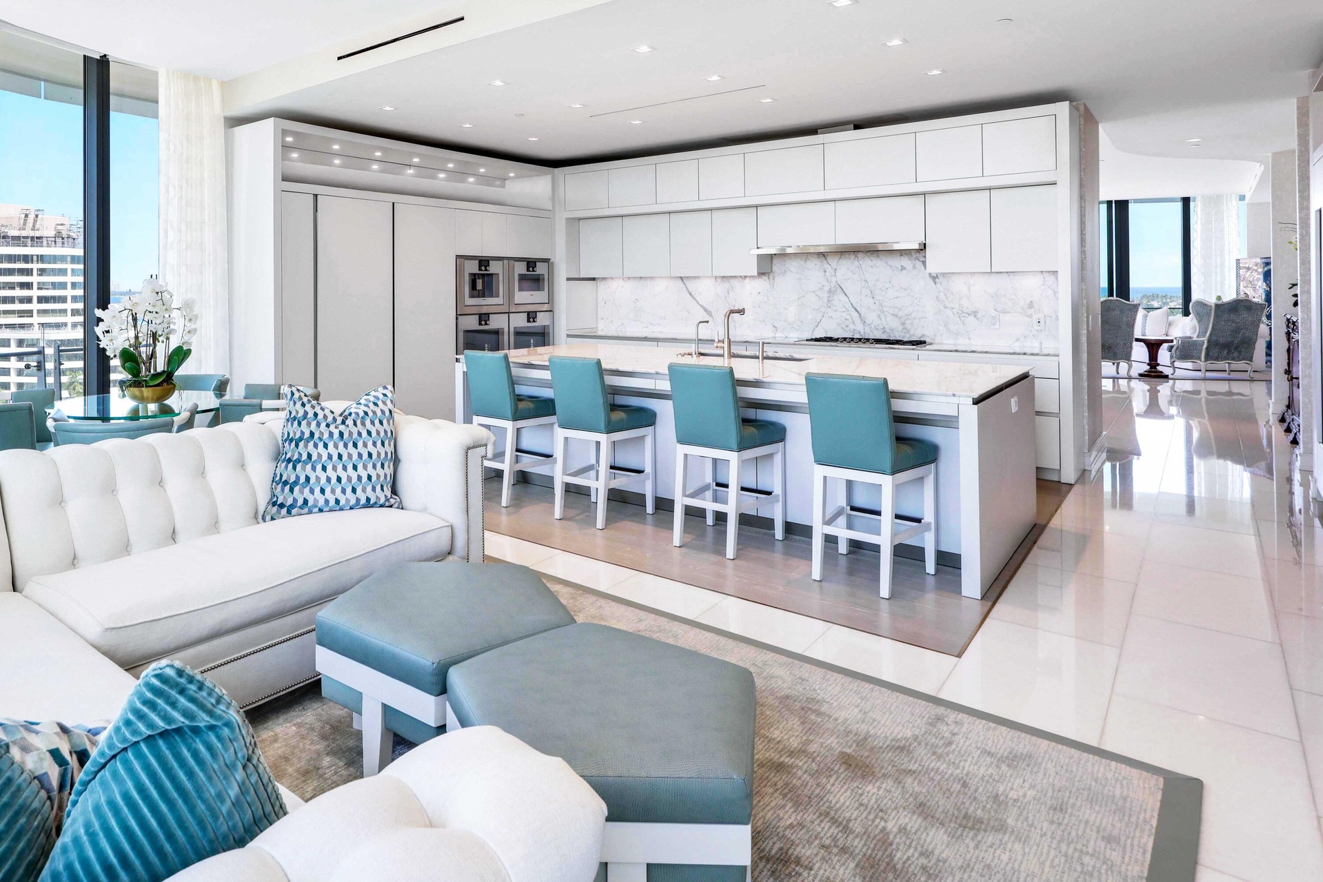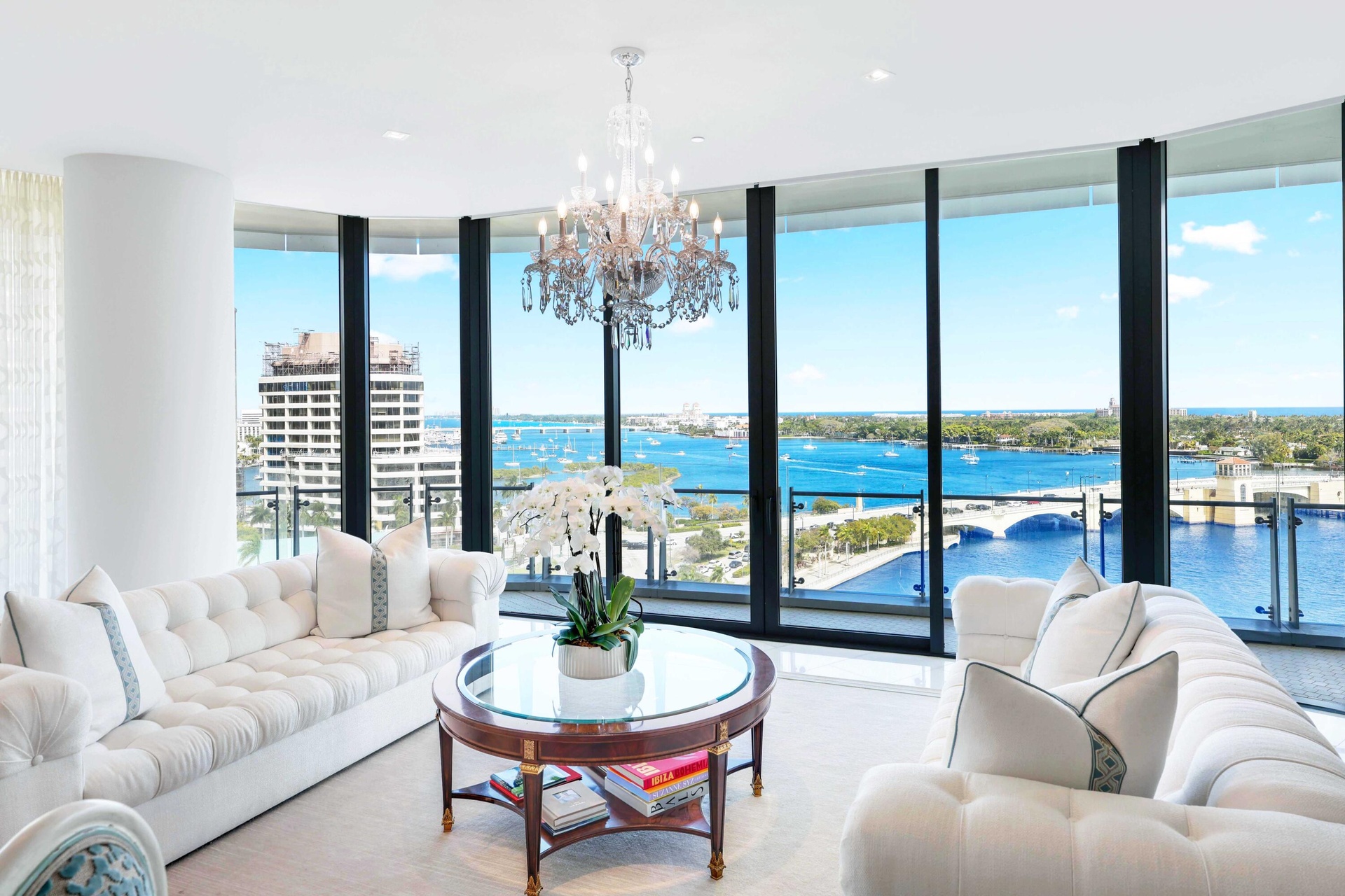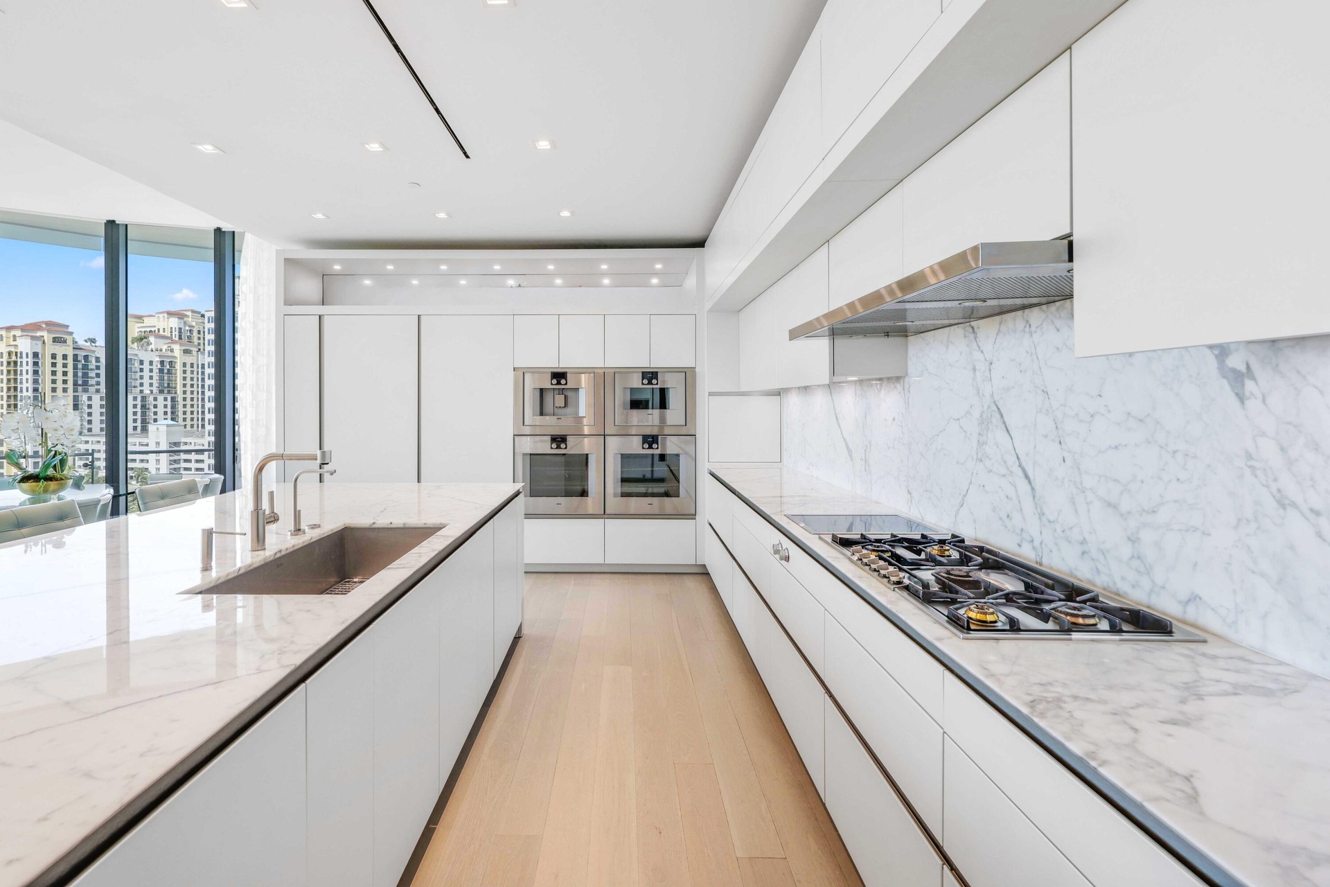 RARE OPPORTUNITY TO OWN THE ONLY AVAILABLE NE CORNER RESIDENCE IN THE BRISTOL!! Panoramic views of the Atlantic Ocean, Direct Intracoastal, Marina, Palm Beach Island, and sparkling city lights unfold from the main living areas, primary suite, and primary sitting area. This 4-Bed/5.1 bath layout is enhanced by an expansive wraparound terrace ideal for seamless indoor-outdoor living. Parking for 4 vehicles. Additional Private 2-Car Garage (creating a total of parking for 6 vehicles) is available for purchase separately. Floor-to-ceiling 11-foot impact glass doors and windows flood the home with natural light, complemented by automated window treatments, custom-built closets, and striking marble flooring throughout. A state-of-the art kitchen features top-of-the-line Gaggenau appliances, gas stove, induction cooktop, 2 dishwashers, 2 ovens, wine fridge & more. The Bristol delivers an exceptional level of luxury service, featuring a waterfront fitness center, full-service salon, dual spa facilities with steam and sauna, treatment rooms, a 75-foot resort-style pool, indoor and outdoor whirlpools, beautifully appointed entertaining terraces, resident lounge, private dining space, card room, and a private dog park. A full-building backup generator, gated entrance, attended lobby, concierge, three chauffeured house vehicles, and 24-hour valet ensure privacy and convenience.