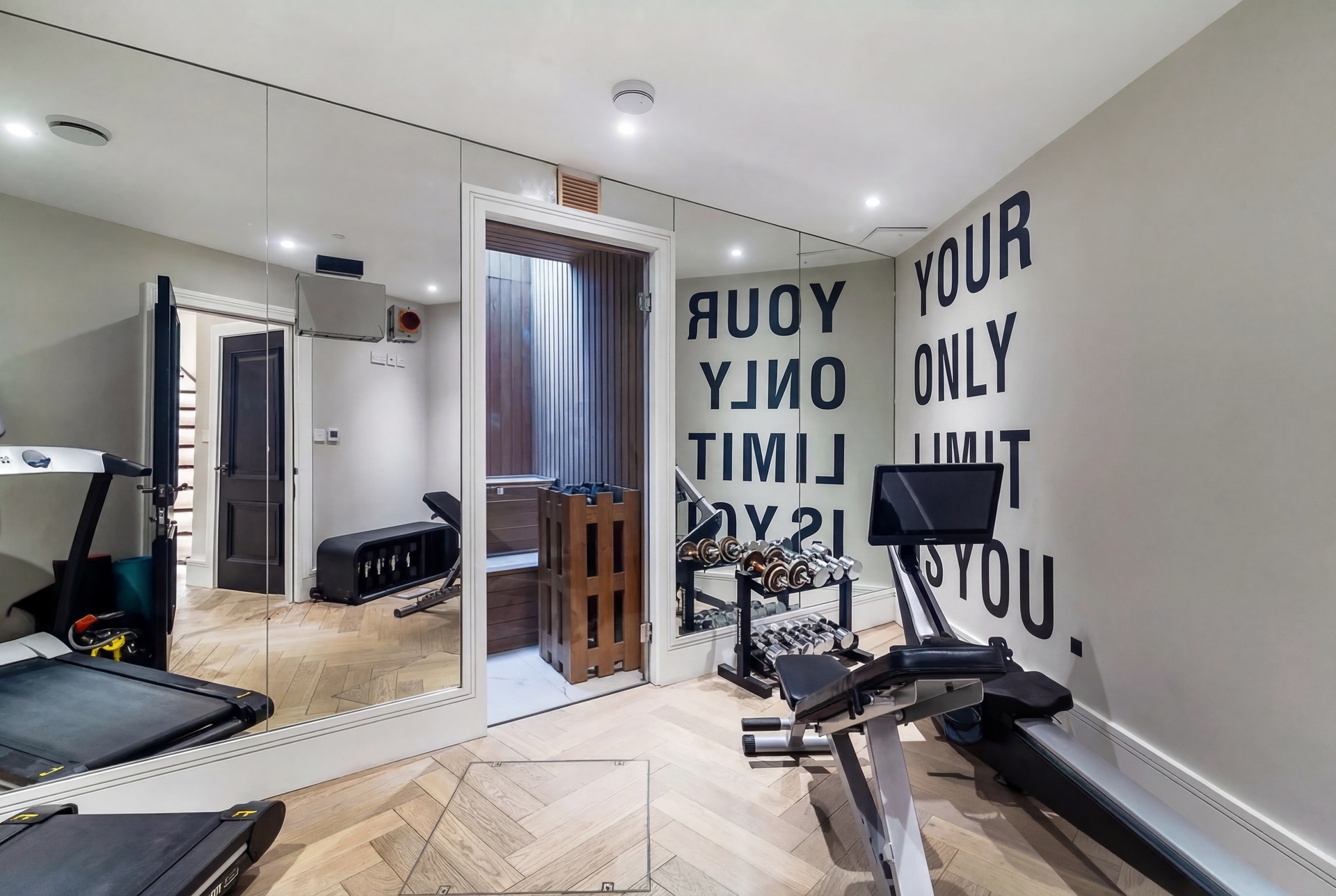 Basement gym, sauna & staff suite
