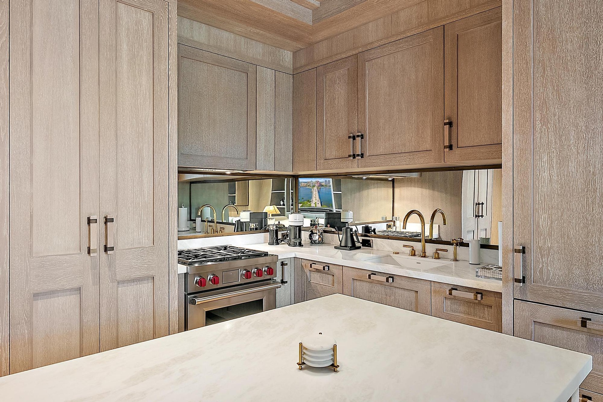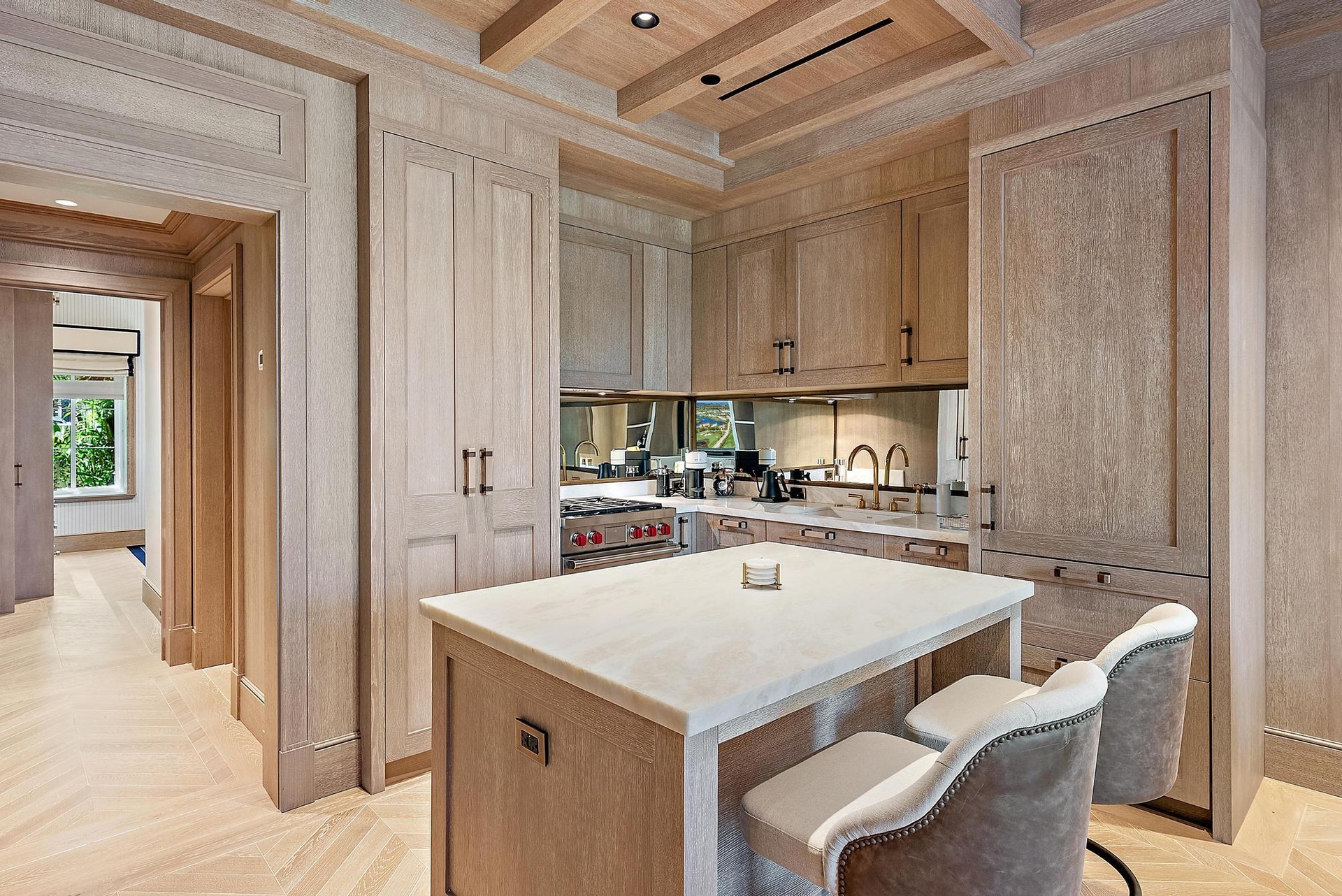 Live the Palm Beach lifestyle in this fully furnished, designer one-bedroom residence defined by impeccable craftsmanship and bespoke interiors. Thoughtfully curated with rich oak paneling, herringbone wood floors, and custom millwork throughout--including built-in closets, bookshelves, and tailored kitchen and bath cabinetry--the home is a true statement of timeless design. Loro Piana upholstered fabric walls, playful designer wallpapers, and warm brass accents create a layered, sophisticated aesthetic that feels both elevated and inviting. The chef's kitchen is appointed with a Sub-Zero 30'' refrigerator, Wolf dual range hooded cooktop and gas oven, and Wolf 24'' microwave, seamlessly blending performance and style. The bath offers a spa-like escape with a seamless marble steam shower Live the Palm Beach lifestyle in this fully furnished, designer one-bedroom residence defined by impeccable craftsmanship and bespoke interiors. Thoughtfully curated with rich oak paneling, herringbone wood floors, and custom millwork throughout--including built-in closets, bookshelves, and tailored kitchen and bath cabinetry--the home is a true statement of timeless design. Loro Piana upholstered fabric walls, playful designer wallpapers, and warm brass accents create a layered, sophisticated aesthetic that feels both elevated and inviting. The chef's kitchen is appointed with a Sub-Zero 30" refrigerator, Wolf dual range hooded cooktop and gas oven, and Wolf 24" microwave, seamlessly blending performance and style. The bath offers a spa-like escape with a seamless marble steam shower and Toto auto-flush fixtures. Modern conveniences such as a Maytag stacked washer/dryer, Sonos home sound system, and Lutron smart lighting provide effortless comfort and control. Intimate in scale yet grand in detail, this turnkey Palm Beach retreat delivers luxury, character, and refined living--ideal as a chic seasonal escape or an elegant year-round residence.