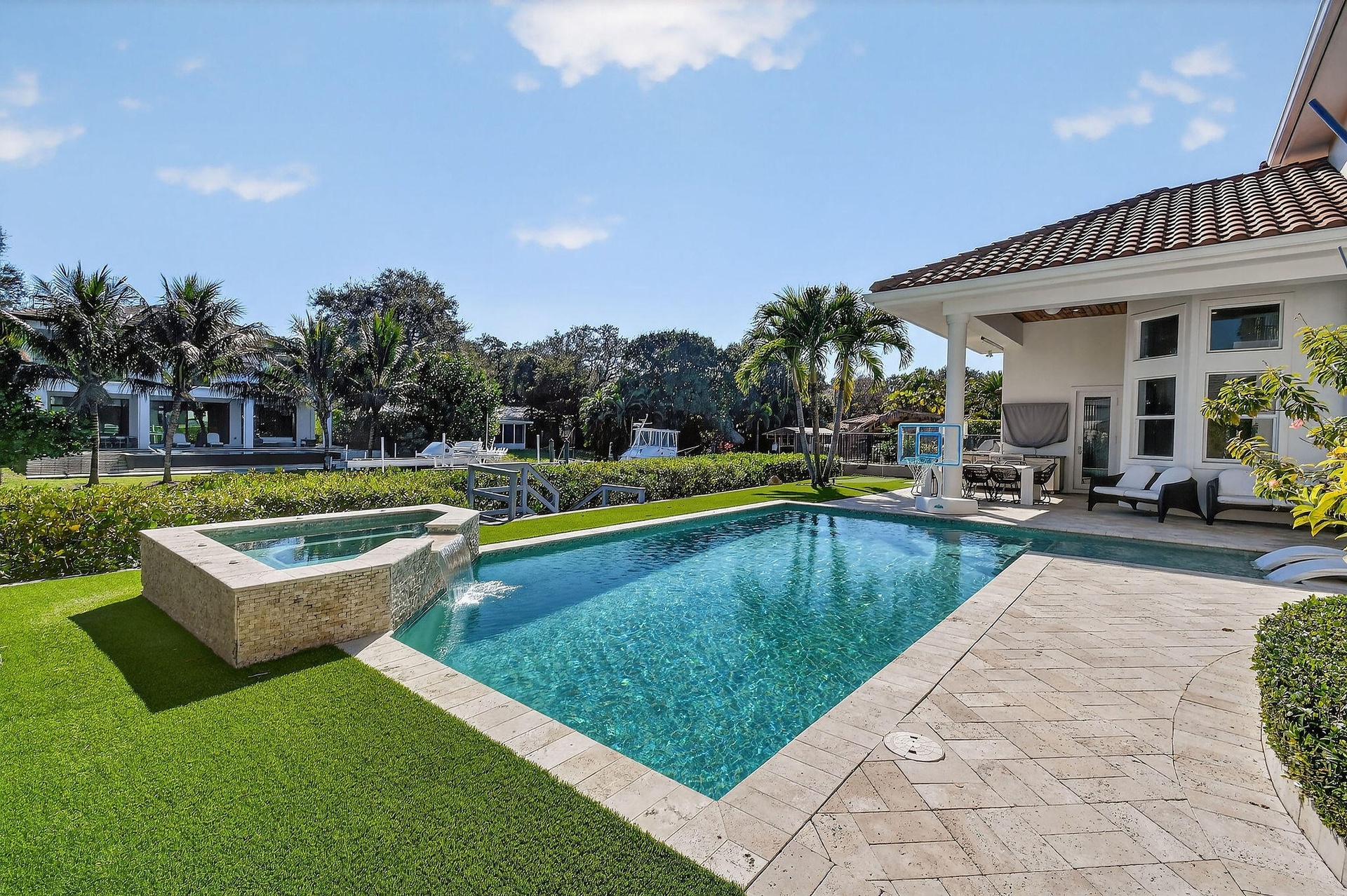 Tucked along a peaceful waterfront in Palm Beach Gardens, 12860 Inshore Drive captures the essence of refined coastal living, where mornings begin on the water and evenings are spent entertaining under the palms. With effortless access to the Intracoastal and the open ocean, boating becomes a natural extension of daily life, while the absence of HOA fees offers a rare sense of freedom and privacy. Inside, the home is beautifully curated for comfort and sophistication. A private first-floor office offers a quiet retreat for work or study, while the primary suite is designed as a true sanctuary with dual bathrooms, expansive walk-in closets, and a dedicated fitness area. Marble flooring, impact glass, and smart home technology elevate both the aesthetic and functionality of the residence. The upper level provides gracious accommodations for family and guests with two ensuite bedrooms, an additional bedroom, and a versatile loft ideal for a lounge or media space. Outside, the setting feels like a private resort, with a heated saltwater pool and spa framed by lush tropical landscaping. The outdoor kitchen, featuring stainless steel cabinetry, a gas grill, cocktail station, and refrigerator, invites effortless alfresco dining and waterfront entertaining. Minutes from Palm Beach Gardens' renowned golf courses, pristine beaches, and upscale dining and shopping, this exceptional home offers a rare blend of luxury, privacy, and the ultimate Florida boating lifestyle.