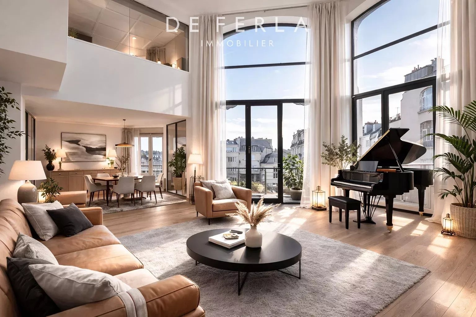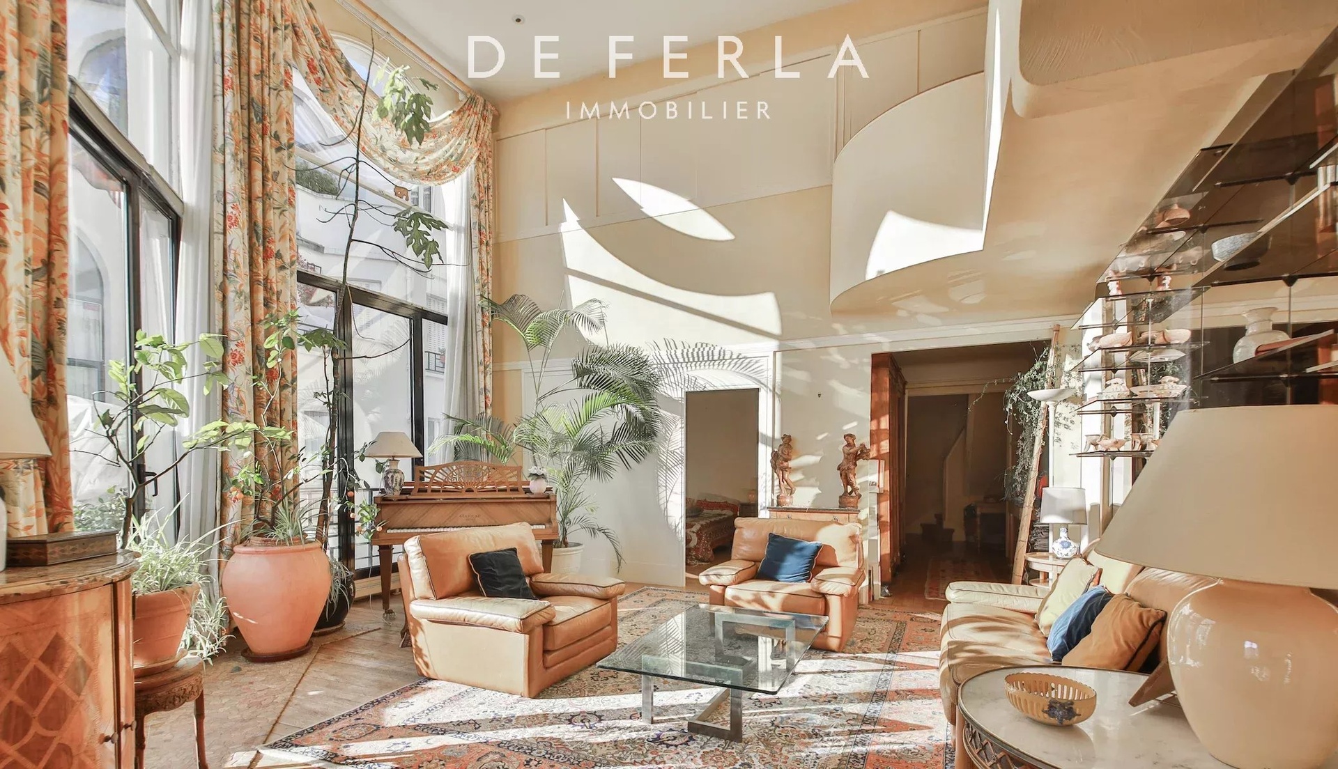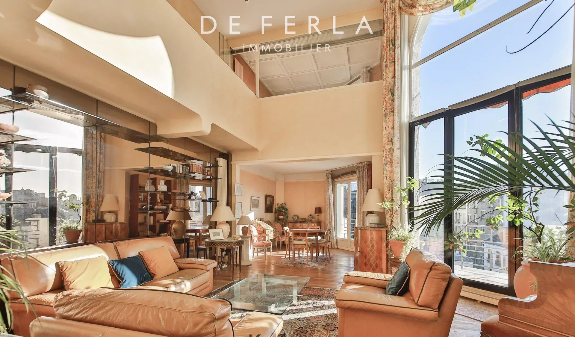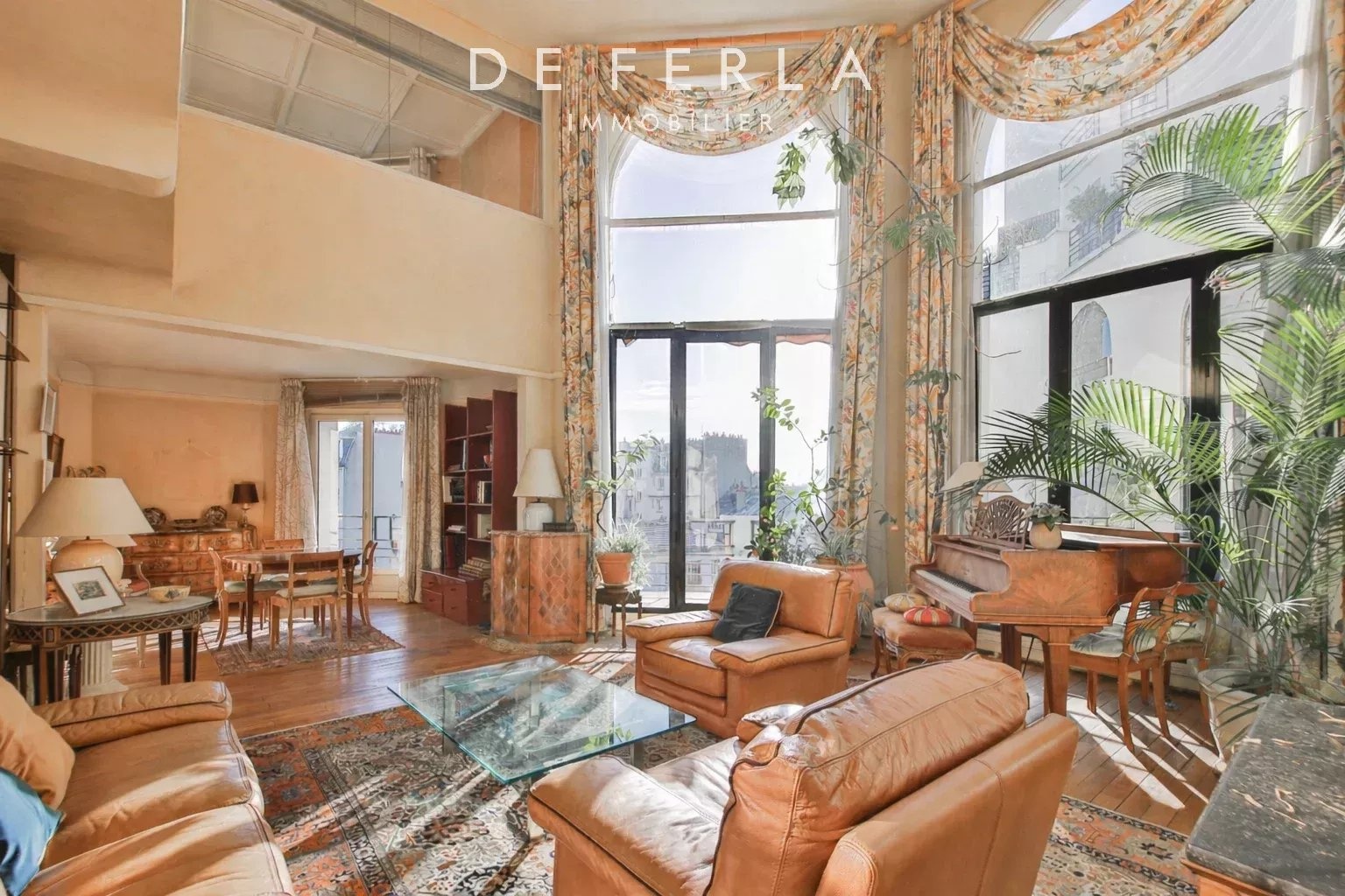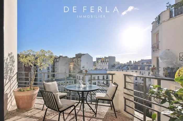 RUE BOULARD, PARIS 14eme In a prestigious old stone building with janitor, a magnificent 143m2 (156m2 on the ground) artist's studio-style family apartment on the 5th and 6th floors with elevator. This property comprises an entrance hall, a vast cathedral-shaped living room with 5.5 m high ceilings, a dining room, a south-facing terrace with unobstructed views, a dining room, an office, a kitchen, entrance and wc. On the 6th floor, three bedrooms, a bathroom with toilet, a shower room.