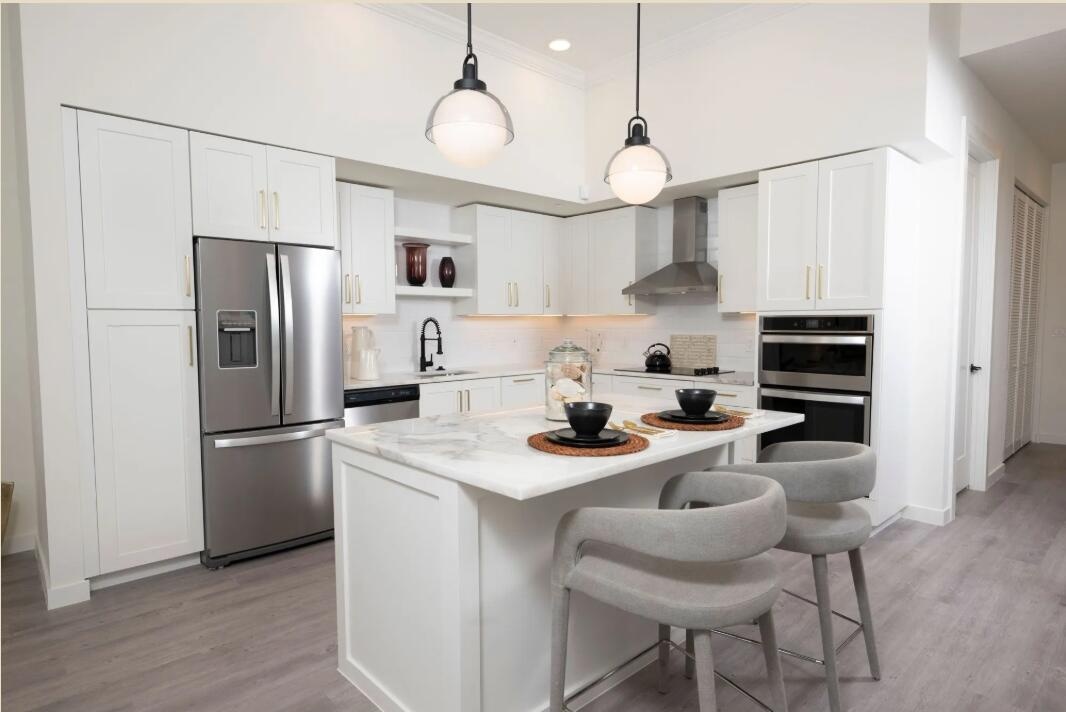 Welcome to the Aiken floor plan at Wellington Bay, a luxurious 1-bedroom, 1-bathroom apartment spanning 854 square feet, designed for effortless independent living in the heart of Wellington, Florida. This thoughtfully laid-out residence features an open-concept great room that seamlessly flows into a modern kitchen, complete with ample counter space and room for casual dining--perfect for entertaining friends or enjoying quiet meals at home. The spacious main bedroom offers a serene escape with a walk-in closet and direct access to the well-appointed bathroom, boasting a walk-in shower for added convenience. Step outside onto your private balcony, where you can savor morning coffee amid scenic views of the 46-acre campus and tranquil lakes. Practical touches like in-unit laundry and storage options make daily life a breeze.