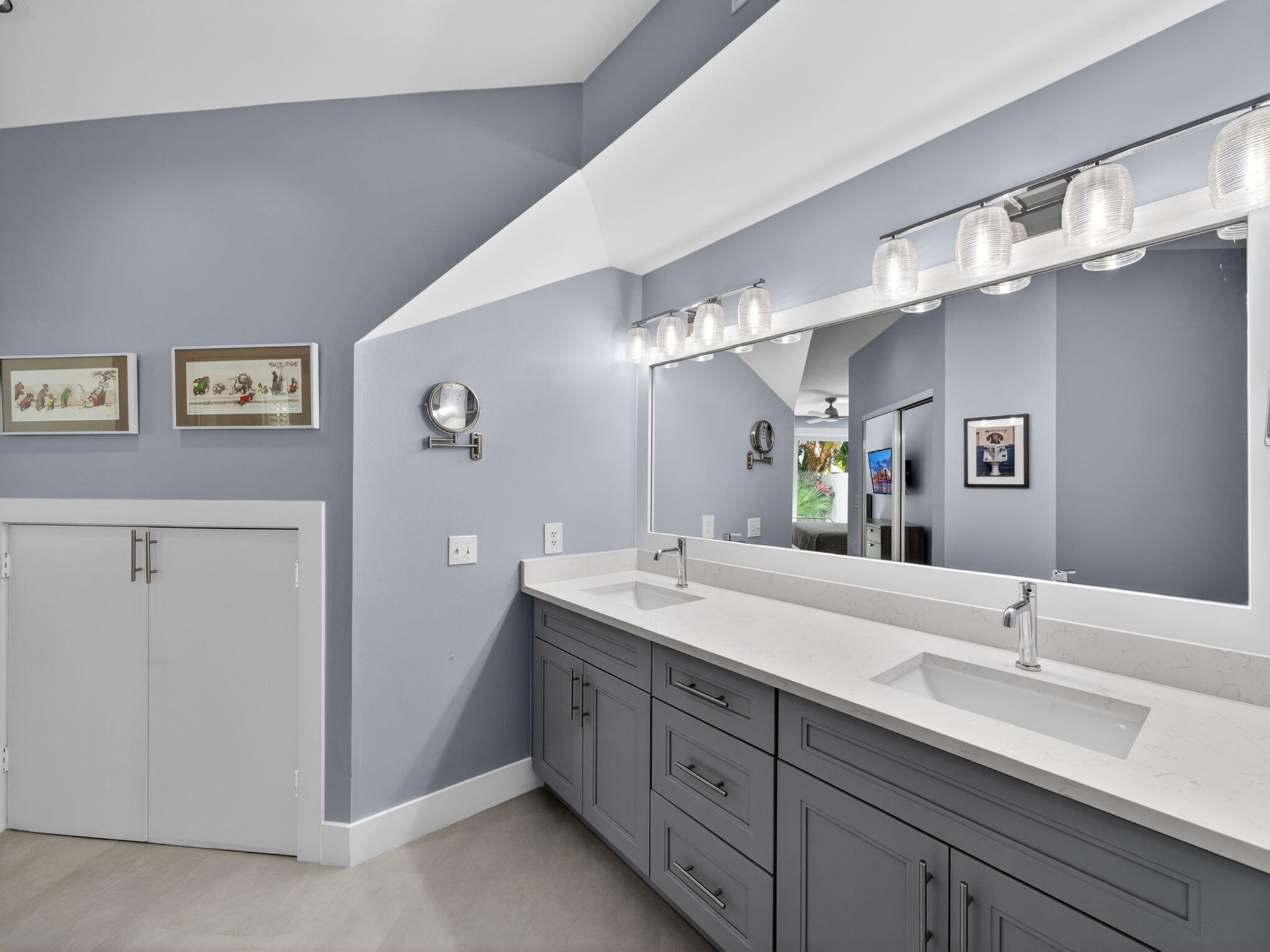 Welcome to Sea Colony! Jupiter's premier guard-gated oceanfront community, where coastal elegance meets everyday comfort. Perfectly positioned in the highly sought-after Lakes section, this beautifully renovated 3 bed 3 bath corner residence offers the privacy of an end unit, convenience of a 2 car garage, and the luxury of direct beach access just moments away. Designed for effortless coastal living, this light-filled home features soaring vaulted ceilings and an open layout that seamlessly connects indoor and outdoor spaces. Recent upgrades include a brand-new roof and full impact windows and doors,providing peace of mind and modern efficiency. The renovated kitchen is both stylish and functional, complete with quartz countertops and clean contemporary finishes. Primary is conveniently located on the main level, along with a secondary bedroom, offering flexibility for full-time living or hosting guests. Step outside to your private outdoor retreat, surrounded by lush tropical landscaping and a spacious backyard ideal for entertaining, relaxing, or enjoying Jupiter's year-round sunshine. Sea Colony offers a true resort-style lifestyle with 24-hour manned gate security, private gated beach access to Jupiter's dog-friendly shoreline, resort-style pool and spa, pickleball and tennis courts, fitness center, and impeccably maintained grounds. Located just minutes from Jupiter's finest waterfront dining, golf courses, marinas, shopping, and entertainment, this exceptional residence offers the rare opportunity to experience beachside living in one of Jupiter's most exclusive communities. This is coastal living at its finest.