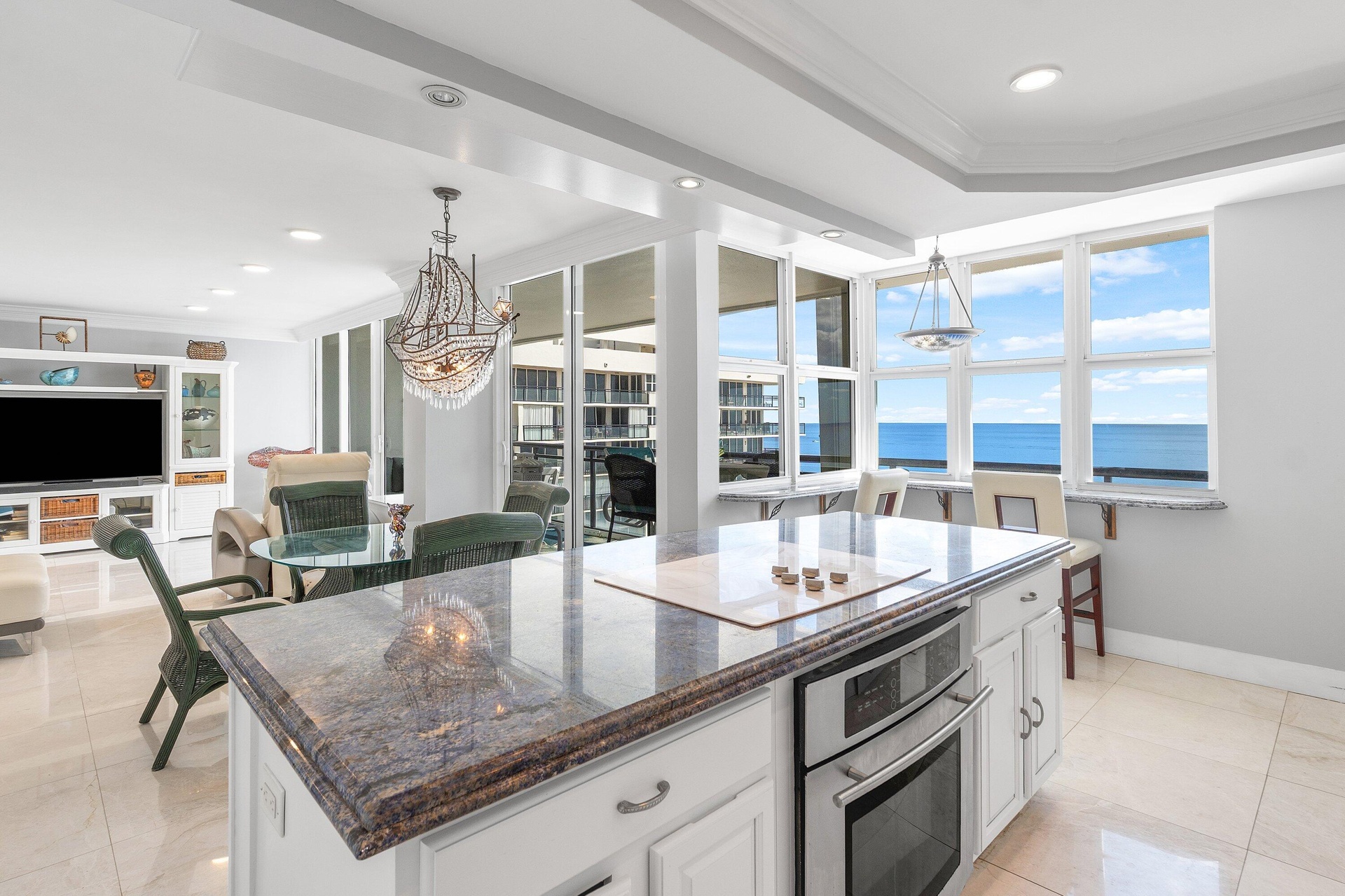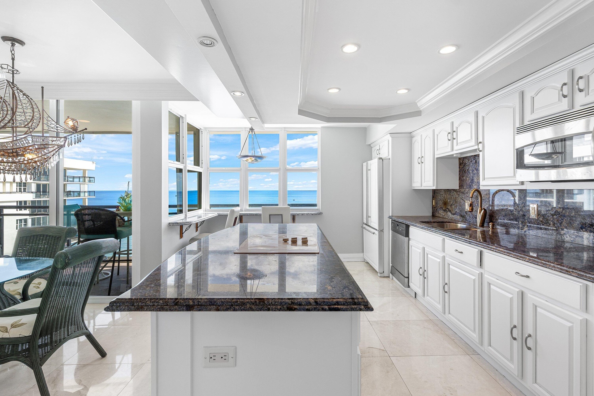 Experience oceanfront living at its finest in this spectacular lower penthouse residence at the prestigious Whitehall in Boca Raton. Offering approximately 1,400 square feet of beautifully reimagined space, this fully renovated 2-bedroom, 2-bathroom home showcases sweeping panoramic ocean views from nearly every room. Meticulously redesigned from the studs up, this residence features the highest quality finishes and craftsmanship throughout. Elegant marble flooring flows seamlessly across the entire home, extending into the spa-inspired bathrooms where marble-clad walls create a refined, resort-like ambiance. Floor-to-ceiling impact sliding glass doors frame the coastline and flood the interior with natural light, blending indoor sophistication with breathtaking seaside views.