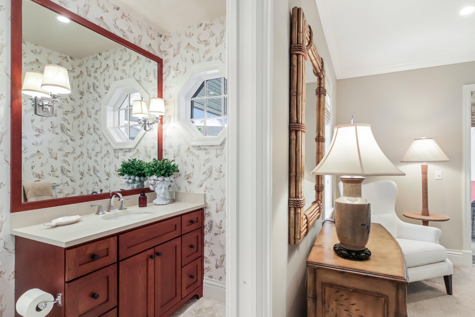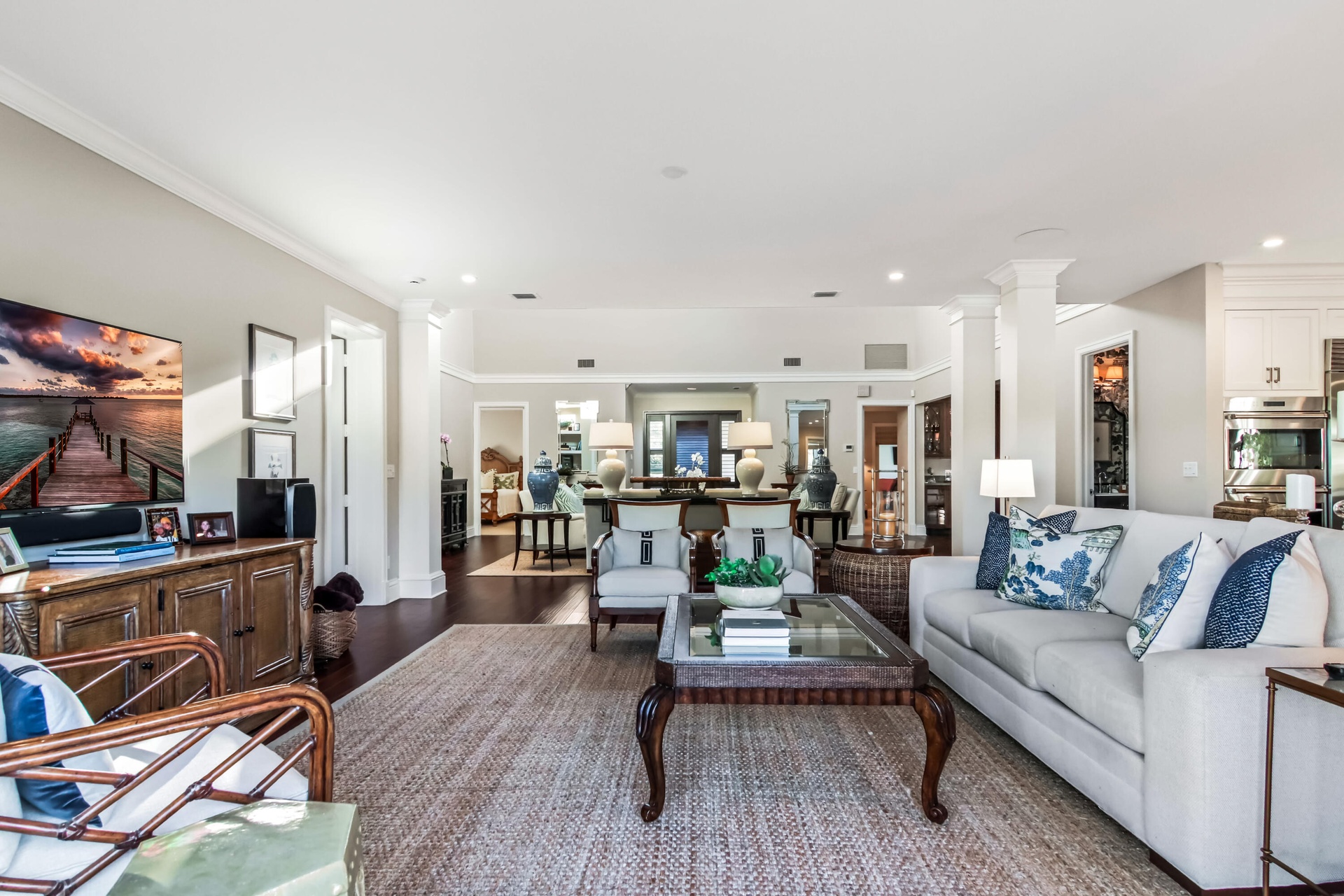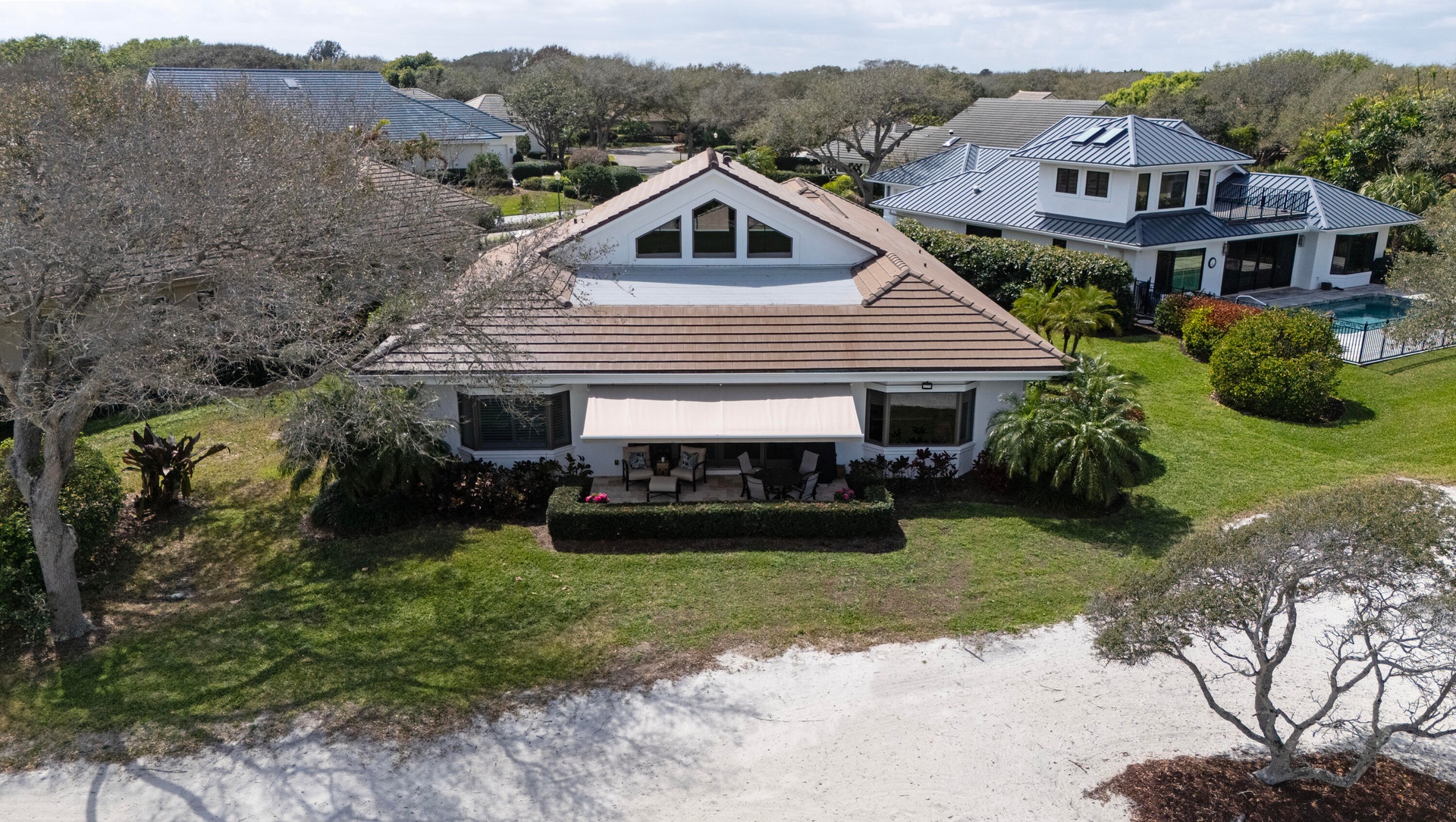 Upscale single story home located on the 16th hole of prestigious Jupiter Hills with sweeping fairway views.
