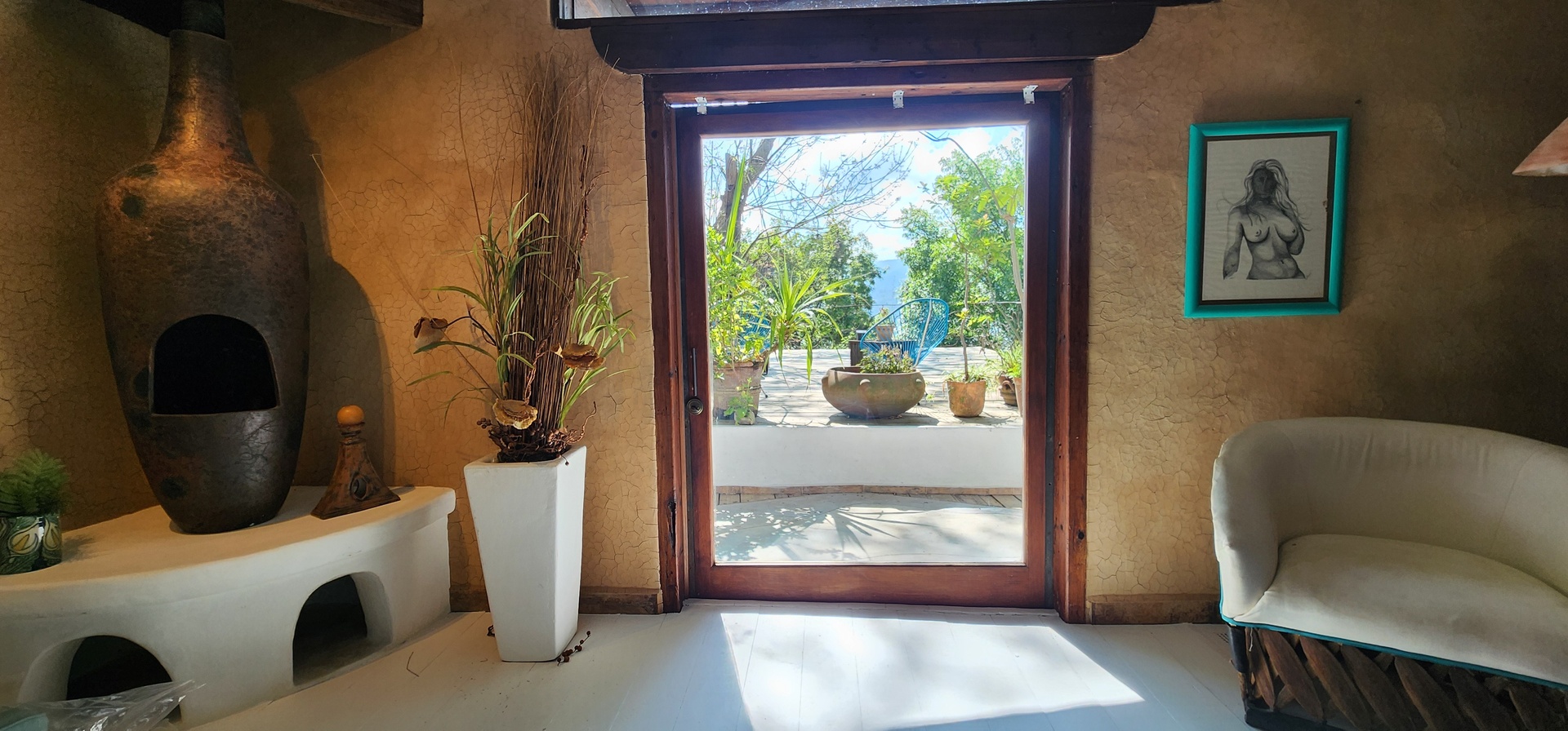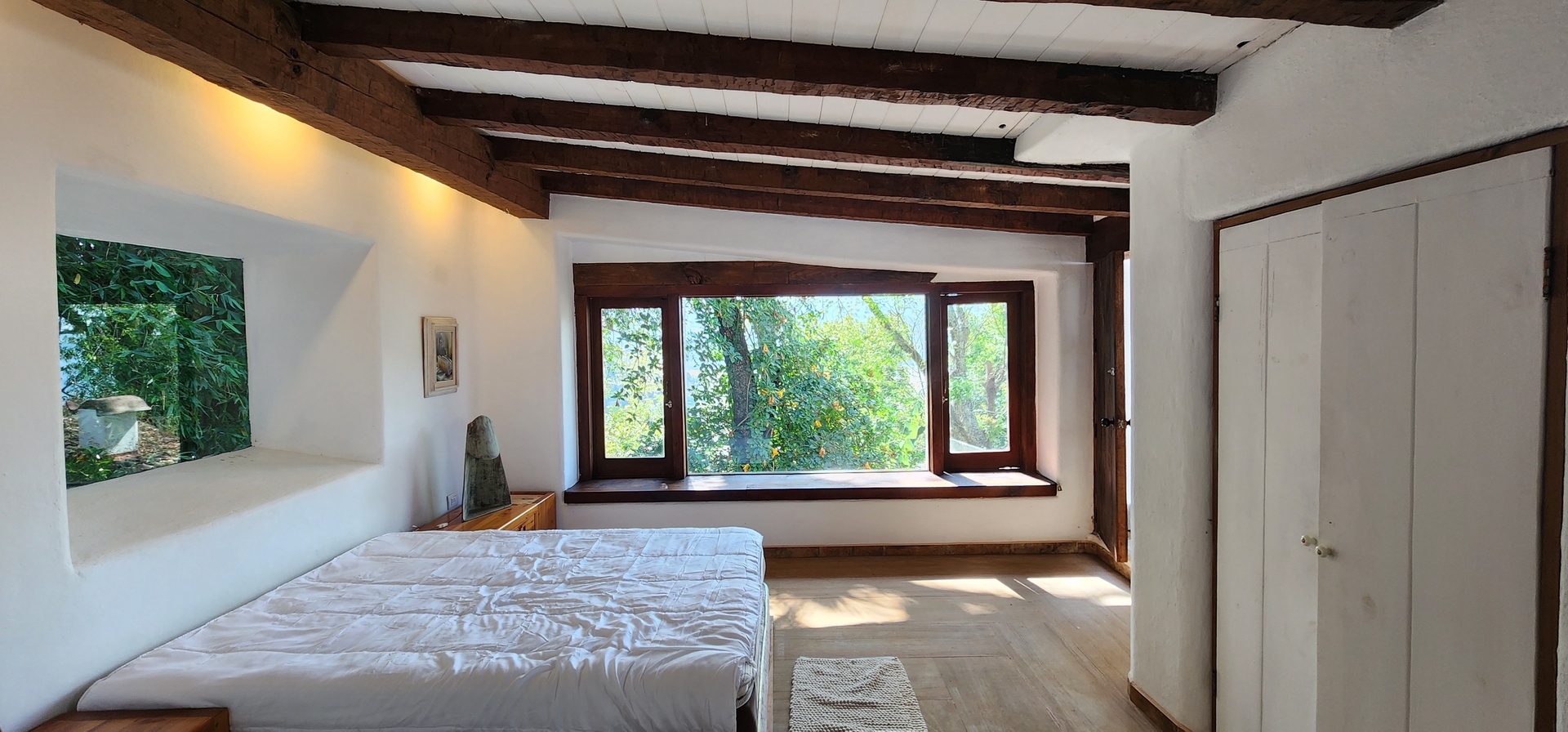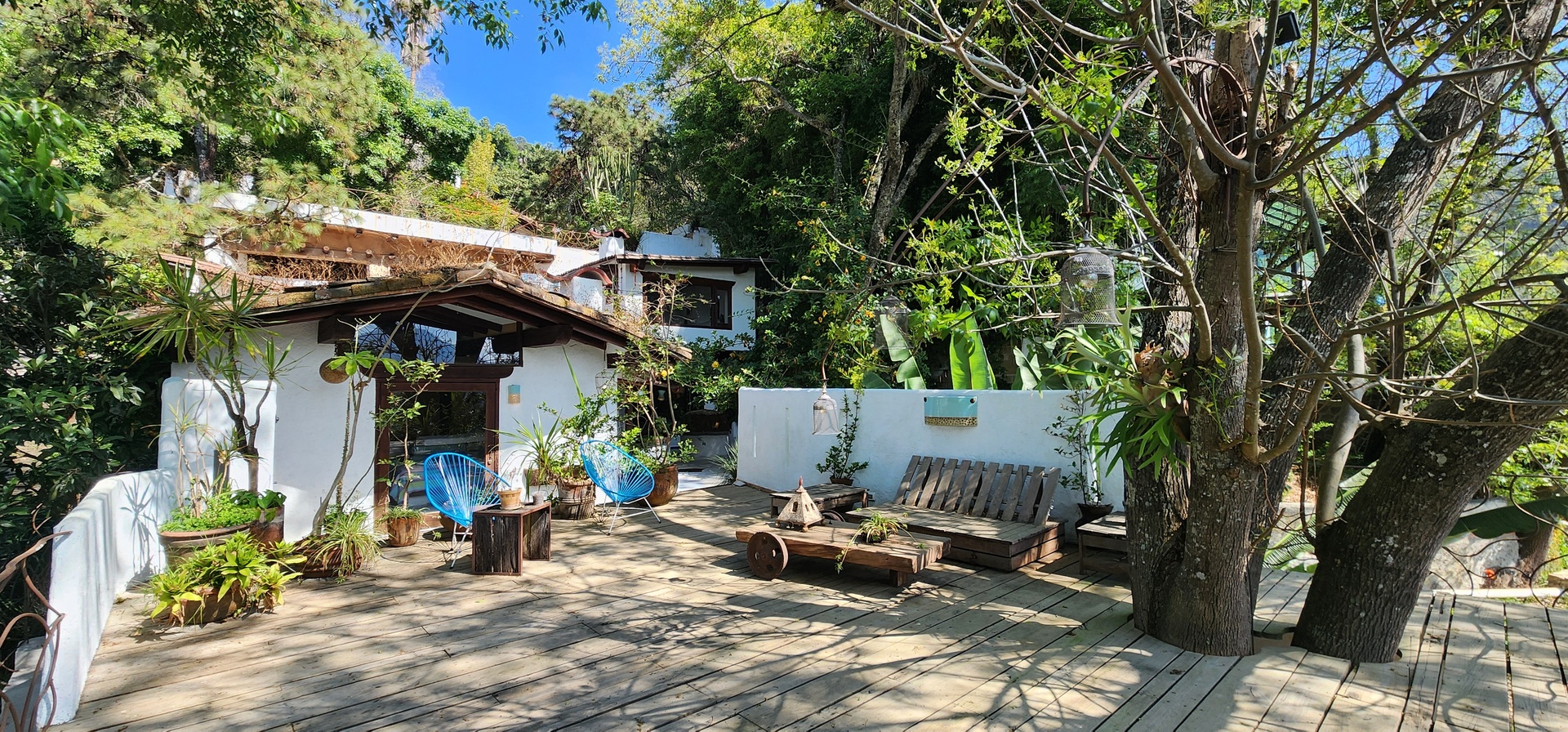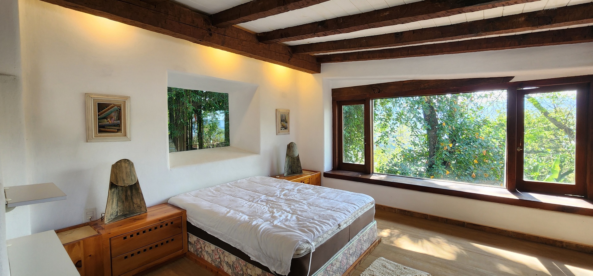 The property features two access points, covered parking for 3–4 cars, an independent service quarters, and two spacious terraces surrounded by a pleasant natural setting with partial lake views. Its location enjoys warm weather most of the year.
