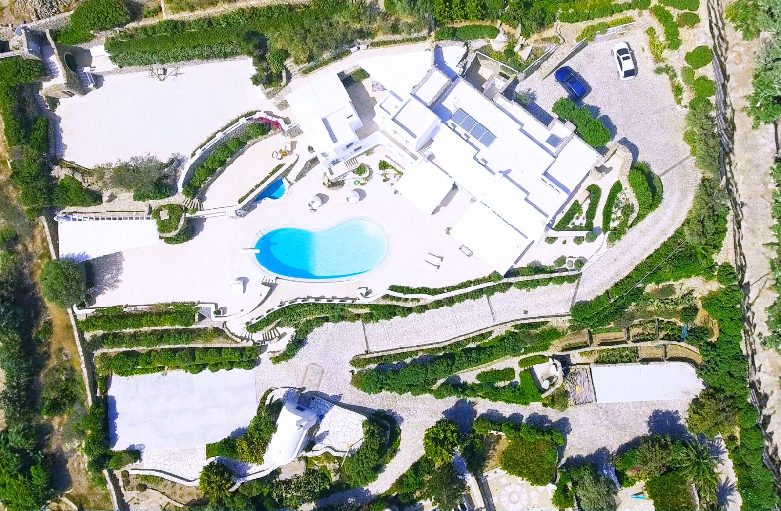 With endless ocean views to the south and east from its shaded pergolas and its 9 Bedrooms, all with ensuite bathrooms, the privileged guests will emerge into the stunning majestic Aegean light, delivered through landscaped gardens and natural vegetation.