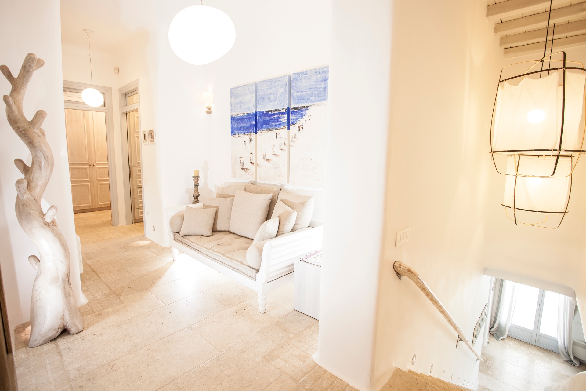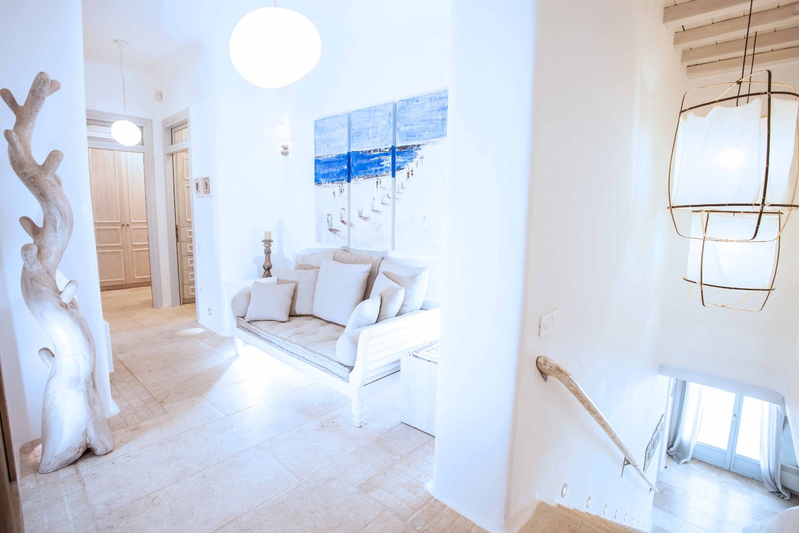 The essence of these bedrooms lies in their harmonious blend of modern comfort and traditional Cycladic charm. The interiors are adorned with subtle, earthy tones and textures that reflect the natural beauty of Mykonos, creating an atmosphere of calm and relaxation. The thoughtful use of space and light enhances the serene ambiance, inviting guests to unwind and rejuvenate in their personal retreat.