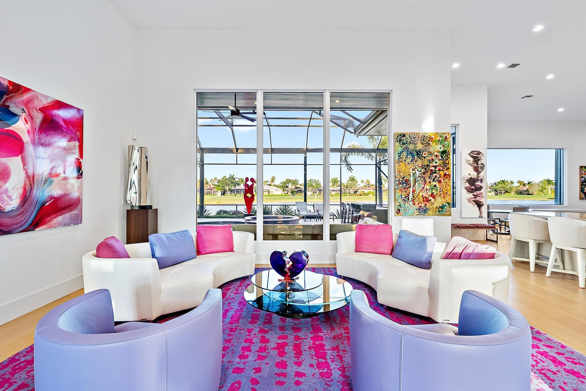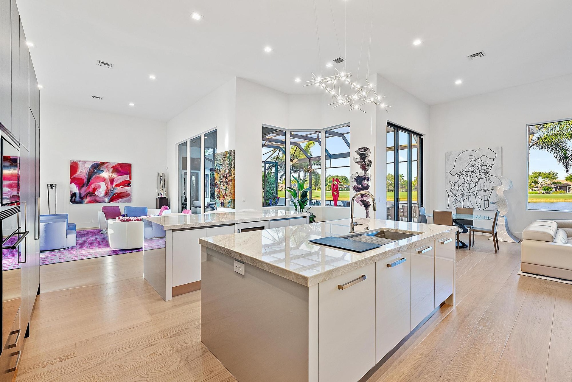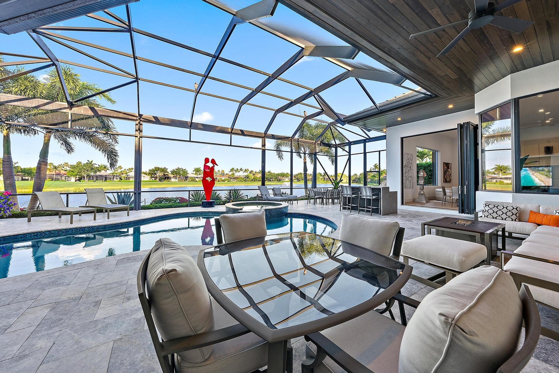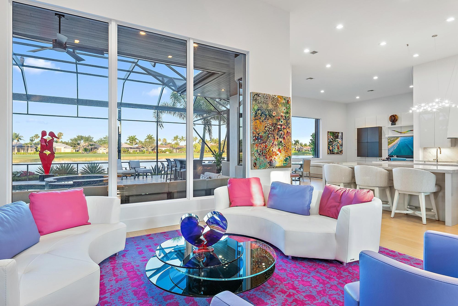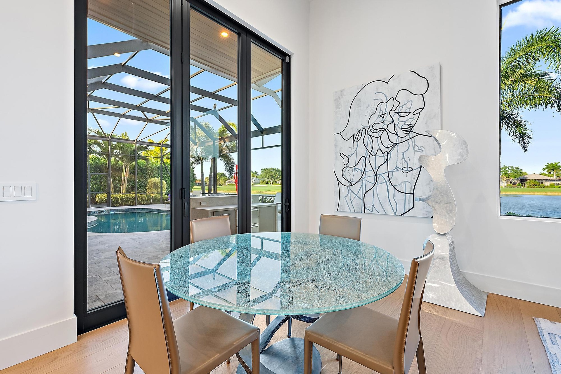This residence is being offered fully furnished (artwork excluded) with an extraordinary collection of designer pieces primarily sourced from Roche Bobois, along with premium outdoor furnishings by Brown Jordan. The primary suite includes a king-size bed with a Sleep Number premium mattress, and two golf carts--EZ-GO and Club Car--are included for effortless community living.
