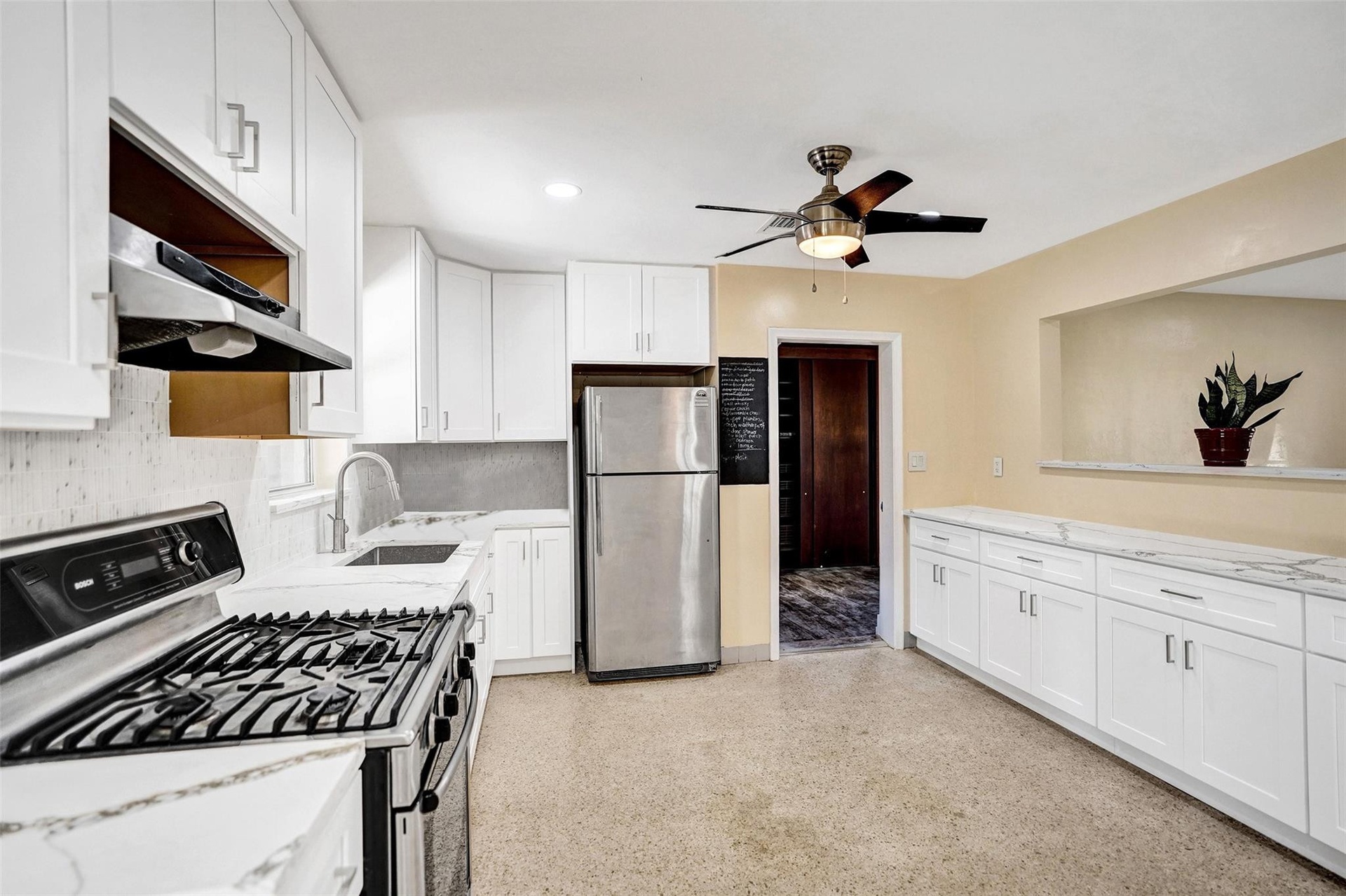 LOCATION! This stunning 3-bedroom, 2-bath home with large screened patio entry is situated on a massive 13,373 sq. ft. lot (over 1/4 acre) in the highly sought-after 'Osceola Park' neighborhood of Delray Beach. Walking distance to beach and vibrant downtown Delray where you’ll enjoy easy access to dining, entertainment, and shopping. This single-story home features a split bedroom with newly remodeled primary bathroom with ensuite front-loading washer/dryer. Open floor plan with terrazzo floors throughout, hurricane impact windows, newly remodeled kitchen with stainless steel appliances, a gas stove. The large, fenced yard offers plenty of play area for the family and covered patio—perfect for entertaining or relaxing. No HOA! Don’t miss out on this incredible home in a prime location!