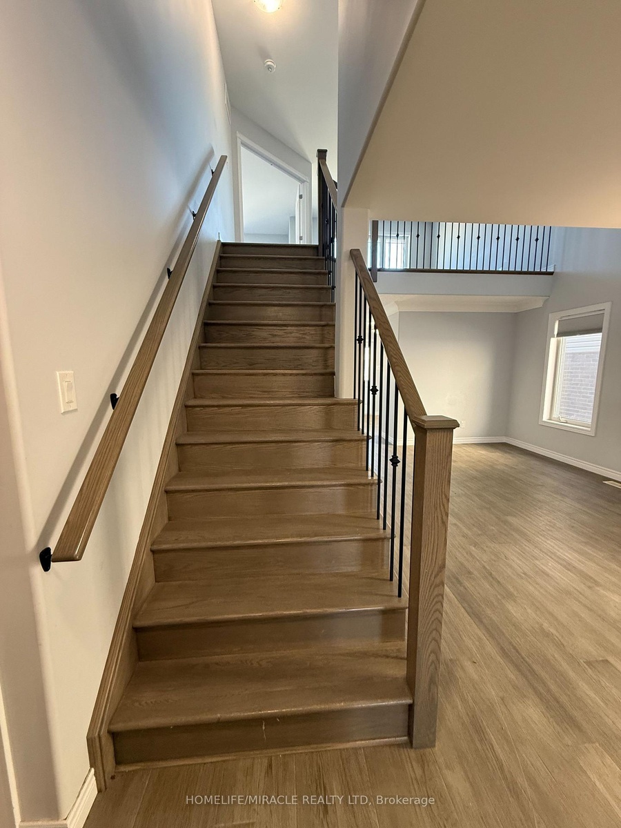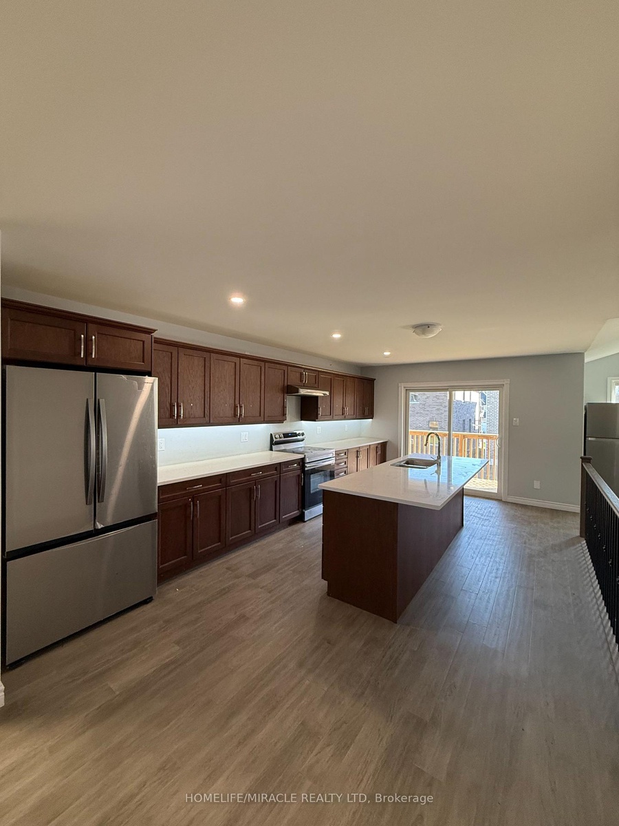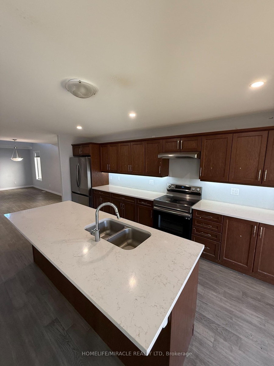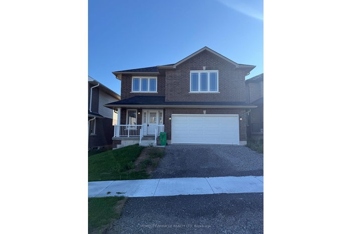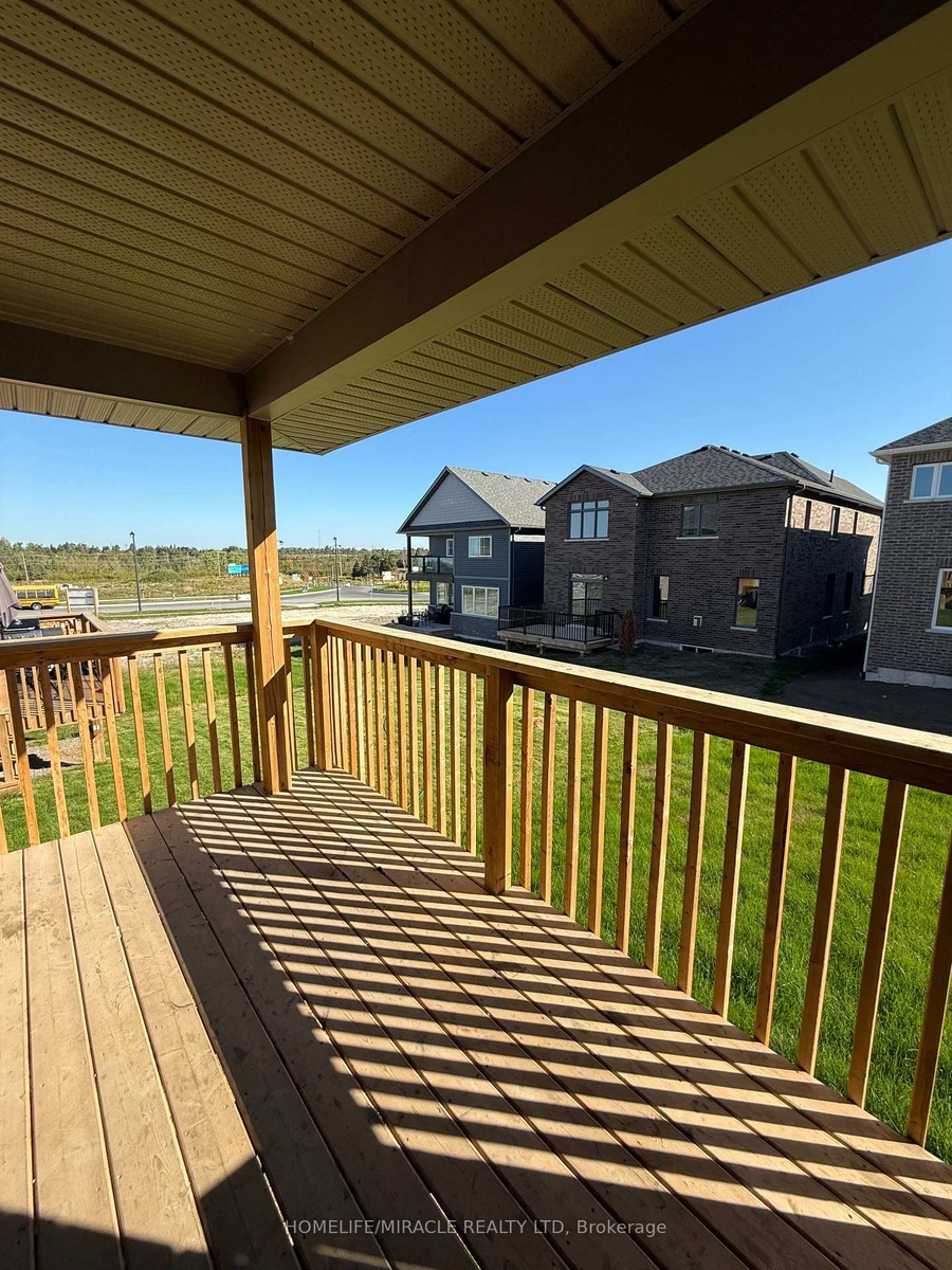 Beautifully crafted all-brick detached residence with nearly 3,600 sq. ft. of living space. This home showcases 5 generously sized bedrooms, including a primary suite with a walk-in closet and a 4-piece ensuite. Designed for modern living, the main floor features 9' ceilings, hardwood floors, and an elegant oak staircase. The chef-inspired kitchen offers quartz countertops and opens to a spacious great room with a gas fireplace. Step out from the dining area onto a 10' x 12' deck, perfect for gatherings. Comes complete with stainless steel appliances-fridge, stove, dishwasher, range hood, washer & dryer. Conveniently located just 45 minutes from the GTA with quick access to Highways 115, 401 & 407. Don't Miss out!