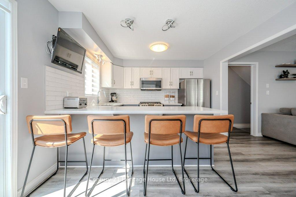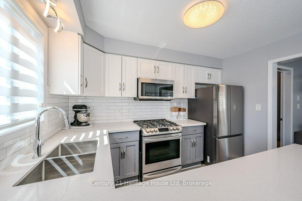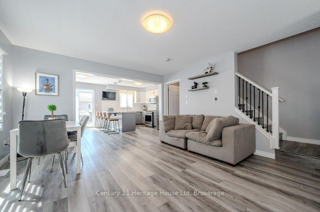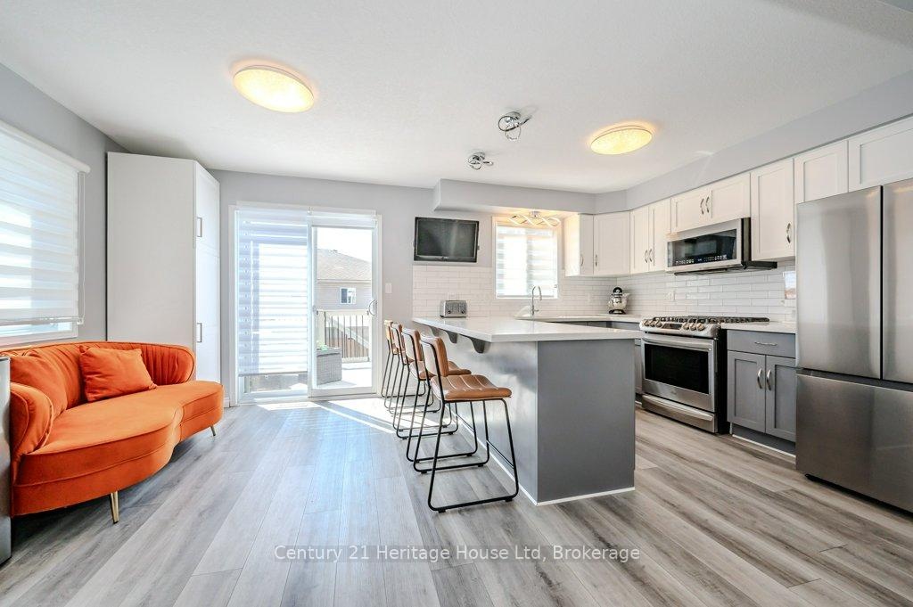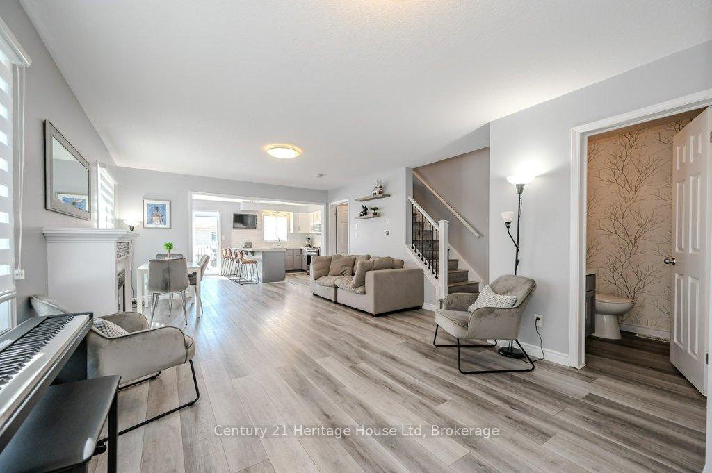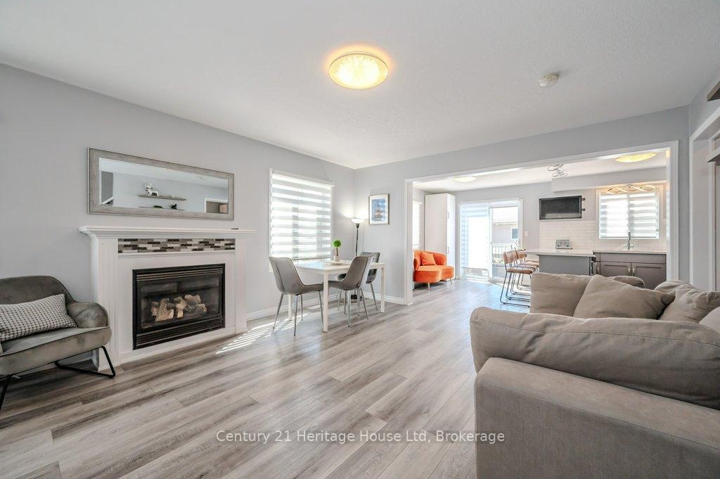 ENTIRE HOME, INCLUDES UTILITIES, MOSTLY FURNISHED - End unit freehold townhome. Just a breath of fresh air! That's how you will feel as you enter into the foyer of this family home. A Foyer with a double closet and separated from your main living space making it easy to keep all the back packs, shoes and jackets where they need to be. Entering into the expansive 23 foot Living room with gas fireplace, you will appreciate having all the space you need to accommodate your busy day to day life. The Kitchen offers a dining space and walk out to the bright and inviting deck space which overlooks the yard. The Kitchen boasts a gas stove, all stainless appliances and attractive quartz counter and updated lighting. No carpet in this home making it easy to maintain! Upstairs there are two nicely sized bedrooms rooms plus a large Primary with walk-in closet and gas fireplace with seating area. There is a semi ensuite family bath with double sinks! Also on this level is an office loft area making working at home easy. The basement offers a laundry closet, another den/office space and a large recreation room area and a 3 piece bathroom. 3 parking spaces included, two in the drive way and one in the garage. Don't forget the deck area and private yard!