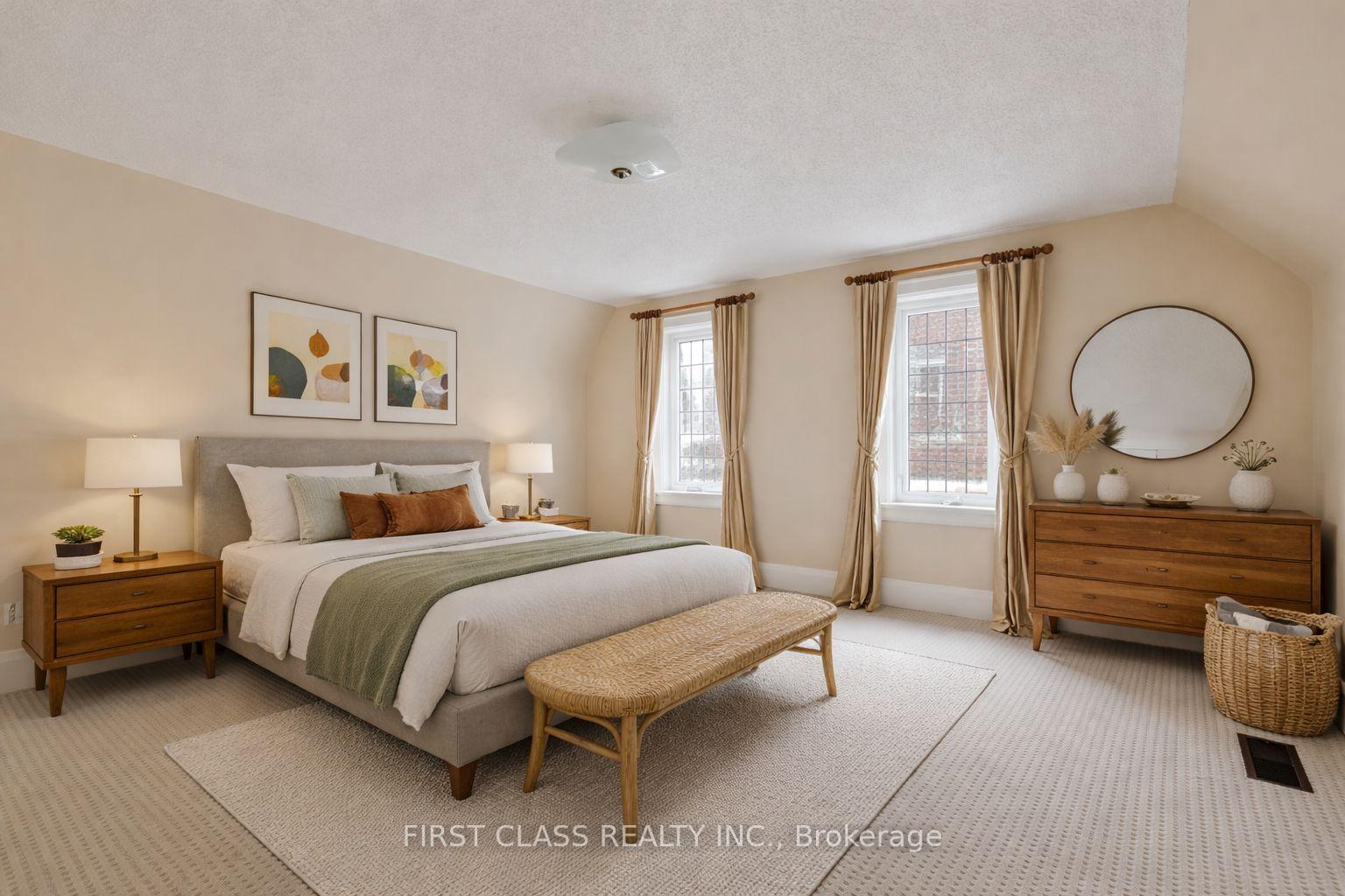 Experience a distinguished offering in the heart of Toronto's prestigious North Rosedale enclave. Defined by its elegant façade and prominent roofline, this residence blends enduring architectural character with thoughtful modern enhancements, creating a warm and refined living environment. Encompassing approximately 3,648 sq ft above grade plus an additional 1,525 sq ft on the lower level, the home is positioned on a picturesque, tree-lined street within close proximity to highly regarded schools including Branksome Hall, Whitney, and OLPH. Respectfully updated to honour its 1920s heritage, the main level presents expansive principal rooms ideal for entertaining, a sun-filled family room overlooking the beautifully landscaped 46.67 x 140 ft lot, and an updated kitchen with a welcoming breakfast area. The upper level features a serene primary retreat with a spa-inspired ensuite and generous storage, along with a stunning home office framed by oversized windows. A fully finished lower level provides versatile space for recreation, play, and a wine cellar, while the private backyard offers a tranquil urban oasis for relaxed summer evenings. **Some Virtually staged images are provided for illustrative purposes only. Furniture, décor, and finishes shown may not reflect the property's current condition.**