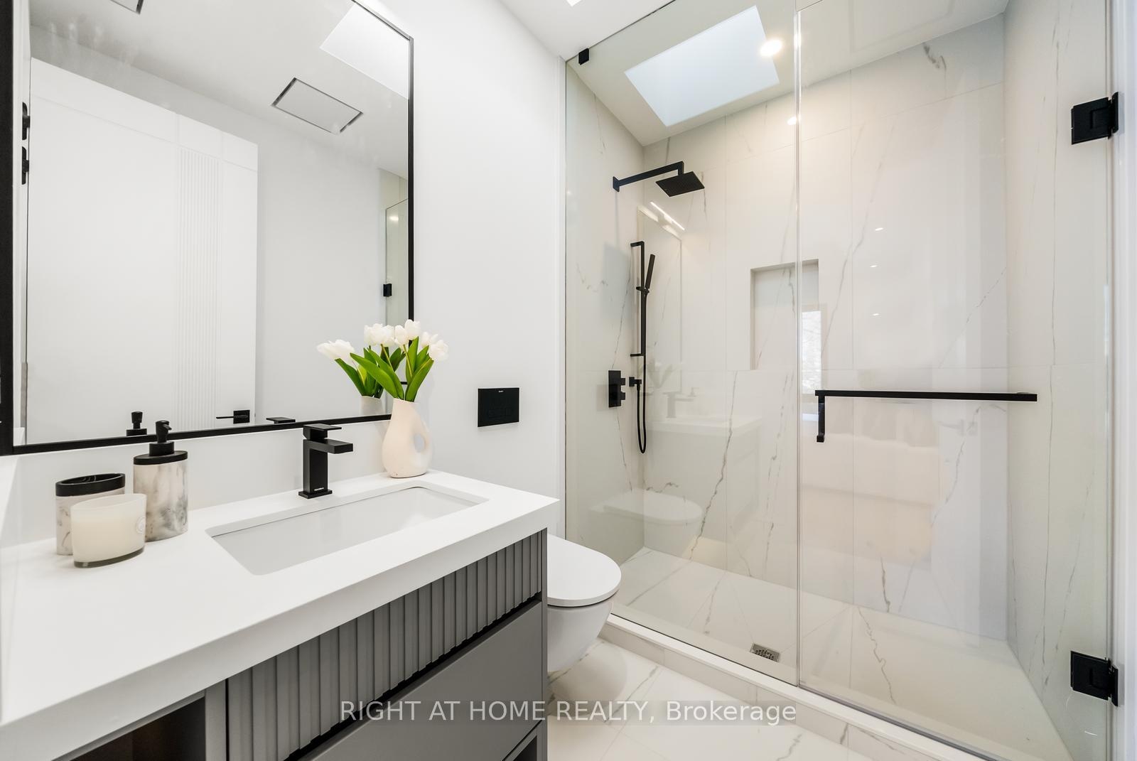 Welcome to 74B Rathnelly Ave - a brand-new built 2025, never-lived-in, custom-built luxury home in the prestigious Republic of Rathnelly, one of Toronto's most in-demand neighbourhoods. Steps to Yorkville and close to some of Canada's top private and public schools, this is a truly rare offering with exceptional design, craftsmanship, and high-end finishes throughout.Featuring German-imported Schüco aluminum windows and doors with triple-glazed glass, wide-plank white oak flooring, and a sleek trimless modern design with drywall-groove detailing. Impeccable interior detailing includes custom wall paneling and millwork, a statement mono-beam staircase, glass railings throughout, and upgraded strip lighting/fixtures. Chef's kitchen with custom-painted cabinetry, premium Sub-Zero & Wolf appliances, and natural stone countertops including Super White. Natural stone carries throughout the home (vanities, basement bar, fireplace), highlighted by a dramatic triple-sided marquee fireplace. Spa-inspired bathrooms feature CariMali Italian fixtures and wall-hung Duravit toilets, plus Italian tile and slab finishes with a strong focus on the Italian-slab basement.Enjoy a two-level, double-height heated basement with a large rec room and bar area. The exterior impresses with high-quality linear brick wrapping the sides/rear/walkout, extensive interlock (including interlock driveway), and a standout snow-melt heated system in the driveway, front porch, heated garage area, rear walkout, and even select portions of the backyard for year-round comfort. Entertain on the composite deck and enjoy a large backyard rarely found in the area, complete with composite fencing for a clean, modern finish.Integrated heated garage (extremely rare in the neighbourhood), two furnaces + two A/C systems, high-efficiency spray-foam insulation, smart security/speaker system, central vacuum, and more - a true turnkey statement home in an A+ location.