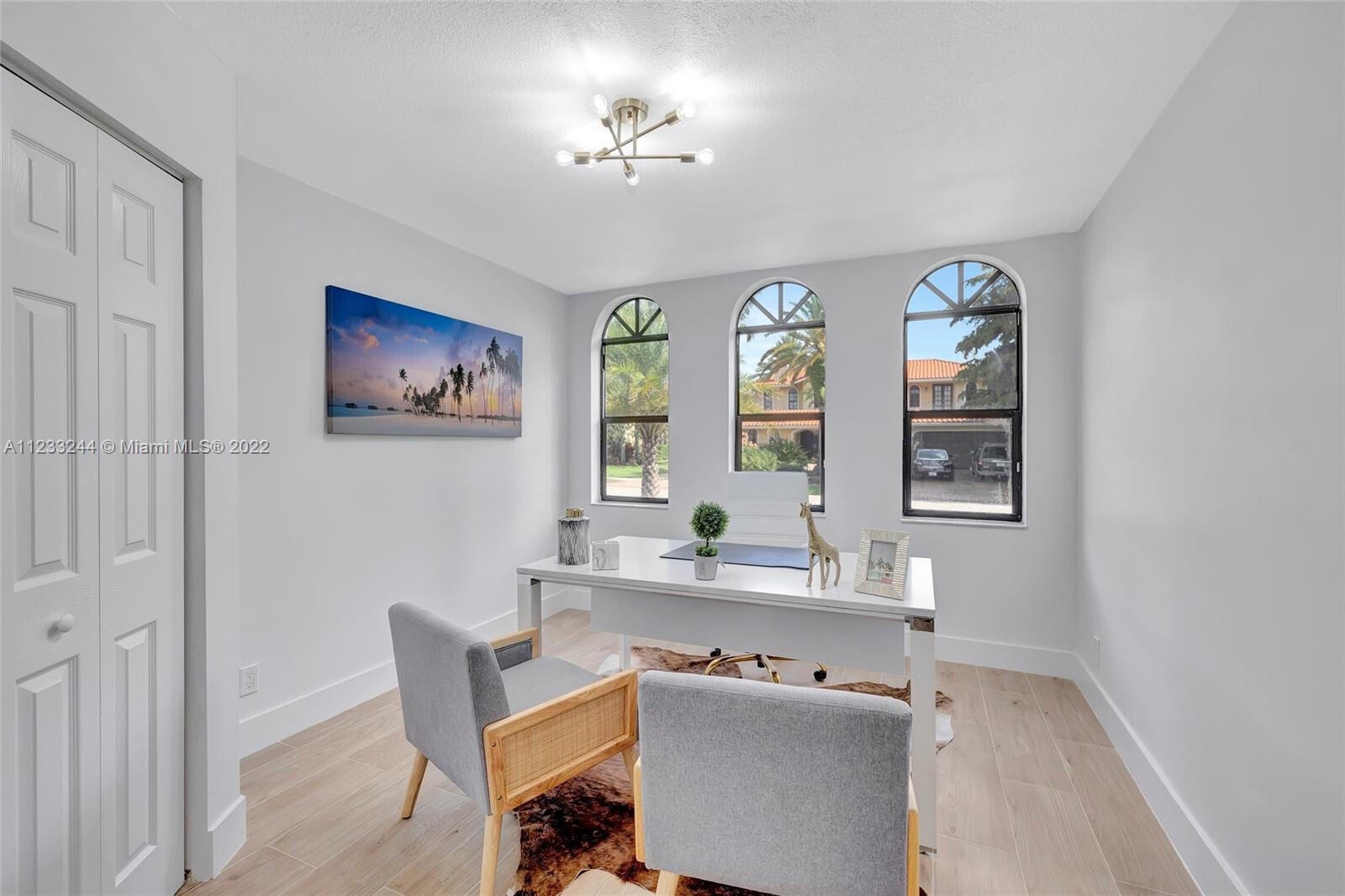 Located in the highly sought-after New Floresta community, this exceptional residence showcases timeless Spanish architecture and an upscale feel in the heart of East Boca. Perfectly positioned just minutes from world-class shopping and dining at Town Center at Boca Raton, with convenient access to I-95 and the Florida Turnpike, this home offers both luxury and location. This beautifully maintained 4-bedroom, 3.5-bath home features a desirable split-bedroom floor plan and is zoned for A-rated public schools, with premier private schools nearby. Soaring cathedral ceilings and abundant natural light enhance the open kitchen and living areas, while authentic character shines through with Spanish tile flooring, dramatic wood beams, a wood-burning fireplace, and distinctive tile accents.