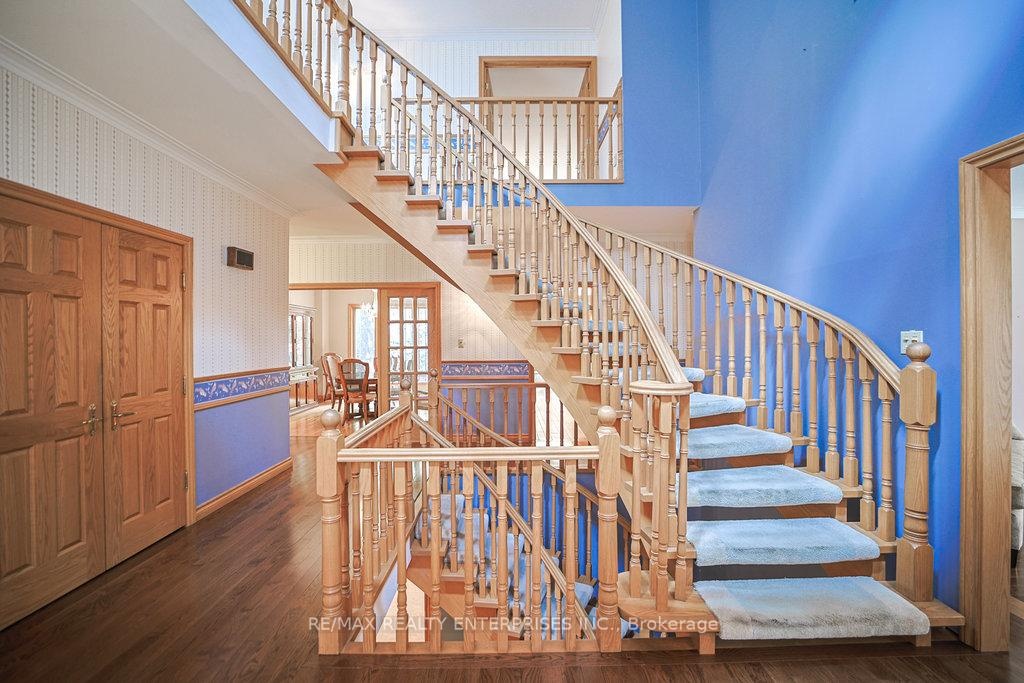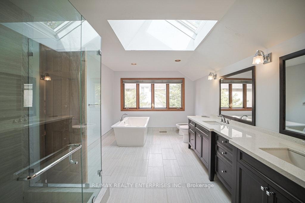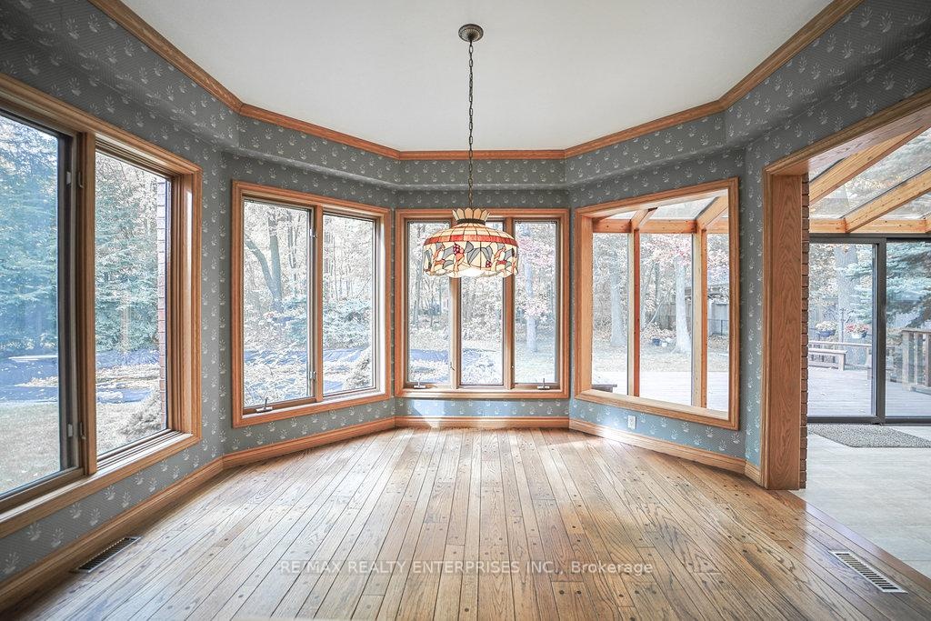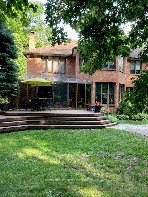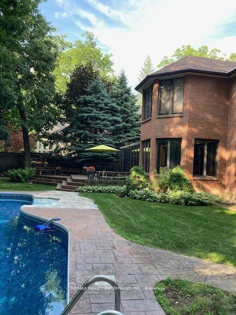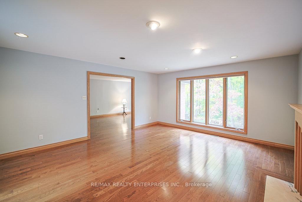 Lorne Park At It's Finest! Nestled in the heart of the prestigious White Oaks of Jalna, this remarkable property sits on one of the most coveted and majestic lots in the neighbourhood- a picturesque 100-by-270-foot setting surrounded by mature, towering trees. This custom built home by the original owners, offers approximately 4,250 sqft above grade plus a very generously sized finished lower level. The main floor features a spacious eat-in kitchen with a centre peninsula overlooking the inground pool and patio, seamlessly open to the inviting family room and a bright walk-out solarium. A formal dining room, separate living room, and updated powder room provide the perfect backdrop for entertaining. A large main floor office- or potential fifth bedroom - adds flexibility for today's lifestyle. Fine craftsmanship is evident throughout, with solid oak doors and flooring accenting the home's classic character. The primary suite impresses with a good-sized sleeping area, a large sitting area with cozy fireplace, a double-entry walk-in closet, and a spa-inspired 5-piece ensuite. All additional bedrooms are well-proportioned and filled with natural light. Convenient main floor laundry/mudroom and interior access to a triple car garage adds to the home's functionality. Additional features include two 100-amp electrical panels and location within the highly sought-after Lorne Park school district. Whether you choose to move in and personalize, restore and renovate, or build your dream home, this exceptional property offers an unparalleled opportunity to live on one of Lorne Park's most tranquil and private lots.