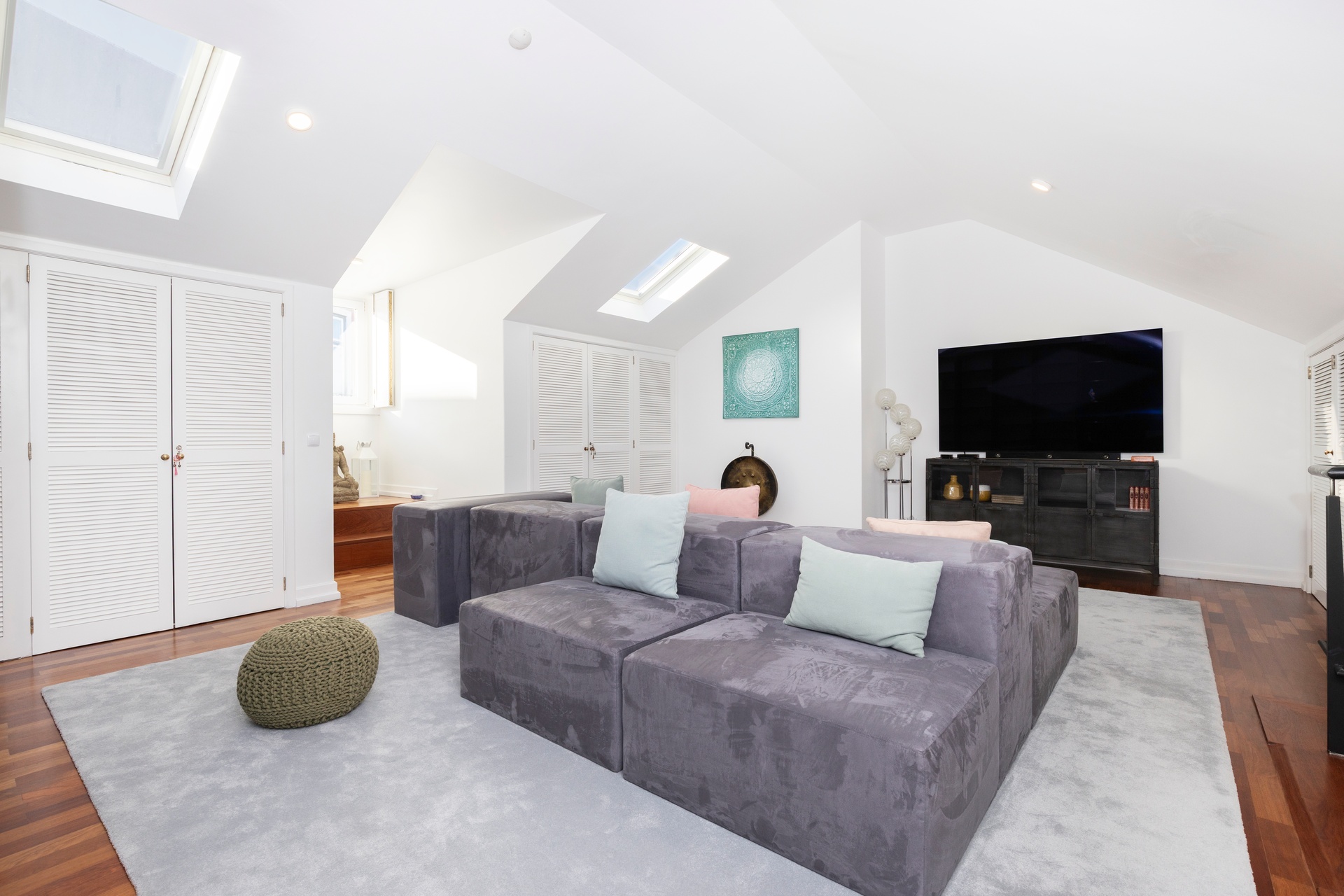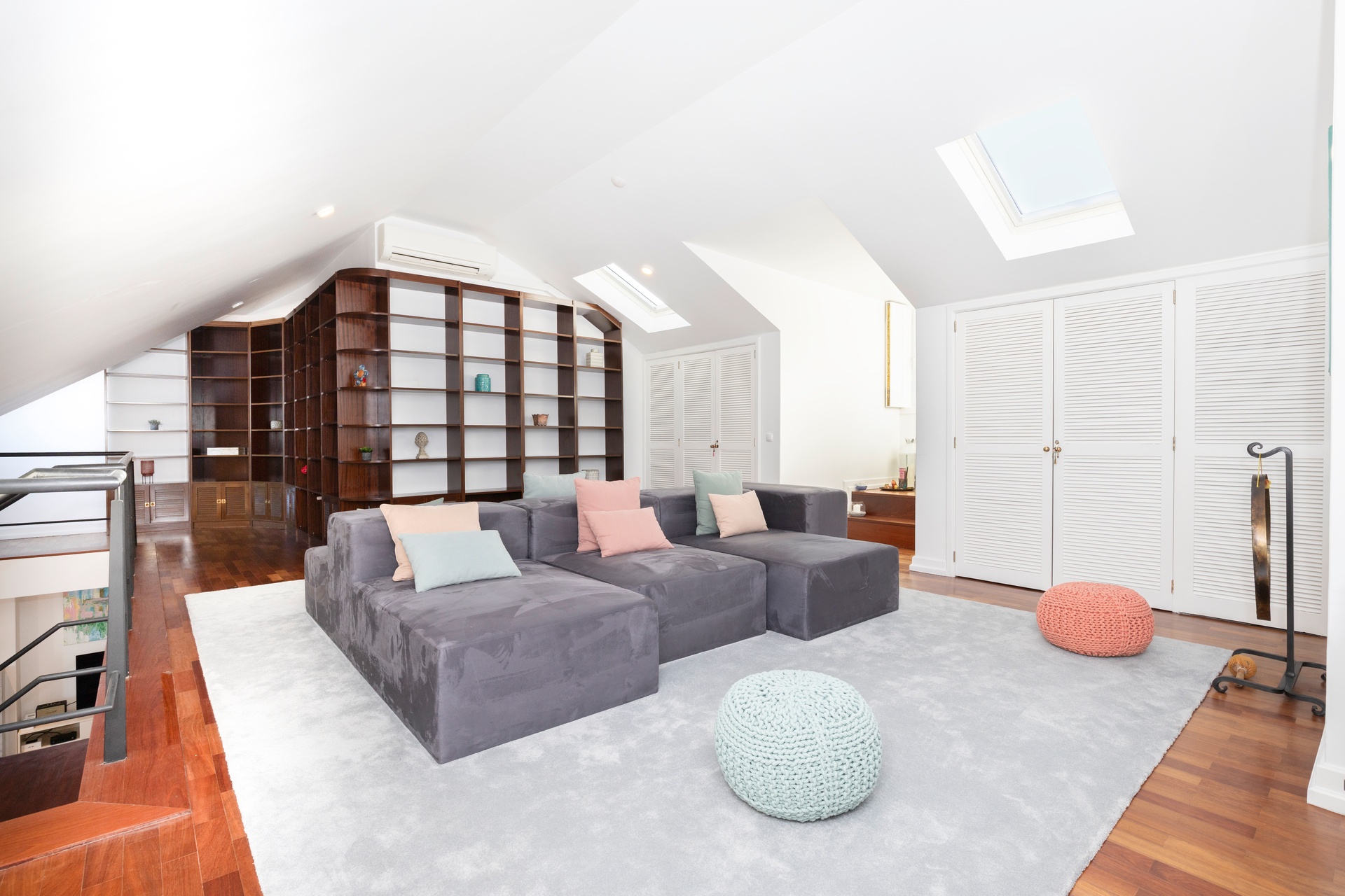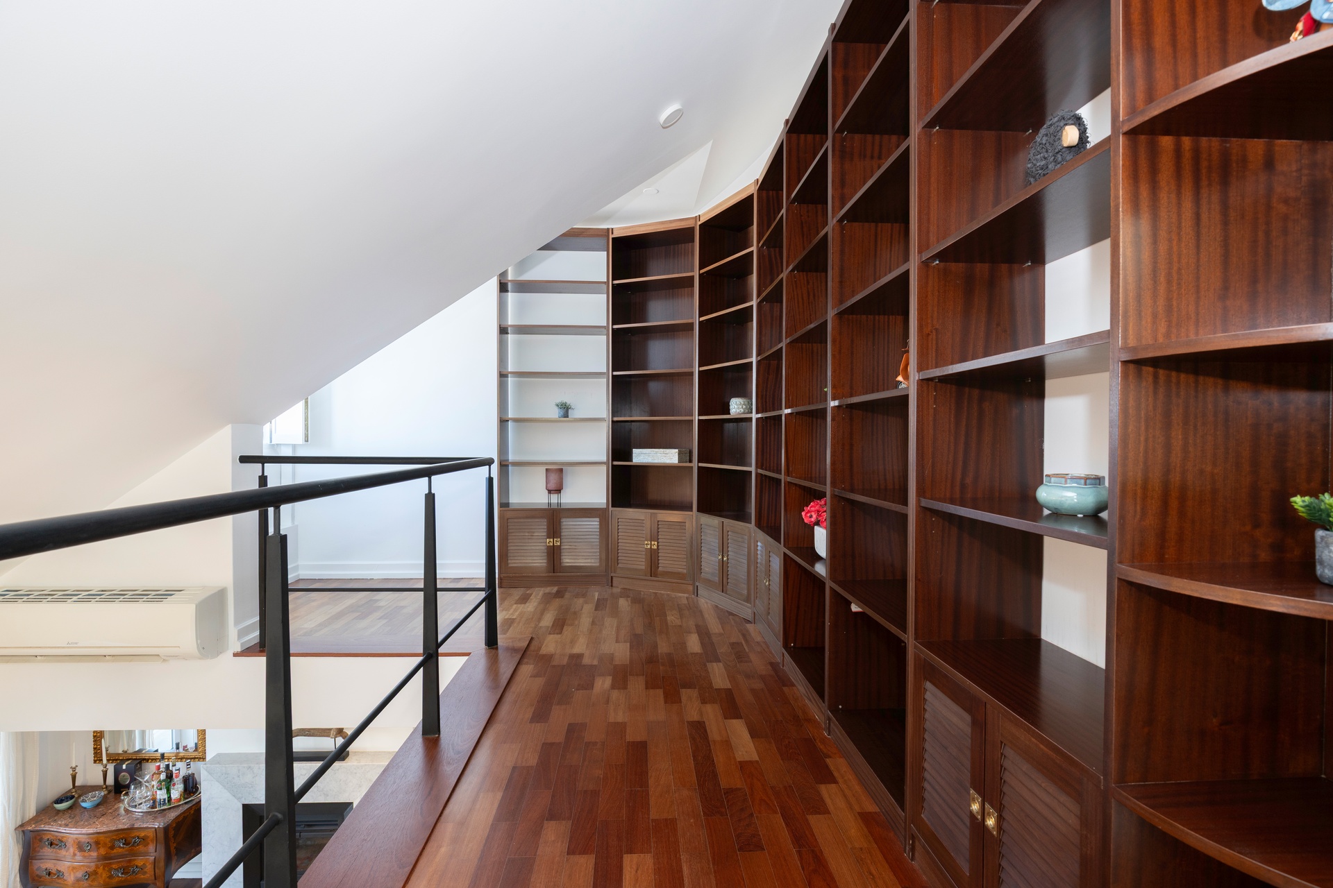 The mezzanine elevates the experience of the home, a generous and versatile space ideal for a TV lounge, reading area, office or relaxation zone. Discreet integrated storage solutions preserve the architectural harmony and sense of openness.