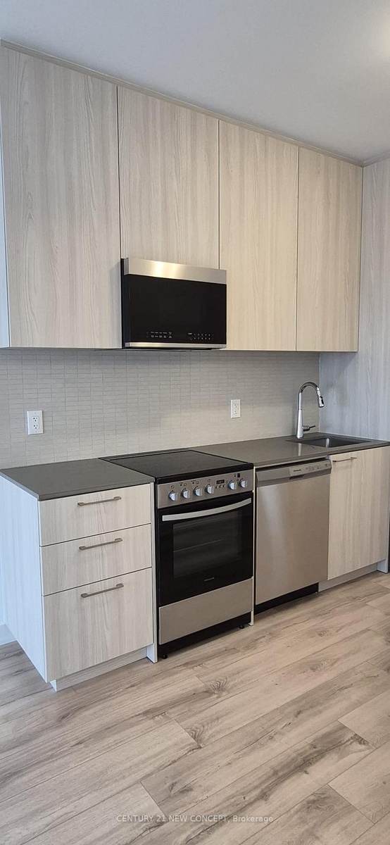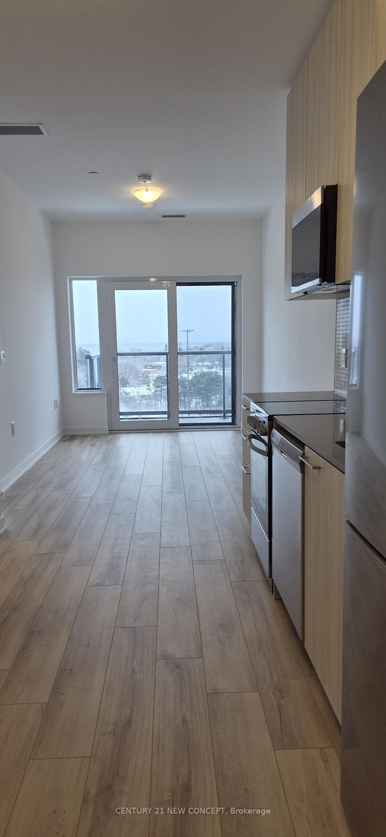Welcome to The Narrative - a never-occupied condo in Toronto's desirable Rouge community. This bright, open-concept suite features large windows, smooth ceilings, and a smart layout with walk-out to a private balcony. Has the option of coming furnished with a bedroom set - living room set, including a 52" TV. The modern kitchen includes quartz countertops, ample cabinetry, and brand-new stainless steel appliances. The spacious bedroom offers great storage, and the unit includes a contemporary 3-piece bathroom and in-suite laundry for added convenience. One exclusive parking space and one locker are included. Enjoy premium building amenities such as 24/7 concierge, fitness centre, yoga studio, co-working lounge, party and games rooms, children's play area, outdoor terrace with BBQ area, visitor parking, and fibre optic internet. Excellent location with quick access to Hwy 401, Rouge Hill GO, TTC transit, shopping, schools, and Rouge National Urban Park. Ideal for professionals or students seeking modern, convenient living - Live Where you're Inspired!