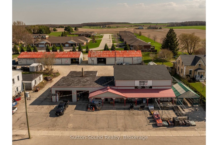 Position your business for success with this high-exposure commercial property on Highway 9 in Mildmay, Ontario. Currently operating as a well-established farm supply and retail store, this versatile property offers an exceptional combination of retail, office, warehouse, and storage space in a prime in-town location with steady highway traffic and easy access. The main building features 2,200 sq. ft. of bright retail space, complete with two private offices and a 2-piece washroom, providing an efficient and welcoming customer area. The second floor offers an additional 2,200 sq. ft. of office and storage space, including three offices, a conference room, a 2-piece washroom, and additional unheated storage - ideal for administrative operations or storage. Supporting the retail component is an impressive 3,250 sq. ft. warehouse with 14-foot ceilings and three overhead doors (12'x12', 15'x12', and 8'x12'), allowing for convenient shipping, receiving, and equipment access. Behind the main building are two additional storage structures measuring 30'x100' and 30'x90', both equipped with hydro, providing ample space for inventory, contractor use, or potential rental income opportunities. The property is fully serviced, with natural gas & municipal water and sewer, offering reliable and efficient utilities. Located in the heart of town with strong highway visibility and surrounded by residential neighbourhoods, this property presents outstanding flexibility for a wide range of commercial uses - retail, service, trades, warehousing, agricultural supply, or potential redevelopment (subject to approvals). An exceptional opportunity to invest, expand, or relocate your business in a thriving small-town community with built-in exposure and infrastructure already in place.