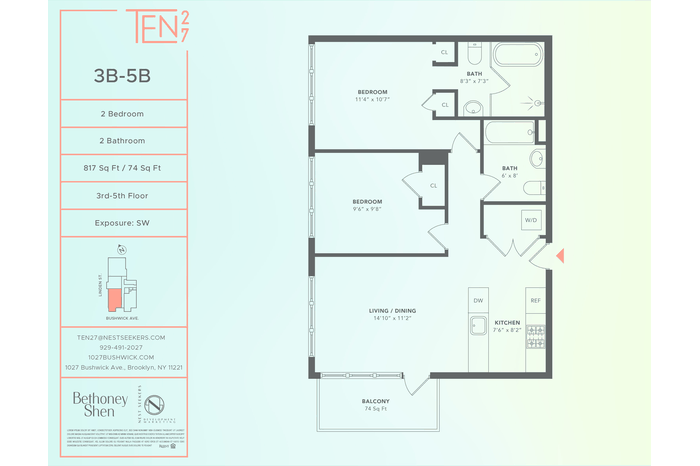 TEN27 is a striking contemporary addition to Bushwick, bringing a sense of refined modern living to one of Brooklyn’s most dynamic neighborhoods. Situated on a quintessentially picturesque, tree-lined stretch of Bushwick Avenue, the building blends clean architectural design with a calming, modern-zen atmosphere all while introducing an elevated luxurious, amenitized condo lifestyle to the future residents of this bespoke new 20-unit boutique condominium. Inside, residents enjoy beautifully crafted residences paired with thoughtful amenities, including garage parking, a state-of-the-art fitness center with NordicTrack equipment, a gracious arrival lobby with virtual doorman system for security and convenience, an elevator, and a gorgeous landscaped rooftop featuring BBQ grills, outdoor dining and lounge areas, panoramic Manhattan city skyline views, and private cabanas available for purchase.