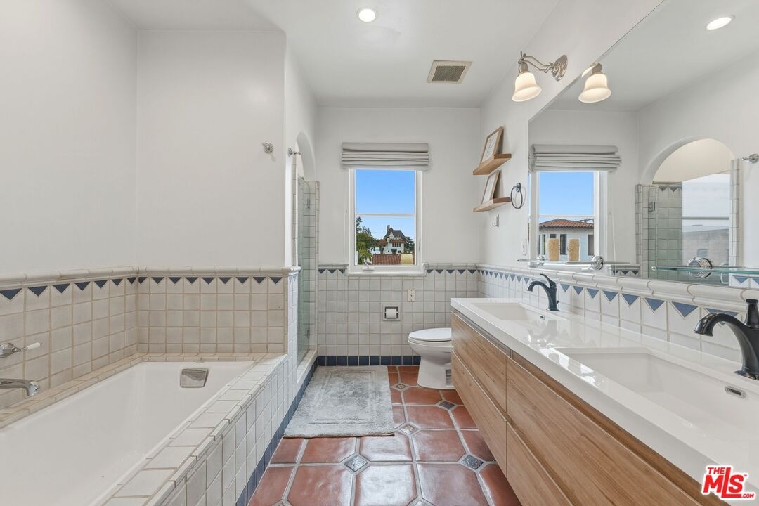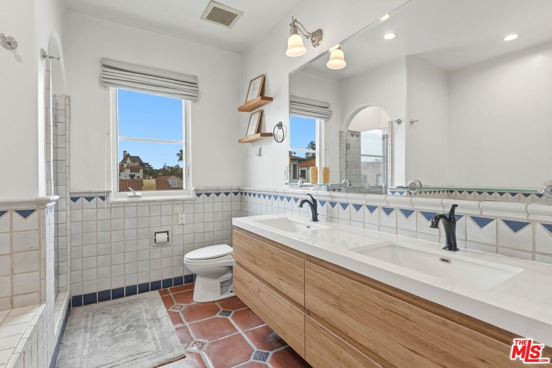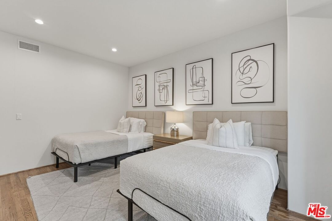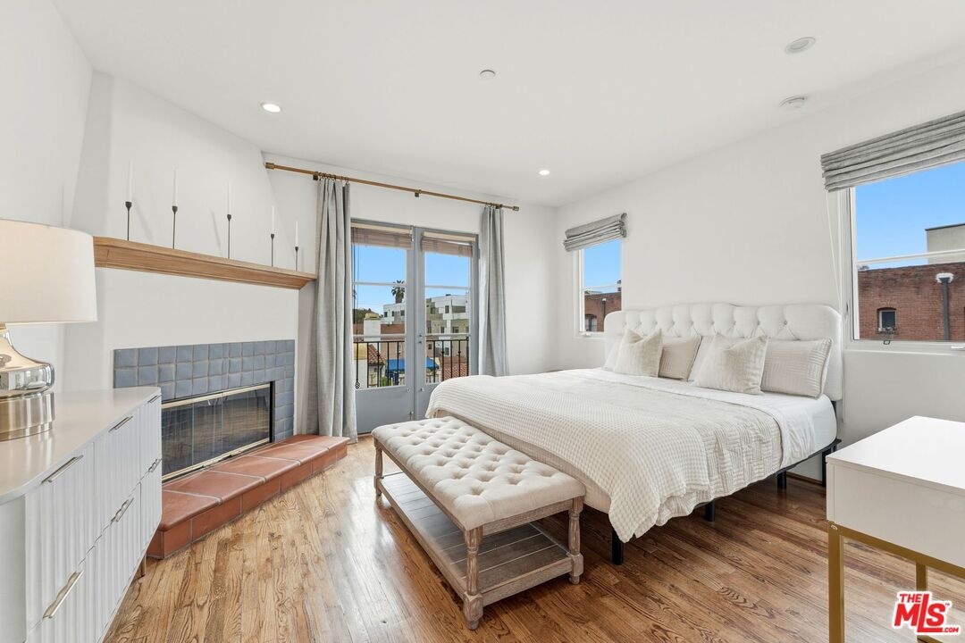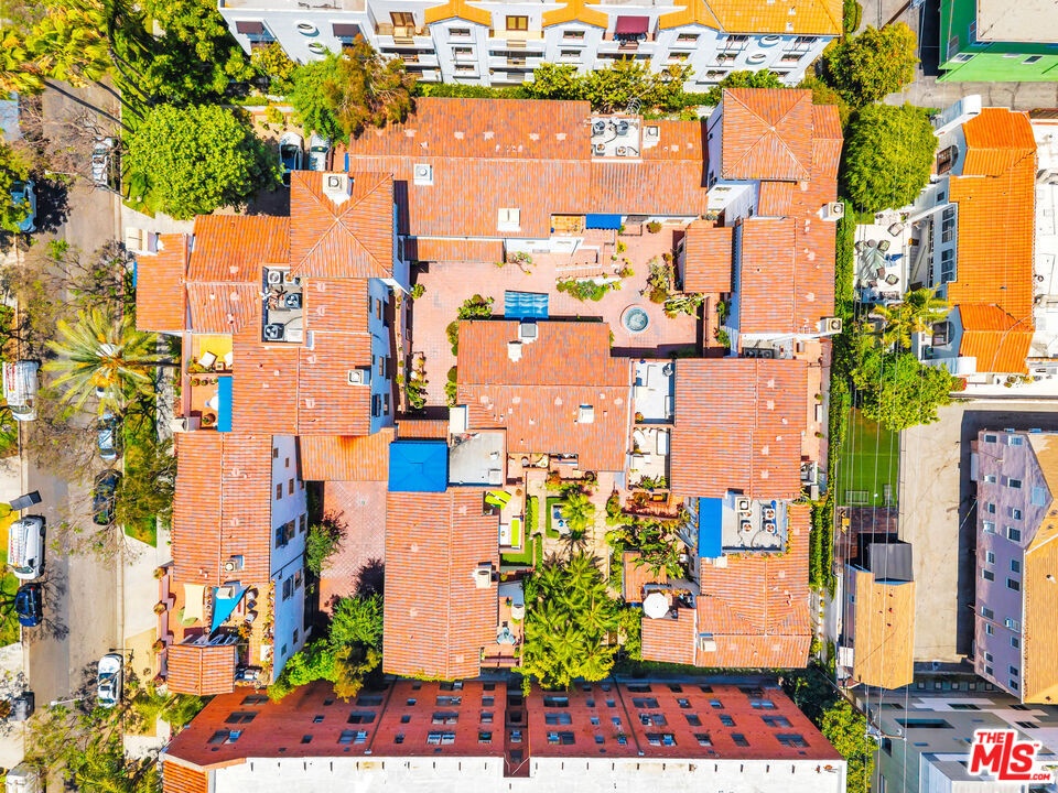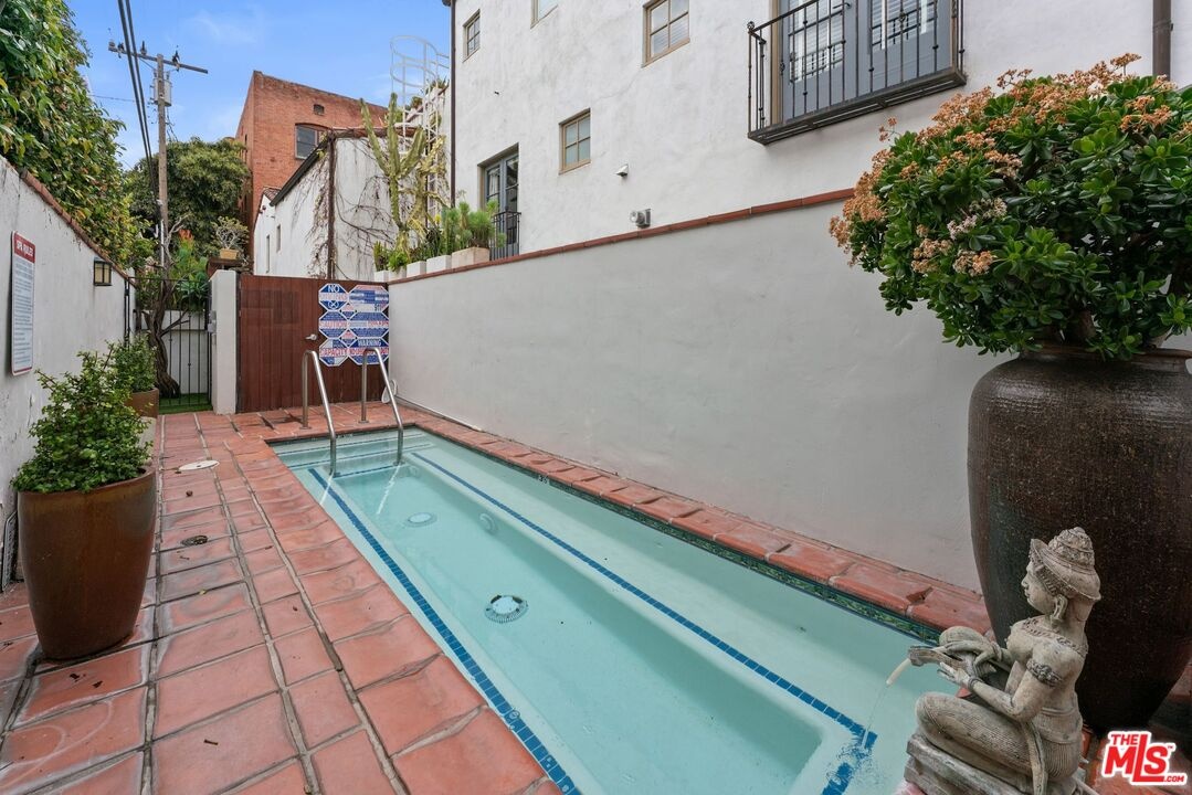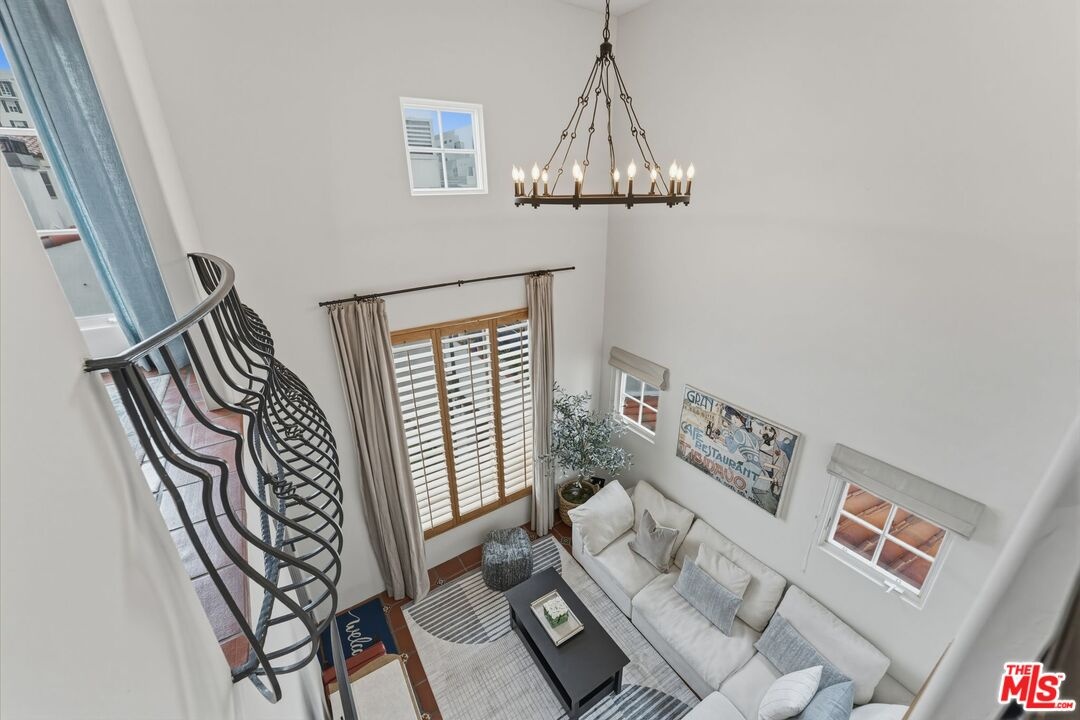 Romantic Spanish Revival inspired detached villa townhouse set within an intimate, architecturally rich Hollywood Spanish building, offering timeless elegance and Old Hollywood charm. Built in 2002, this refined residence features 3 bedrooms and 4 baths, blending classic design with modern luxury. A dramatic two-story living room and formal dining space anchor the home, highlighted by the soaring 25-foot ceiling that creates a grand yet inviting atmosphere. The residence is exceptionally light and bright, showcasing graceful arched doorways, expansive living spaces, original hardwood floors, and imported Italian tile throughout. The gourmet chef's kitchen is beautifully appointed with Viking stainless steel appliances, Calcutta marble countertops, custom tile backsplash, and a built-in wine refrigeratorideal for both everyday living and elegant entertaining. The top-floor primary suite serves as a private retreat, complete with a fireplace, oversized walk-in closet, and spa-inspired bath with dual vanities, deep soaking tub, and separate glass-enclosed shower. Extending from the suite is a private rooftop deck with stone-tiled balcony, offering breathtaking panoramic city and hillside viewsan exceptional indoor-outdoor escape rarely found in the area. A first-floor bedroom with its own private entry patio provides flexibility as a guest suite or refined home office. Additional highlights include generous storage throughout, a private storage room, in-unit laundry with side-by-side machines, and two side-by-side subterranean parking spaces. Recent upgrades include a new HVAC system with smart Nest thermostat and a newer water heater. Ideally located moments from the Chateau Marmont and the premier dining, shopping, and nightlife destinations of West Hollywood, this exceptional residence offers architectural beauty, privacy, and elevated city living. https://my.matterport.com/show/?m=vGPoBCzkJxP&mls=1