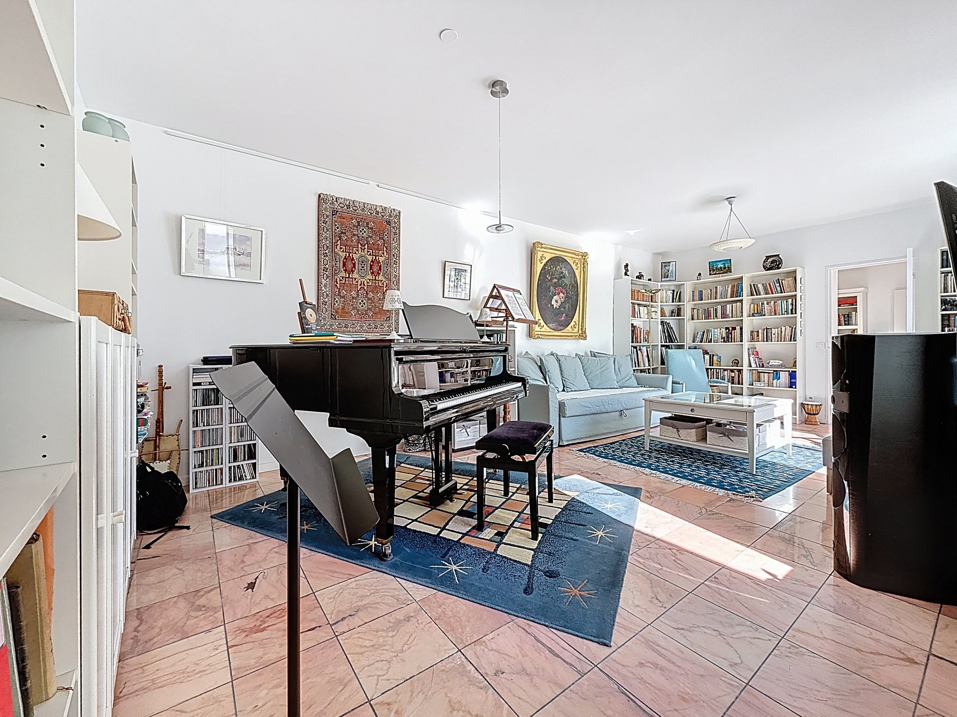 The ground floor features a modern family kitchen with adjoining dining area, complemented by a fully fitted office-library. The property also includes several reception rooms, providing generous entertaining space.