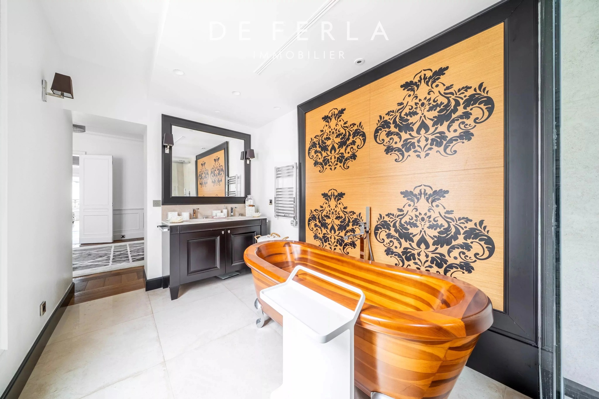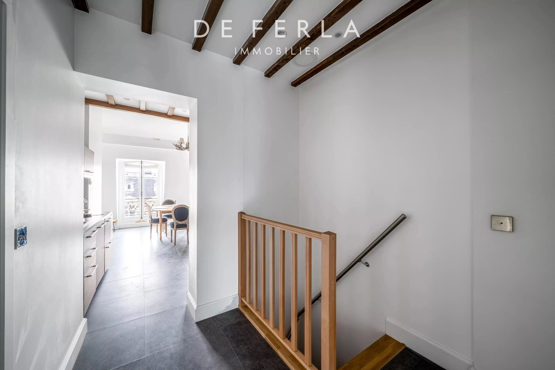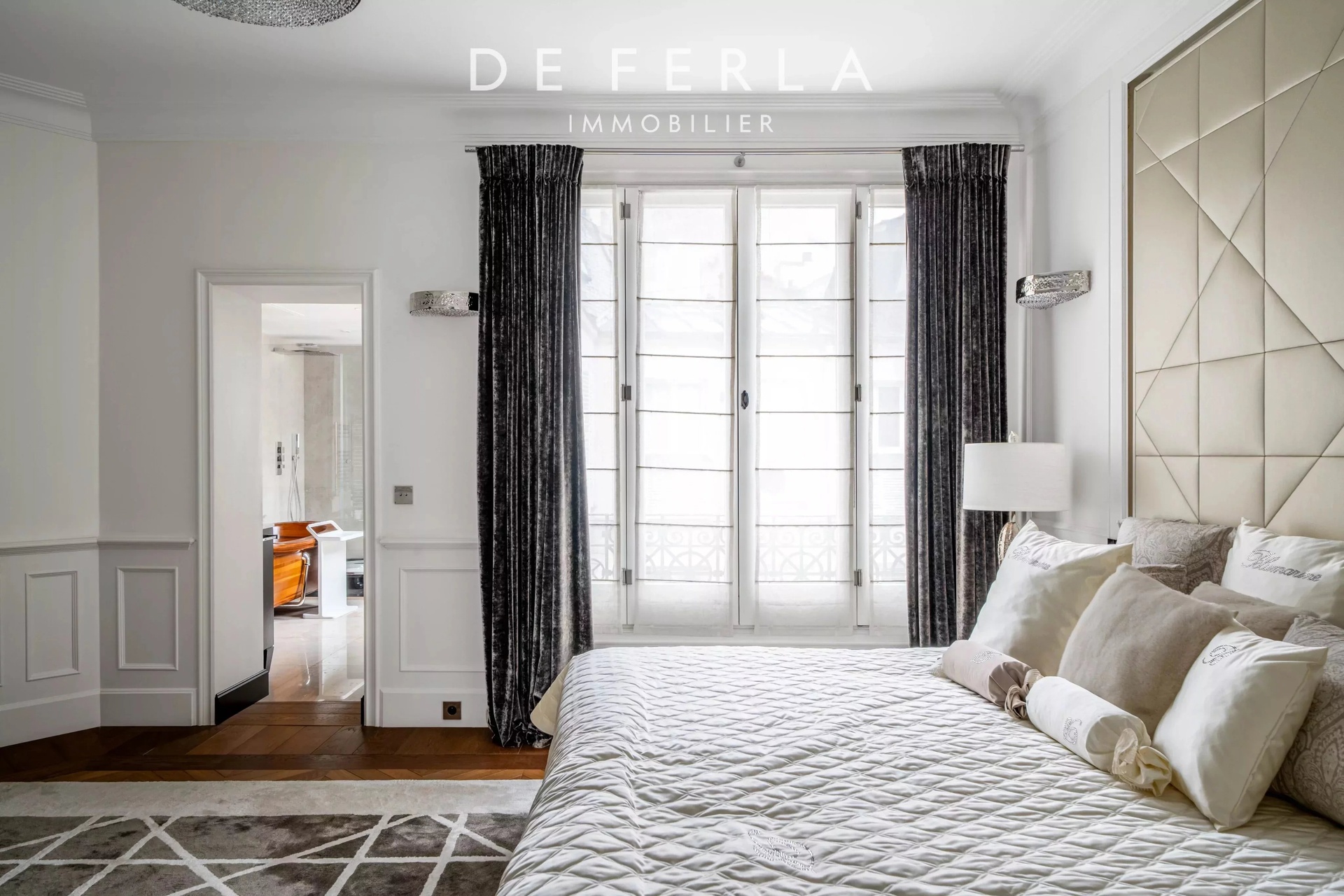 In an elegant Haussmann-style stone building, ideally located just a stone's throw from the George V and Avenue Montaigne, this high-floor apartment has been entirely renovated to a very high standard. It elegantly combines old-world charm with contemporary comfort: herringbone parquet flooring, refined moldings and a period fireplace enhance the volumes. The reception area features a vast living room bathed in light, opening onto a fully-equipped contemporary kitchen with premium finishes. A balcony extends the living space and offers an unobstructed view, rare in the area. The night space includes two bedrooms, each with its own bathroom, and a custom-made dressing room. Upstairs, a bedroom, a laundry room and the mezzanine accommodate an additional bedroom, offering a functional family layout while retaining a refined, uncluttered aesthetic. A rare property in one of the most sought-after locations in the Golden Triangle.