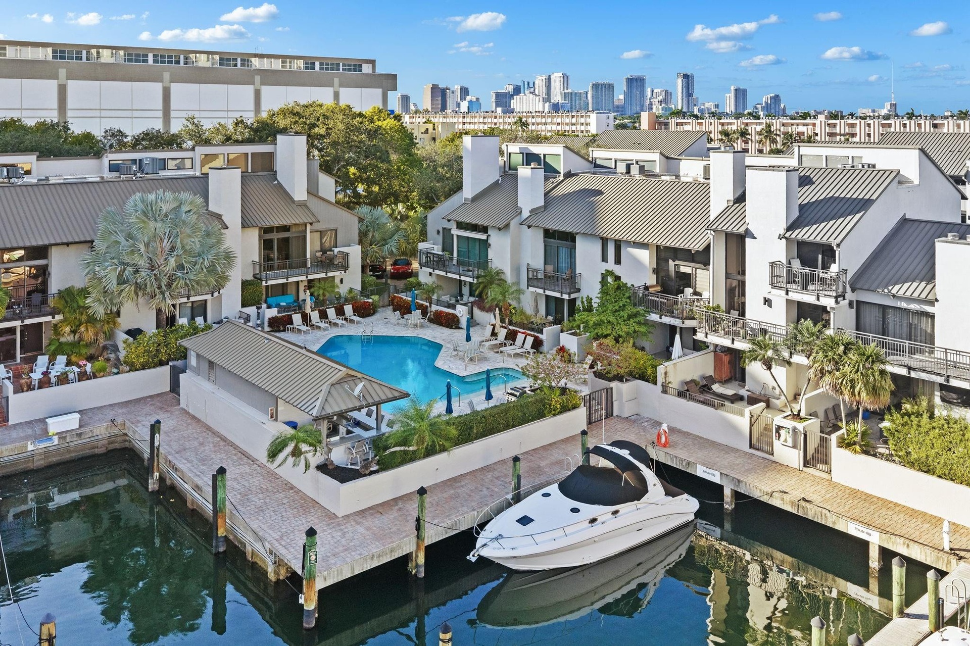 METICULOUSLY RENOVATED LARGEST MODEL: 2,813 SF VILLA A, 3 BDRMS, 3.5 BATHS TOWNHOME W/ELEVATOR & 2-CAR GAR W/LARGE POOLSIDE PATIO AT PORTSIDE YACHT CLUB, A GATED HIDDEN JEWEL OF 40 TOWNHOMES. A FEW MINUTES TO OCEAN INLET, PORT EVERGLADES, BEACH, LAS OLAS BLVD, FT LAUDERDALE AIRPORT, DINING/SHOPS ON SE 17TH ST & DOWNTOWN FT LAUDERDALE. DOCK AVAILABLE FOR RENT FROM A NEIGHBOR AT PORTSIDE FOR UP TO A 42 FT YACHT @$1,000/MO FOR 6 MO(S) AT A TIME, PD UP FRONT. 500 FT AWAY IS THE PORT MARINA W/DRY DOCKS TO RENT OR BUY FOR UP TO A 45 FT YACHT & NEW F3 MARINA NEARBY OFFERS DRY DOCKS TO RENT FOR YACHTS UP TO 43 FT. ADJACENT HILTON MARINA HAS DOCKS FOR RENT FOR LARGER YACHTS. THIS QUALITY-DRIVEN RENOVATION WITH HIGH-END MATERIALS AND CRAFTSMANSHIP SET THIS RESIDENCE APART WITHIN PORTSIDE YACHT CLUB. 8A OCCUPIES A UNIQUE NICHE: THE COMMUNITY'S LARGEST FLOOR PLAN, PAIRED WITH A RARE COMBINATION OF LUXURY RENOVATION, HARBOR AMBIANCE, AND EFFORTLESS POOL-FRONT LIVING.THIS 3-LEVEL TOWNHOME WITH ELEVATOR AND TWO-CAR GARAGE OVERLOOKS THE POOL AND THE HARBOR BASIN AND IS ADJACENT TO THE HILTON MARINA TO WALK TO, WITH DINING VENUES SUCH AS OLIVE & SEA RESTAURANT WITH PANORAMIC VIEWS OF THE INTRACOASTAL WATERWAY, THE OCEAN AND FORT LAUDERDALE, HAS DOCKAGE FOR LARGER YACHTS, AND ALSO PROVIDES YOU WITH MANY STROLLS OF THE YACHT-STUDDED INTRACOASTAL WATERWAY. VAULTED CEILINGS;BATHS WITH QUARTZ COUNTERS AND MOSAIC TILE;TWO PRIMARY SUITES:LEVEL ONE: FIRST PRIMARY SUITE WITH ENSUITE FULL BATH WITH DUAL SINKS AND WALK-IN SHOWER AND CUSTOM WALK-IN CLOSET. SLIDING HIGH-IMPACT GLASS DOORS OPEN ONTO OVERSIZED POOLSIDE PATIO.SPACIOUS SEPARATE LAUNDRY ROOM WITH CUSTOM CABINETRY AND AZO WASHER AND DRYER;LEVEL TWO: CHEF'S KITCHEN WITH DOWNS VIEW CABINETS, QUARTZ WATERFALL COUNTERS, METALLIC GLASS BACKSPLASH, KOHLER SINK, APPLIANCE GARAGE, BOSCH APPLIANCES, DUAL-ZONE SUB-ZERO REFRIGERATOR, SUB-ZERO FREEZER, FULL-SIZE WINE COOLER AND SEPARATE WET BAR WITH REFRIGERATOR & ICE MAKER;THE OPEN KITCHEN AND DINING ROOM WITH HIGH IMPACT SLIDING GLASS DOORS OPEN TO ANOTHER LARGE PATIO OVERLOOKING PORTSIDE YACHT CLUB; THEN STEP INTO THE LIVING ROOM WITH VAULTED CEILINGS AND LARGE WRAP AROUND BALCONY WITH VIEWS OF THE POOL, THE HARBOR BASIN AND ADJACENT HILTON MARINA. THIS BALCONY ALSO WRAPS AROUND TO THE 3RD BEDROOM ON LEVEL TWO WITH ITS ENSUITE CUSTOM FULL BATH AND CUSTOM WALK-IN CLOSET. THIS LEVEL ALSO HOSTS A FOYER FOR THE POWDER ROOM AND ELEVATOR LANDING LOOKING OUT TO A THIRD BALCONY.LEVEL THREE: SECOND PRIMARY SUITE WITH HIS AND HERS FULL CUSTOM BATHS, CUSTOM OVERSIZE SHOWER AND DESIGNER WALK-IN HIS & HERS CLOSETS WITH CUSTOM CABINETRY; FOYER HOSTS DESK OVERLOOKING SMALL BALCONY, ELEVATOR LANDING, AND AC/WATER HEATER ROOM. THIS RESIDENCE HAS 3 AIR CONDITIONERS, ONE FOR EACH LEVEL AND TWO WATER HEATERS.