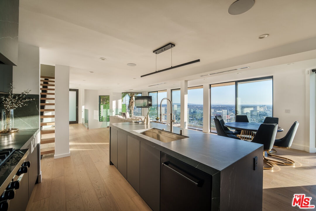 *Available long or short term, prices vary based on duration & availability.* This home is a spacious three-story view estate, perfectly located on upper Hollywood Blvd, above the famed sunset strip - offering jetliner city, and ocean views. Within minutes of Laurel Canyon, Beverly Hills and Sunset Blvd, prime location makes it easy to get around. The property includes direct-entry garage. Each room offers gracious natural light, and unobstructed views. An open layout gourmet chefs kitchen accompanied by stainless steel sleek black appliances, and center kitchen island overlooking the city makes for an ultimate cooking experience. Ceiling to floor sliding doors provide an indoor/outdoor experience as outdoor terraces are present on each level. Primary suite features a fireplace, private balcony, and a luxury style master bathroom. The Master bathroom is truly unmatched with its high end finishes, as it invites you in to relax after a long day, in a king-sized soaking tub, or showers. As you make your way down to the backyard, a panoramic view of the city takes your breath away. Enjoy the skylight sunset, with a built in fireplace & BBQ, perfect for hosting dinner parties or a romantic night in the jacuzzi. Smart-Home features include fully equipped lighting systems, Nest, Sonos, Multi-Zoned & control 4 applications. Welcome Home.