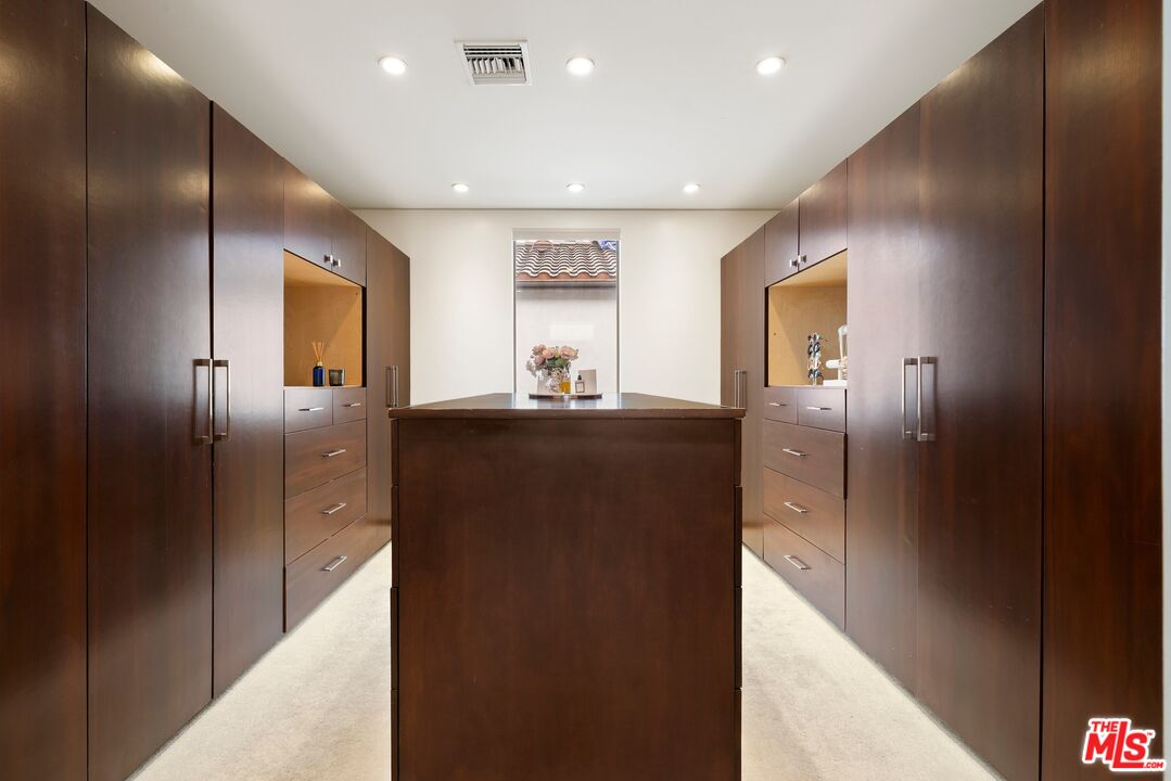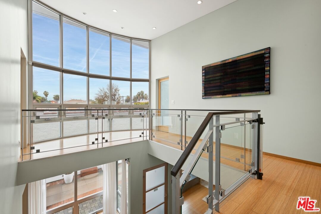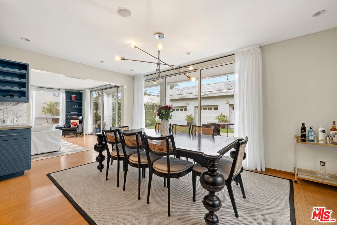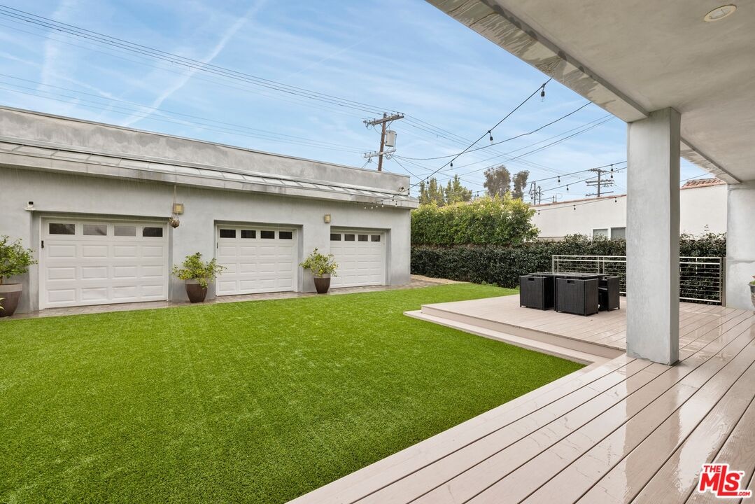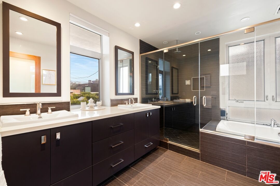 Readily changeable to five or six bedrooms with ADU potential for additional income! Floor-to-ceiling panes of glass, picture windows, rich wood panels, and smooth concrete converge to form the striking exterior of this recently remodeled and upgraded contemporary home, set back from the street with a brick-laid motor court and privacy hedges. The light-filled living room includes a ledgestone fireplace flanked by built-ins, walls of glass, and wood floors that flow throughout the entertaining spaces. In the sleek kosher kitchen, discover open shelving, wine storage and refrigerator, two dishwashers, double oven with warming drawer, ample cabinetry, pantry, granite countertops, and large center island with breakfast bar seating and cooktop with hood. The dining room faces sliding glass that opens to the rear deck for and indoor-outdoor dining experience. Ascend the stairs in the open foyer to a brilliant landing with massive window display showcasing treetops and blue skies. The primary suite is massive, complete with fireplace, built-ins, balcony access, and en-suite bath with separate tub and rainwater shower plus a dual-sink vanity. A custom walk-in closet includes ample storage and a large dresser island. Secondary bedrooms also feature built-ins plus an abundance of space, and the mahogany-clad office is perfect for study, work, and play. In the backyard, dine al-fresco, enjoy the brand-new organic pet-safe grassy turf yard, or utilize the three-car garage as a gym, dance studio, artist's haven, yoga, meditation, and more. This excellent neighborhood is central to the iconic Melrose Arts District with its trendy fashion boutiques and The Grove, right by Erewhon and moments to the nightlife, entertainment, shopping, and fine dining of West Hollywood, Larchmont Village, Beverly Hills, and the Westside. Synagogues are also within close proximity.