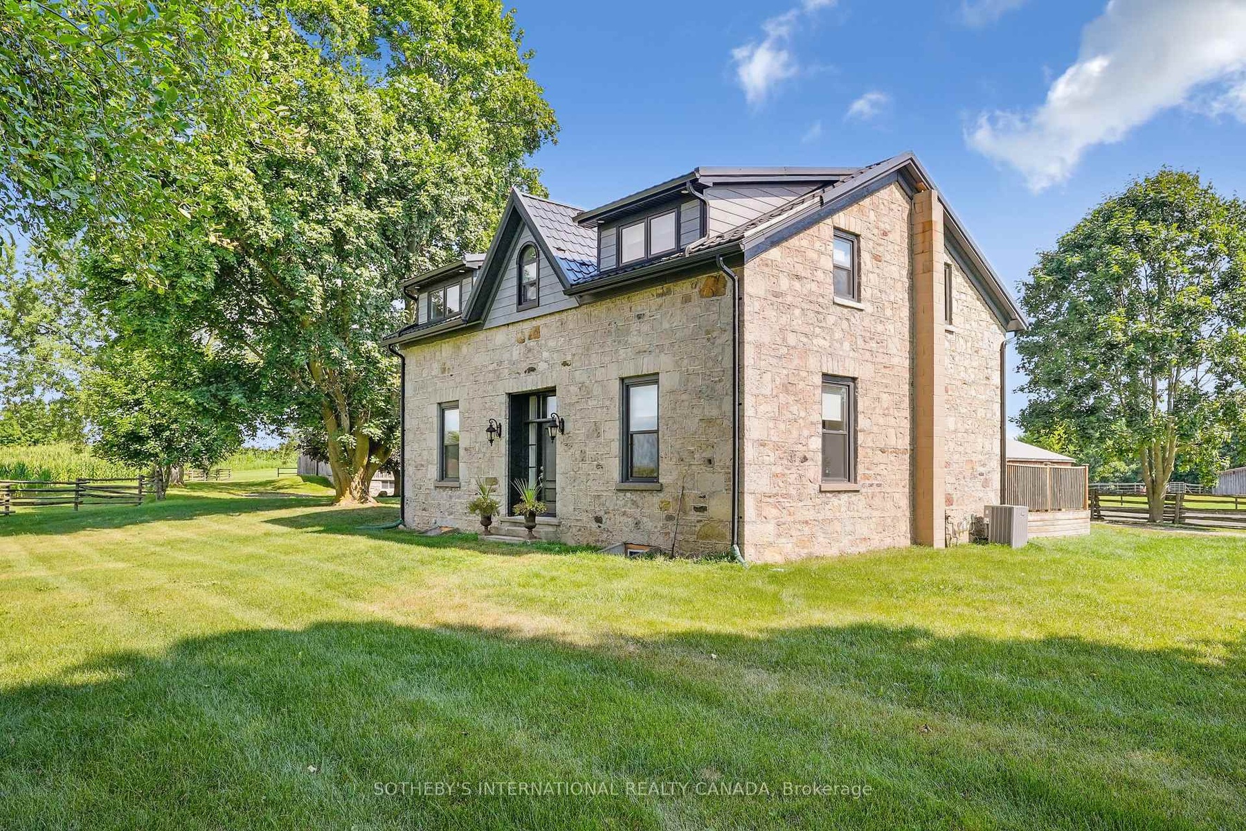 Welcome to 4085 Victoria Road S, an extraordinary property where timeless history meets modern country living. Resting on just under 100 acres in picturesque Puslinch, this estate offers a rare combination of a beautifully restored 1870s farmhouse, premier equestrian facilities & breathtaking natural landscapes. The home itself is rich in character & comfort. The chefs kitchen is a showpiece, featuring top-of-the-line appliances, an oversized island, & an inviting eat-in space that flows into the family room. A grand fireplace & expansive windows frame views of manicured grounds & rolling fields. With a main floor primary suite & two additional bedrooms upstairs, the home offers convenience & charm, blending historic details with thoughtful updates that preserve the warmth & history of the farmhouse. Nearly 45 acres of farmable land provide opportunity & productivity, while 36 untouched wooded acres offer privacy, & natural beauty. Tucked within the trees, a charming sugar shack evokes the property's rural heritage, while a spring-fed pond adds to the serene setting. The equestrian facilities are exceptional, with 2 classic bank barns one complete with its original rack lifter standing proudly as reminders of the property's rich past. A dedicated hay barn & a beautifully maintained horse barn with 10 stalls & a wash stall provide everything needed for care & training. Sprawling paddocks, thoughtfully laid out with 8 run-in sheds, create a haven for horses, while a competition-quality dust-free indoor riding arena & a spacious outdoor arena allow for riding & training in every season. A meticulously kept outbuilding & garage, complete with a tractor hoist, adds practicality & versatility, while the surrounding leased farmland opens opportunity for farming or investment. From its sweeping fields to its shaded woods, from its historic charm to its state-of-the-art equestrian amenities, this is more than a property it is a lifestyle, a retreat, & a rare opportunity.