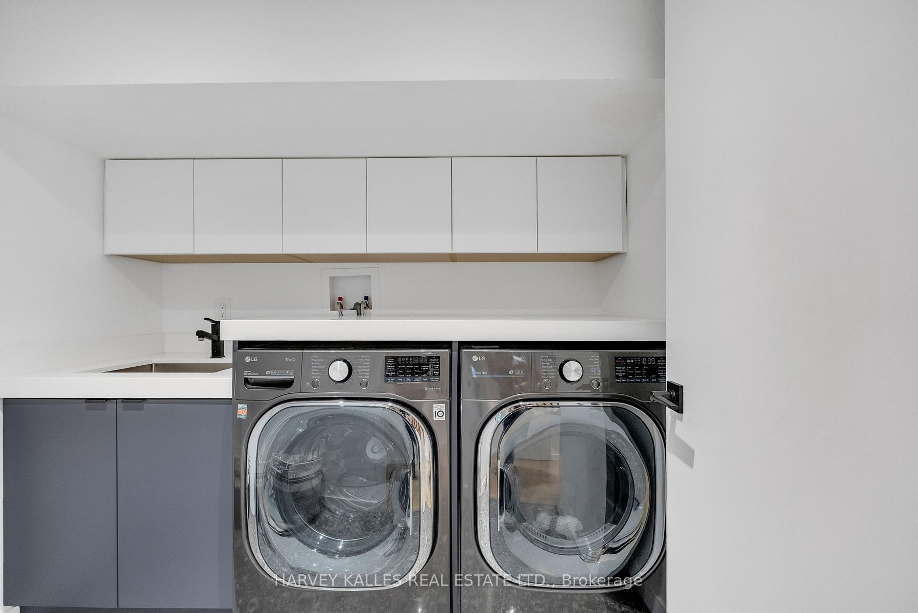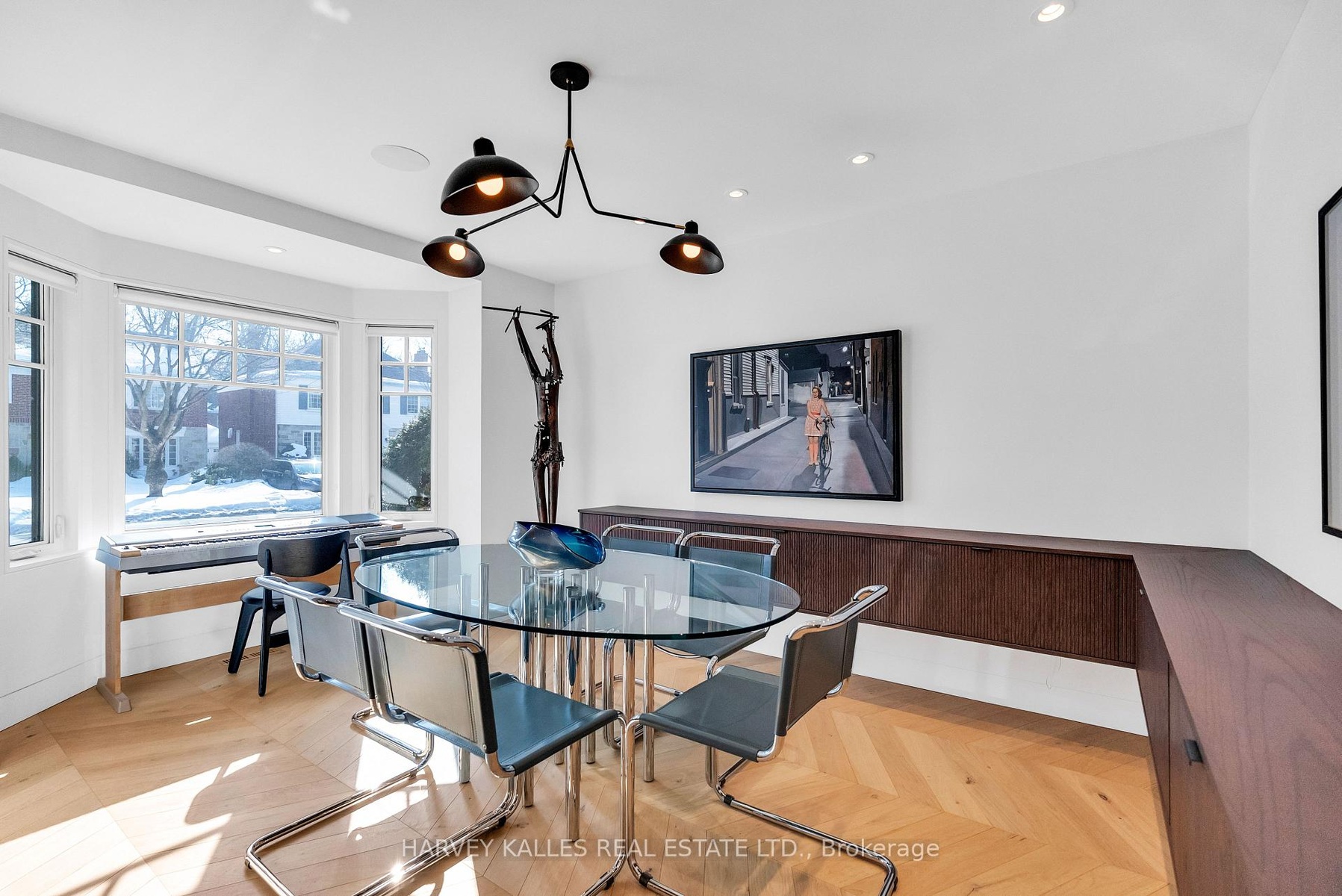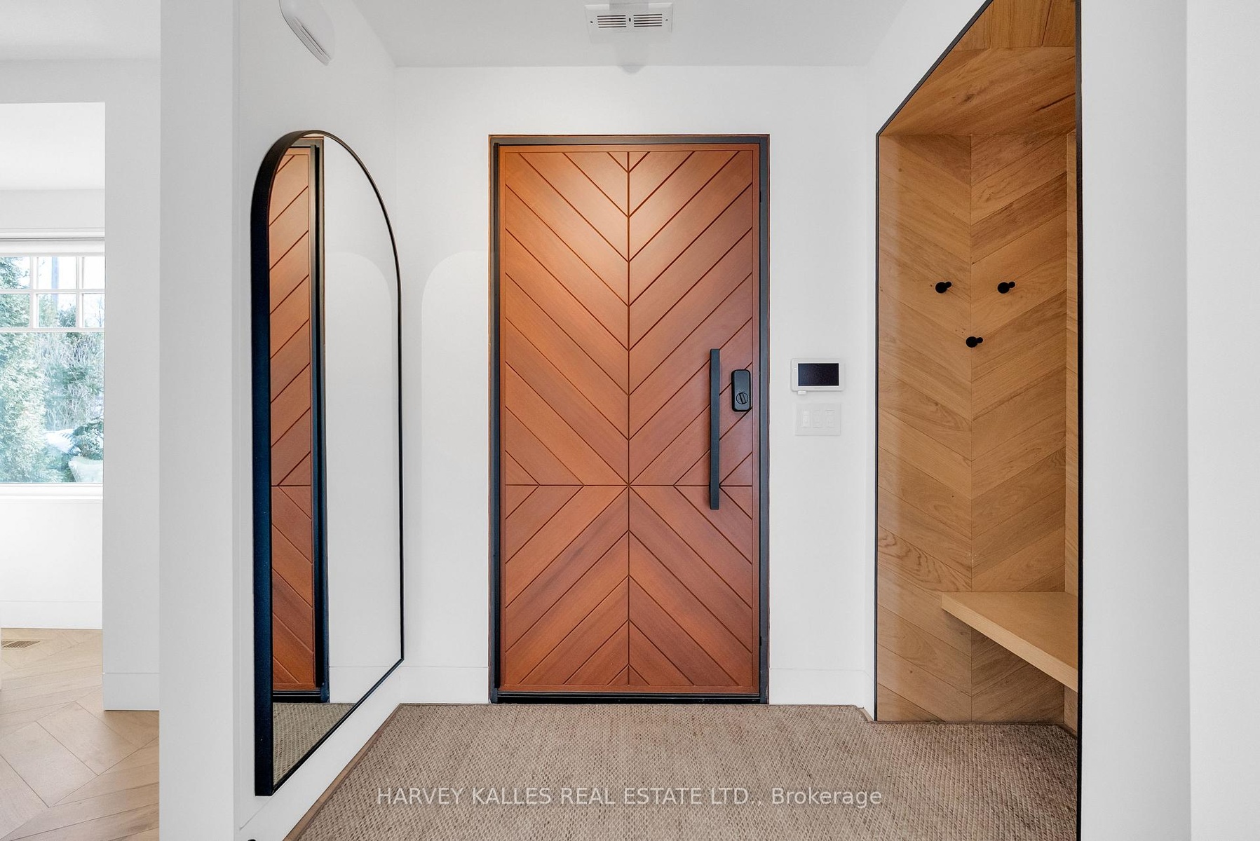 Architecturally striking and filled with natural light, this custom designed home showcases exceptional craftsmanship and warm wood detailing throughout. Fully renovated from the studs, this home blends modern architectural lines with timeless materials, featuring chevron wood floors, cedar accents, recessed trim, and extensive custom millwork. The main level is designed for seamless entertaining and everyday living, with soaring ceilings and expansive sliding glass doors that open to a private dining terrace and outdoor Chef's kitchen, creating a beautiful indoor-outdoor flow. The indoor chef's kitchen is anchored by an oversized island ideal for gathering and entertaining, complimented by integrated appliances, bespoke cabinetry and exceptional storage. Custom built-ins throughout enhance both form and function, while the upper level offers a skylit hallway, impressive ceiling height, and refined architectural detailing. The hotel inspired primary suite includes extensive built-ins and a spa like ensuite with double sinks, rain shower, a stand alone luxury tub and a smart toilet. Two well proportioned secondary bedrooms are thoughtfully positioned and share a Jack- and-Jill washroom, ideal for growing families. The fully finished lower level adds flexible living space with a fireplace, fitness area, cedar sauna with a salt wall, industrial style laundry, and a three piece washroom. A turnkey home where design and livability are perfectly balanced.