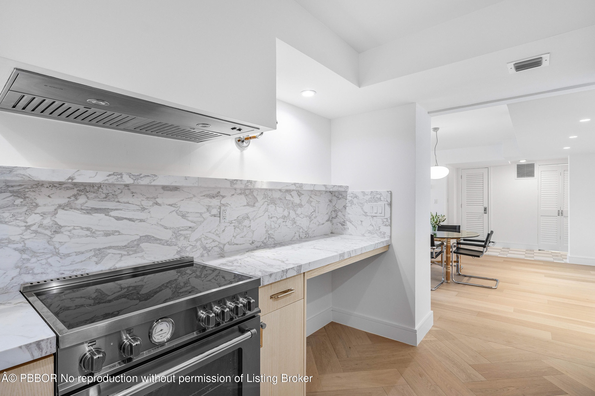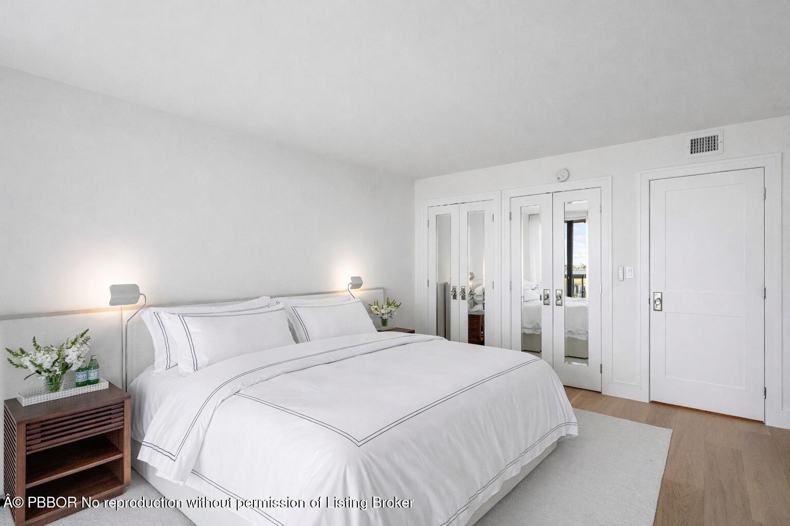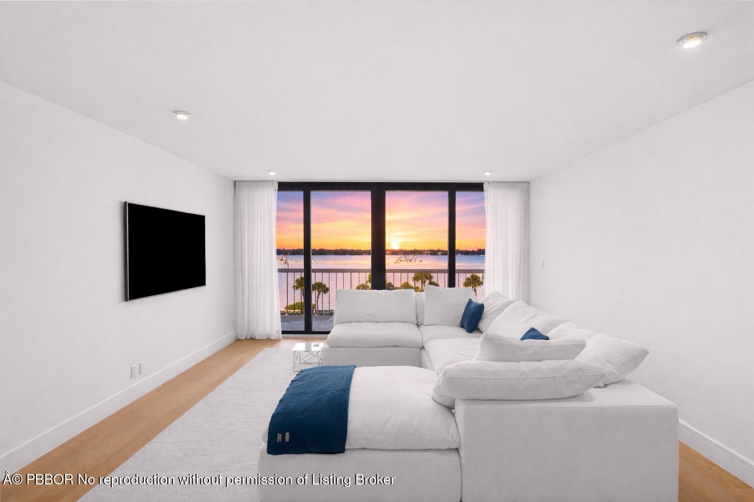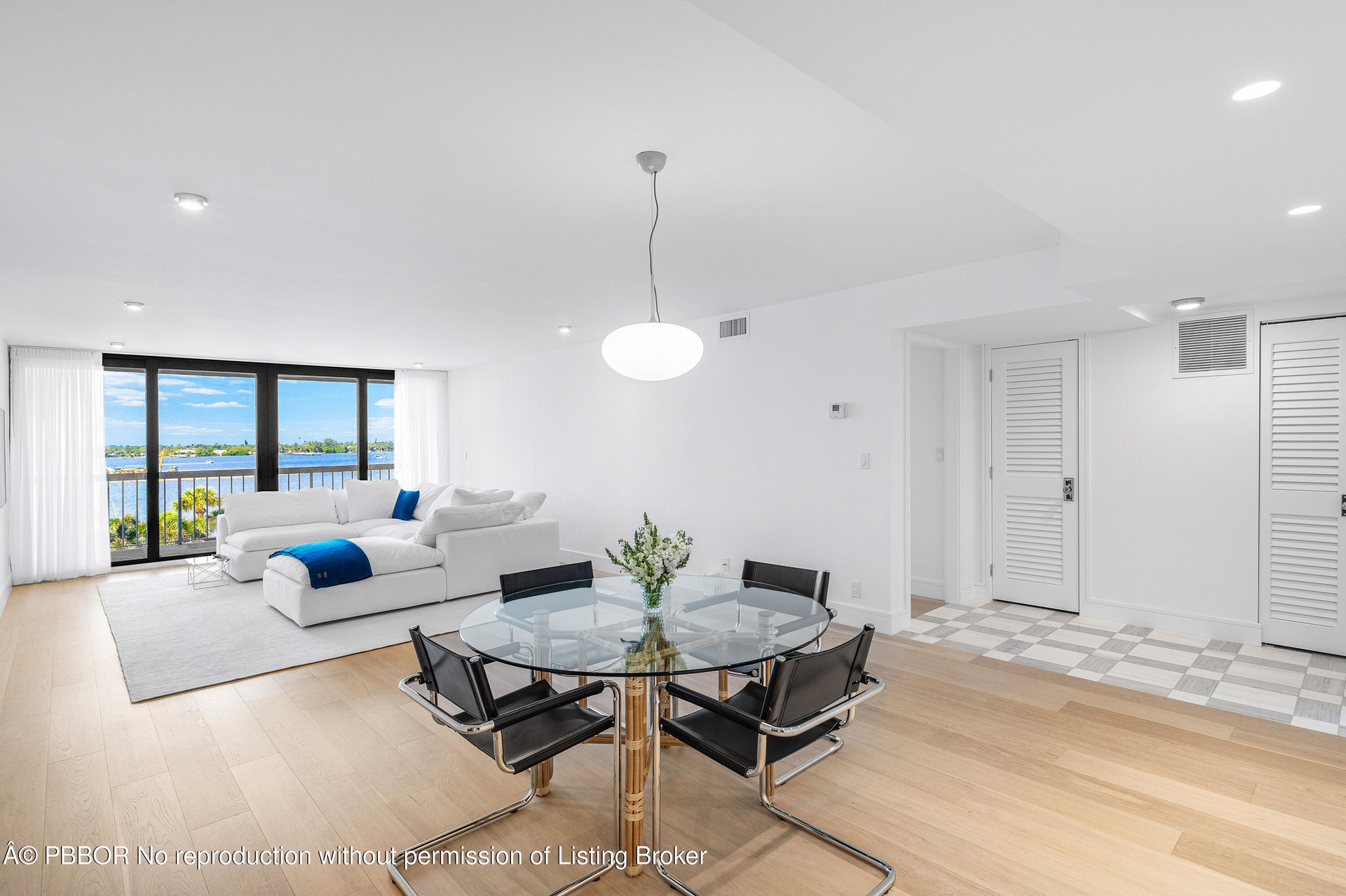 Fully reimagined and masterfully renovated, this exceptional 2-bedroom, 2-bath residence at The Dorchester offers breathtaking Intracoastal water views and spectacular sunsets from every room. Designed with uncompromising attention to detail, every inch of this home has been rebuilt to the highest level of quality, craftsmanship, and finish. Wide-plank white oak flooring flows seamlessly throughout the main living areas, while the kitchen showcases striking chevron-pattern white oak floors, marble dolomite countertops and backsplash accents, custom cabinetry, and a Bertazzoni induction range. Elevated design elements include Ralph Lauren designer lighting and Emtek hardware throughout, creating a cohesive and refined aesthetic. The fully redesigned spa-inspired bathrooms exude luxury, featuring exquisite marble finishes, custom vanities, premium fixtures, and frameless glass showers for a true retreat experience. New impact glass doors and windows frame unobstructed west-facing water views and open to a massive private balcony accessible from the main living area and both bedrooms--offering seamless indoor-outdoor living and panoramic sunset vistas over the Intracoastal. Additional highlights include in-residence laundry, one garage parking space, and thoughtfully curated finishes that elevate the home well beyond typical renovation standards. Located in a highly respected Palm Beach building, residents enjoy resort-style amenities including a pool and spa, tennis courts, a well-equipped fitness center, private beach access, and a beautifully appointed club room. A rare opportunity to own a designer-quality waterfront residence in Palm Beach with unparalleled sunset views and refined coastal elegance.
