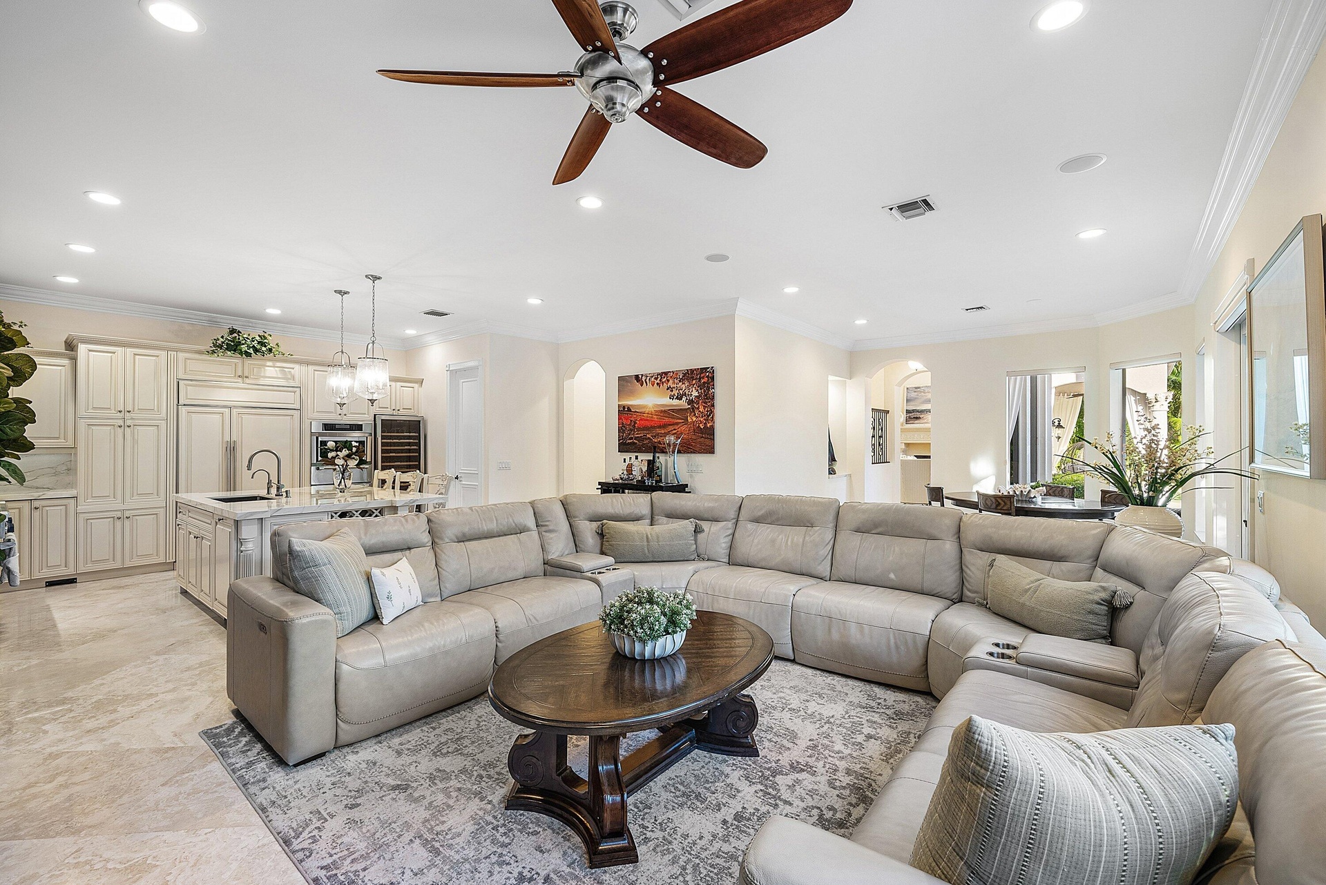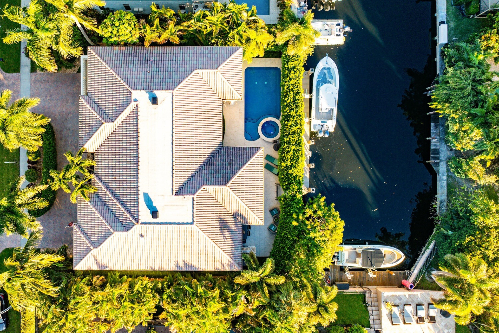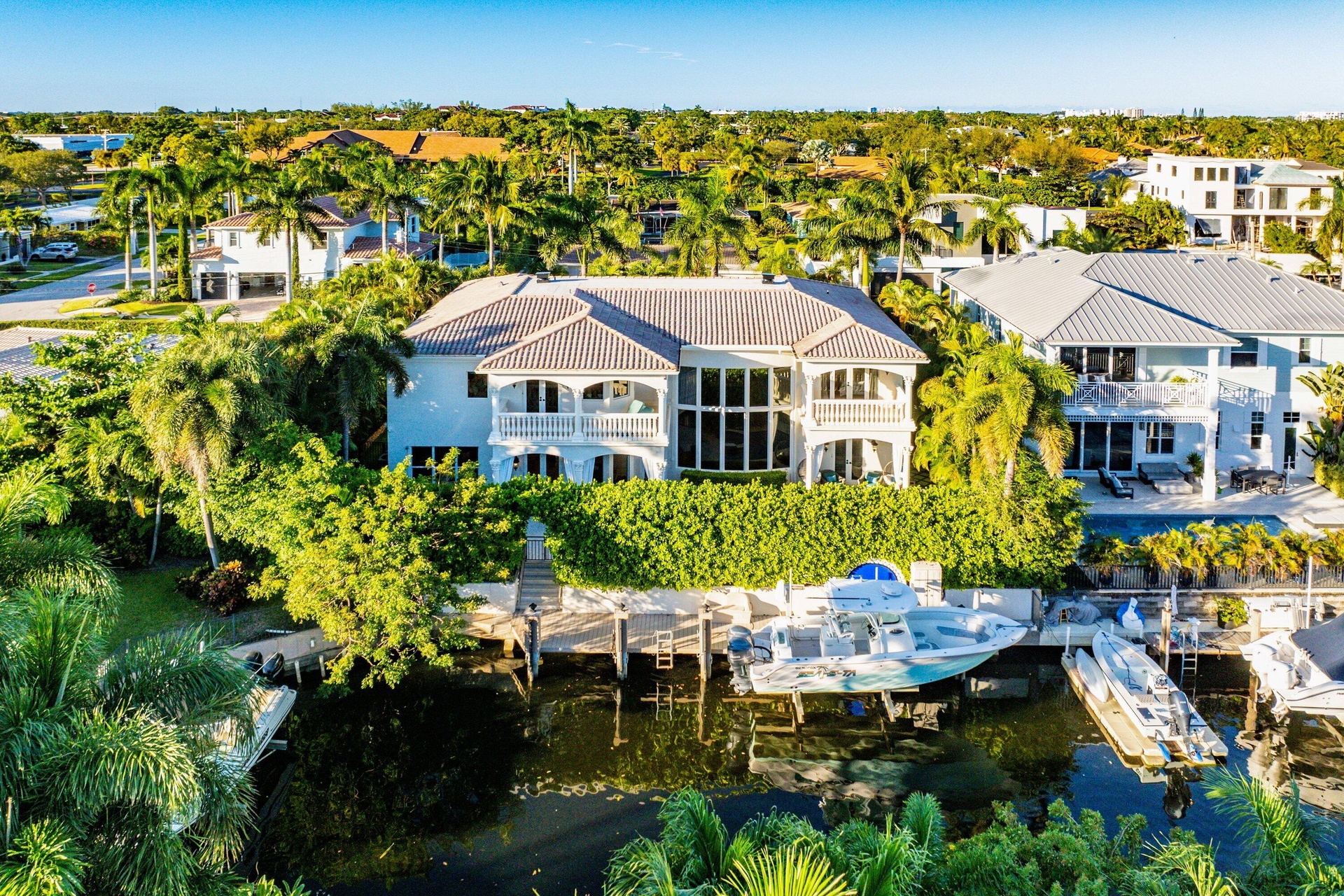 A striking grand double-door entry introduces this Mediterranean waterfront home in Boca Harbour, ideally located in Boca Raton. Soaring 20-foot ceilings and a dramatic foyer create an immediate sense of scale and sophistication, while Saturnia marble floors and rich hardwood upstairs add warmth and contrast. Custom millwork, coffered ceilings, and an open-concept layout offer a seamless flow for both entertaining and everyday living. The chef's kitchen features a Thermador gas range, Sub-Zero refrigeration, Bosch dishwasher, walk-in pantry, and a 200+ bottle wine refrigerator. A spacious island, butler's pantry, and bar area make hosting effortless. The expansive primary suite offers panoramic water views, a private balcony, motorized shades, a spa-inspired bath, and custom-fitted closets. An upstairs loft provides flexible space for a library, office, or media room. Additional features include a Control4 smart home system, elevator, fireplace, and elevated finishes throughout. Outdoors, a private waterfront retreat awaits with desirable southern exposure. The resort-style pool and spa, Viking summer kitchen, and lush tropical landscaping create a true indoor-outdoor lifestyle. The renovated dock features concrete pilings, composite decking, water, electric, and a 15,000-pound boat lift, providing direct access to Lake Boca and the Atlantic Ocean. Additional upgrades include impact glass, porcelain pavers, tile-finished garages, updated HVAC systems, whole-house water treatment, and reverse osmosis filtration. With no HOA restrictions, this Boca Raton waterfront home offers flexibility, privacy, and luxury in one of the area's premier boating communities. More than a home, this is a rare opportunity to experience Boca Raton waterfront living with direct ocean access in sought-after Boca Harbour. The information provided, including but not limited to prices, measurements, square footages, lot sizes, features, finishes, and calculations, is subject to errors, omissions, or changes without notice. All information should be independently verified, and all parties are encouraged to perform their own due diligence.