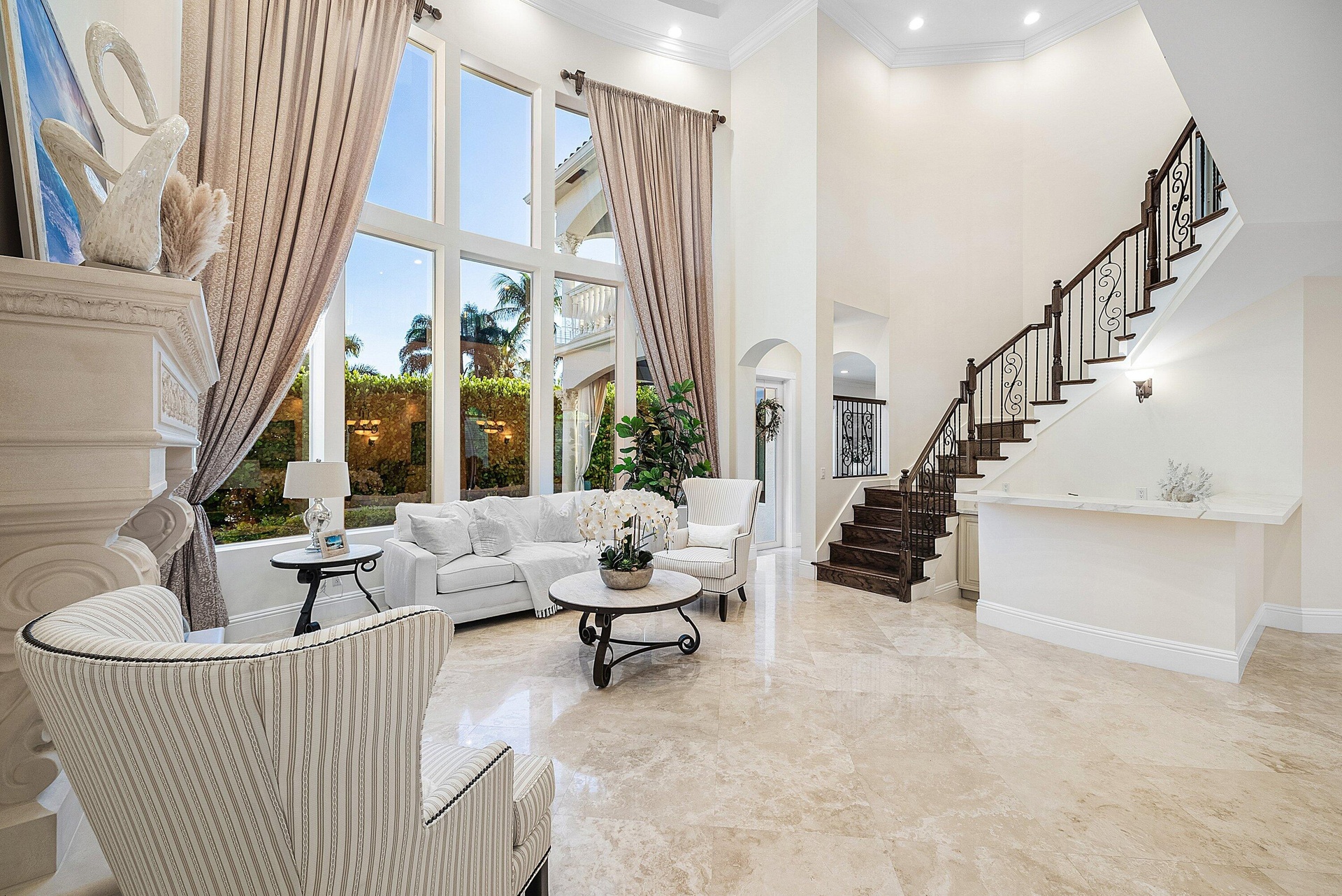 A striking grand double door entry introduces this Mediterranean waterfront home in Boca Harbour, ideally located in Boca Raton.